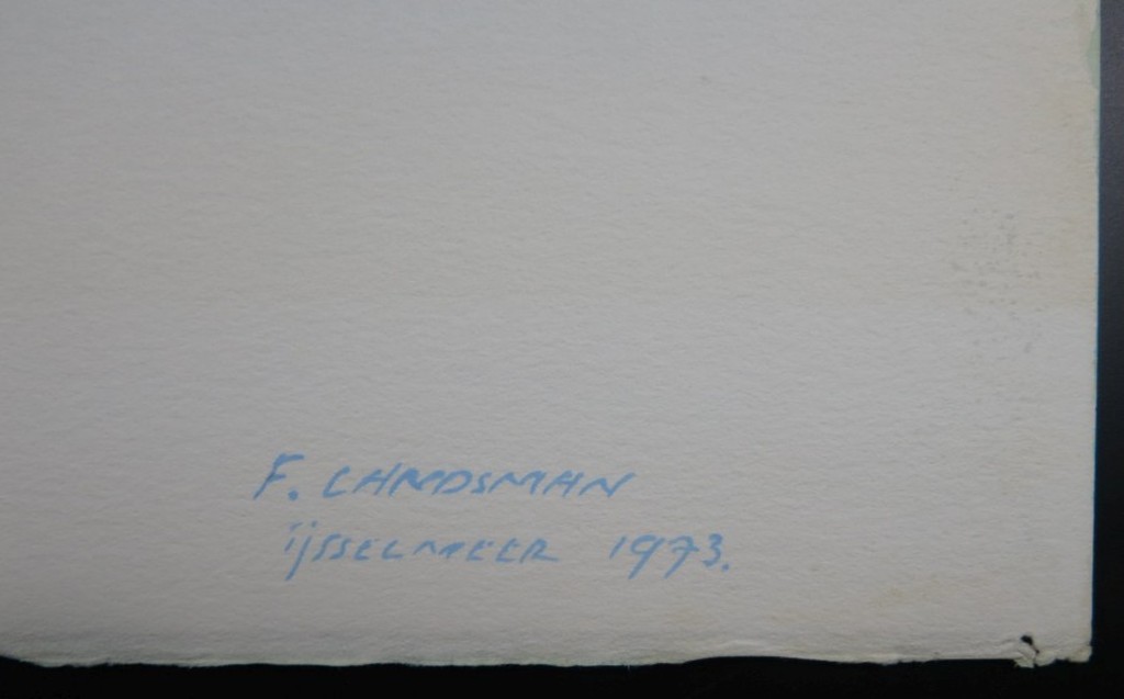 Kleine beschadigingen aan lijsten worden niet beschreven! Bij ingelijste werken achter glas vermelden wij altijd glasschade. Passe-partouts worden op geen enkele manier gegarandeerd en ook niet altijd meegezonden. Alleen als een werk niet uit het passe-partout te halen is, zal dit vermeld worden.