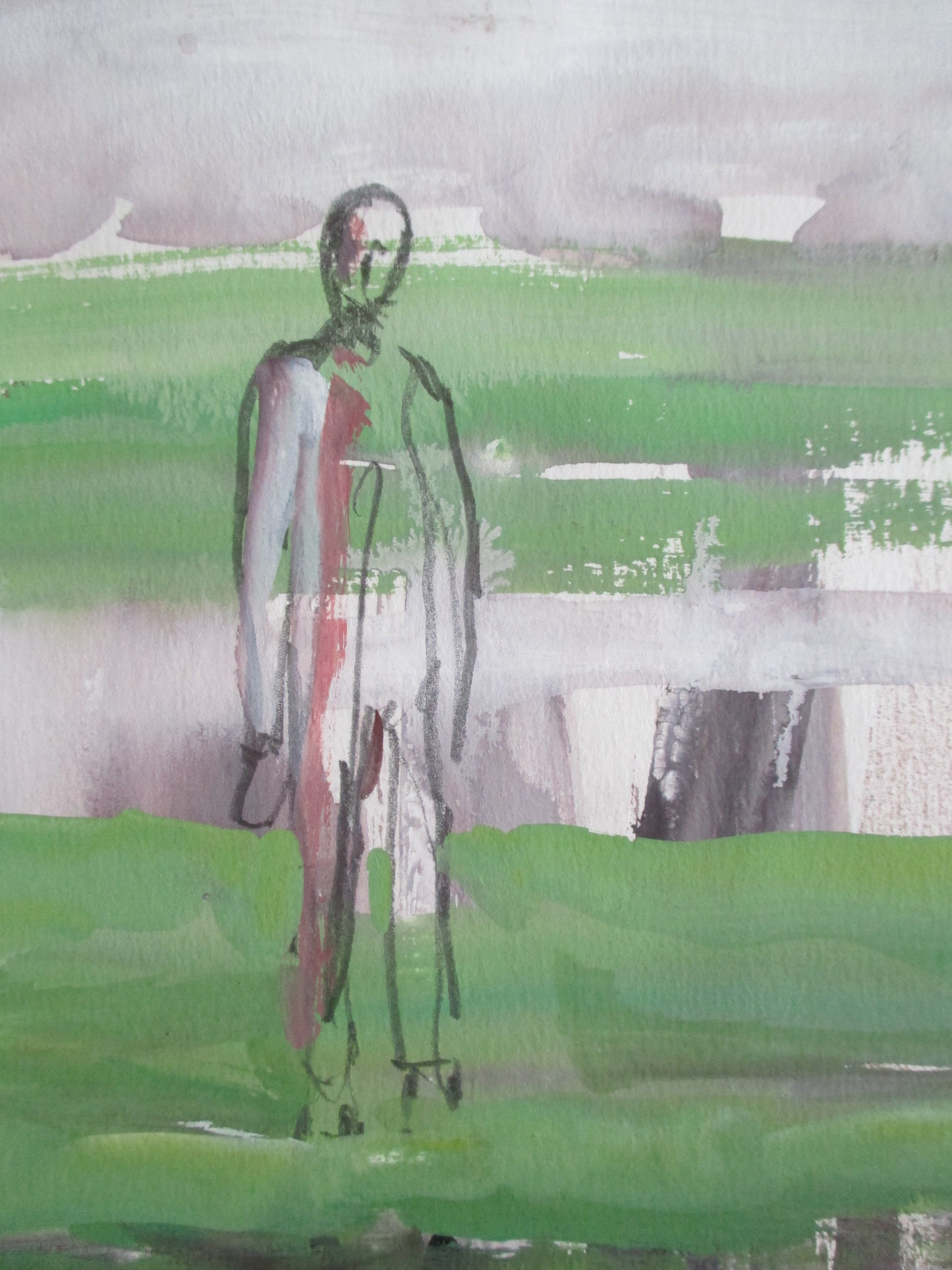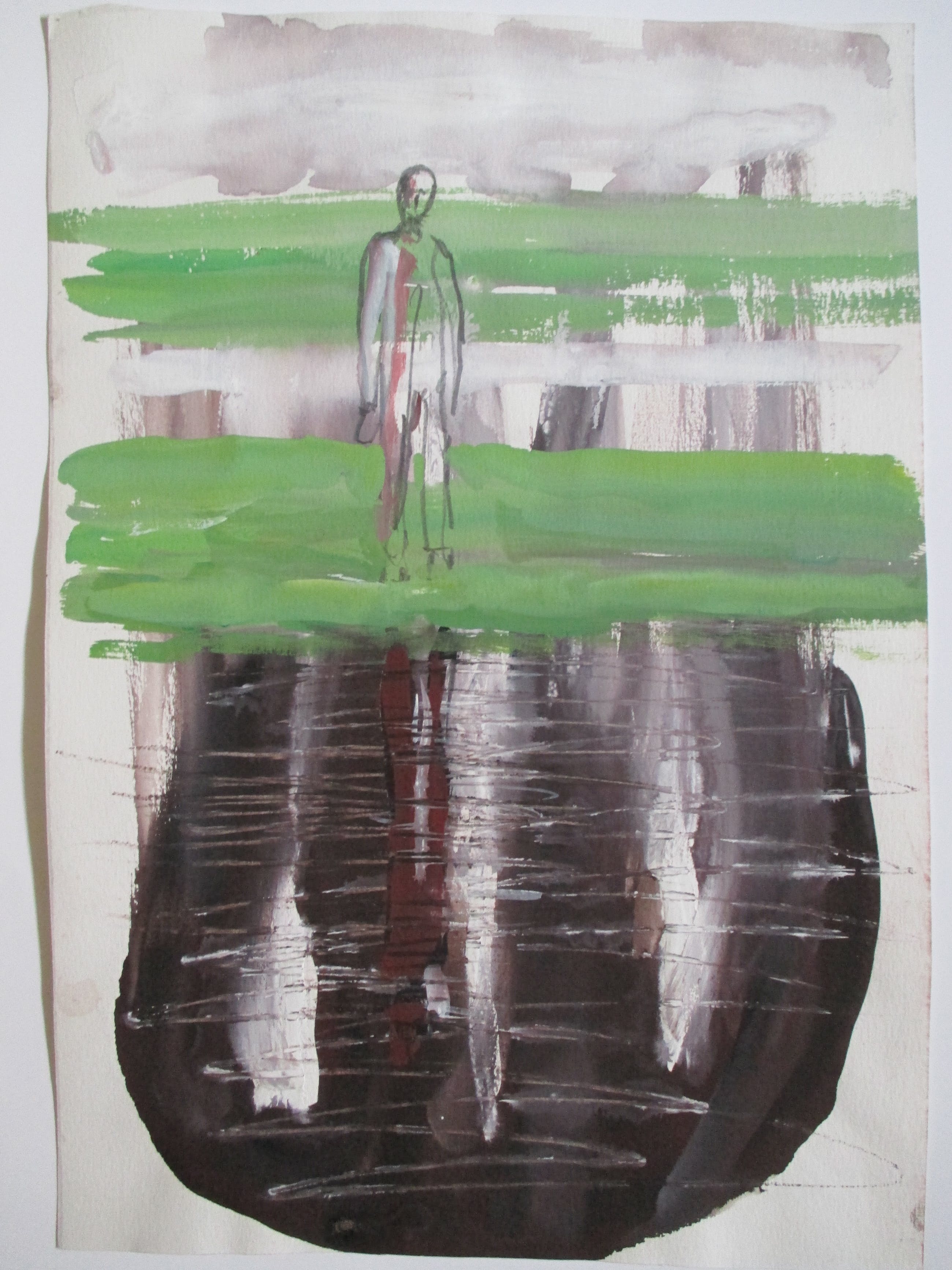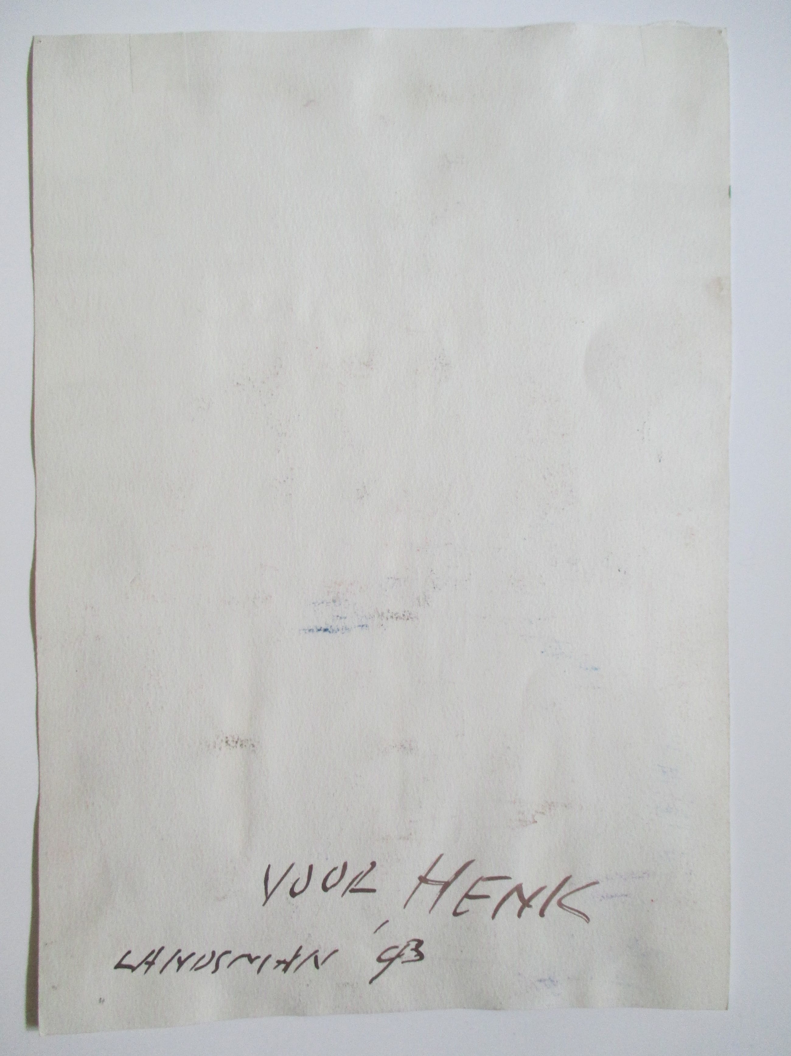 Aquarel en gouache op papier van Fred Landsman. verso gesigneerd en gedateerd 1993. Verder staat er "Voor Henk", waarschijnlijk Henk van Ulsen.verzending tussen twee platen, 8 euro, aangetekend 9,65
