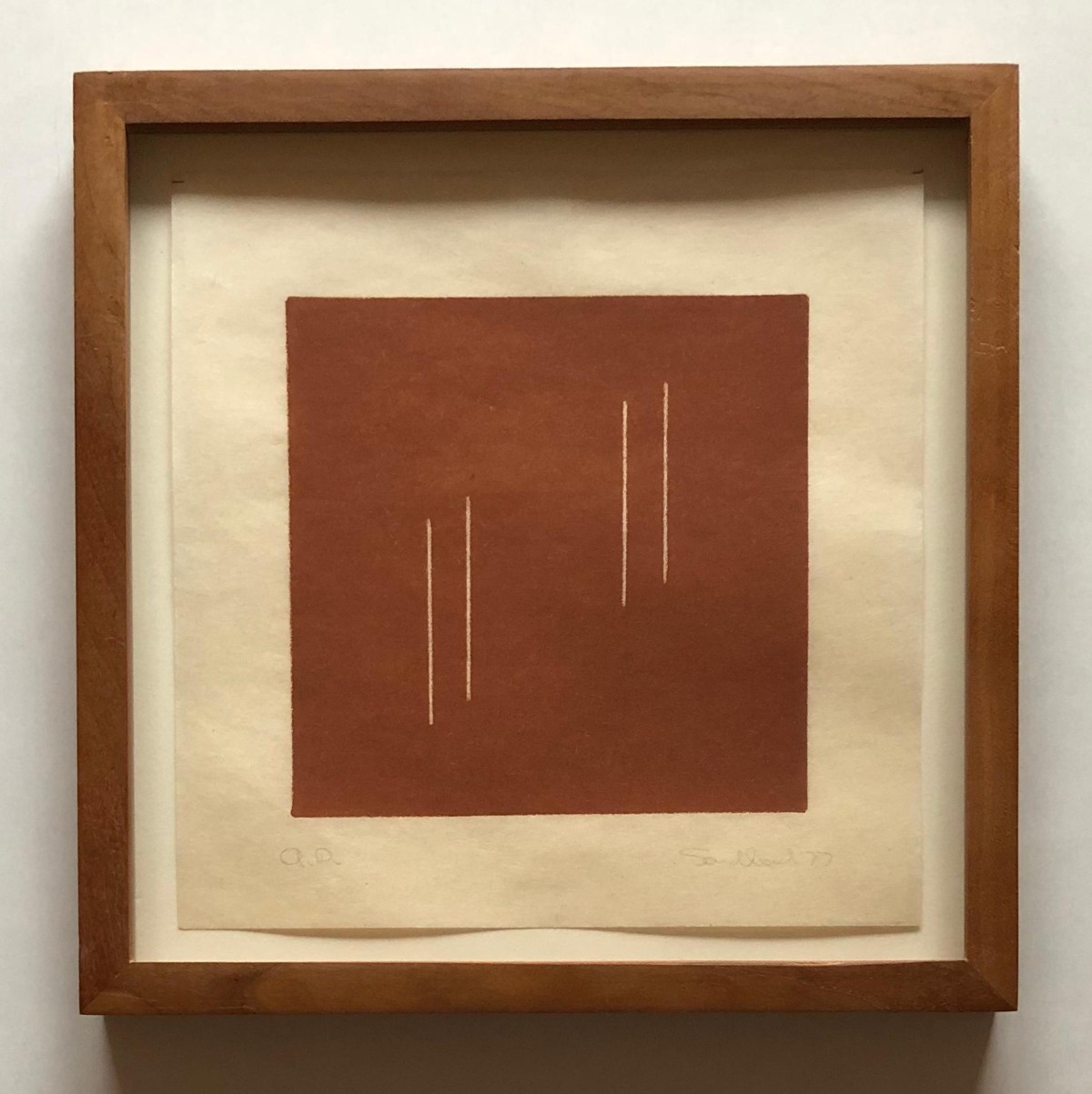 Fred Sandback (1943-2003), Untitled (from an untitled portfolio), Plate #10, 1977, Lithograph on handmade paper with cut edge, Hand-signed, dated and inscribed 'A.P.'; Edition, of 30 + 10AP, 7.5 x 7.5 in / 19,1 x 19,1 cm, Published by Edition Heiner Friedrich, Munich, Germany, Gallery framed