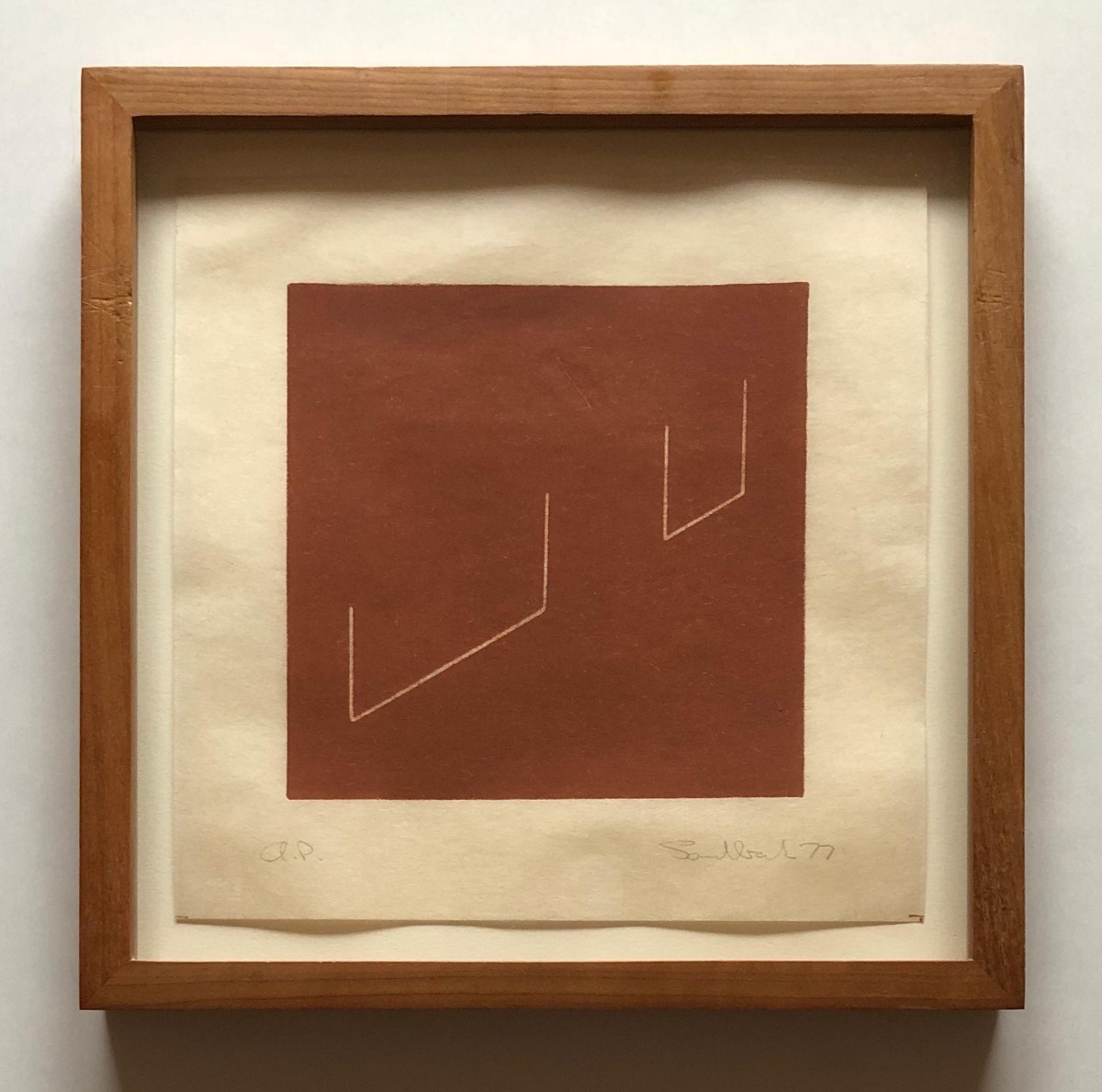Fred Sandback (1943-2003), Untitled (from an untitled portfolio), Plate #4, 1977, Lithograph on handmade paper with cut edge, Hand-signed, dated and inscribed 'A.P.'; Edition, of 30 + 10AP, 7.5 x 7.5 in / 19,1 x 19,1 cm, Published by Edition Heiner Friedrich, Munich, Germany, Gallery framed