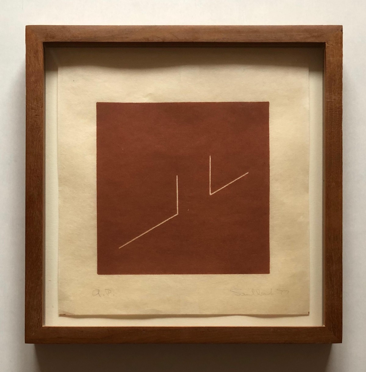Fred Sandback (1943-2003), Untitled (from an untitled portfolio), Plate #9, 1977, Lithograph on handmade paper with cut edge, Hand-signed, dated and inscribed 'A.P.'; Edition, of 30 + 10AP, 7.5 x 7.5 in / 19,1 x 19,1 cm, Published by Edition Heiner Friedrich, Munich, Germany, Gallery framed