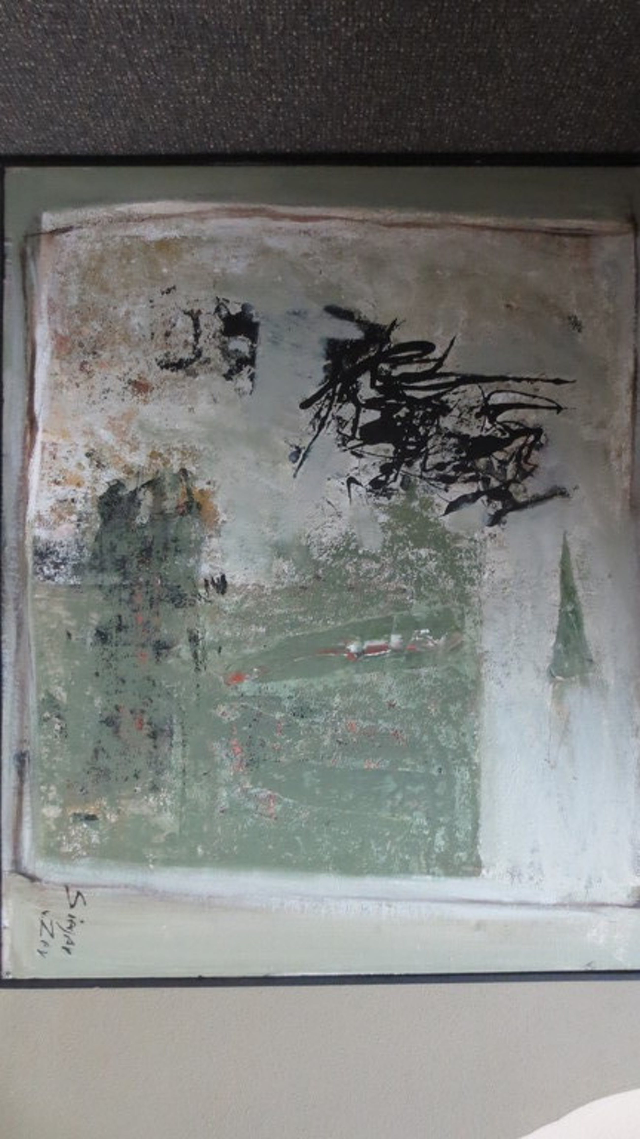Titel : "Compositie in groenaarde 2" (later heeft de kunstenaar zijn schilderijen geen titels maar nummers gegeven)