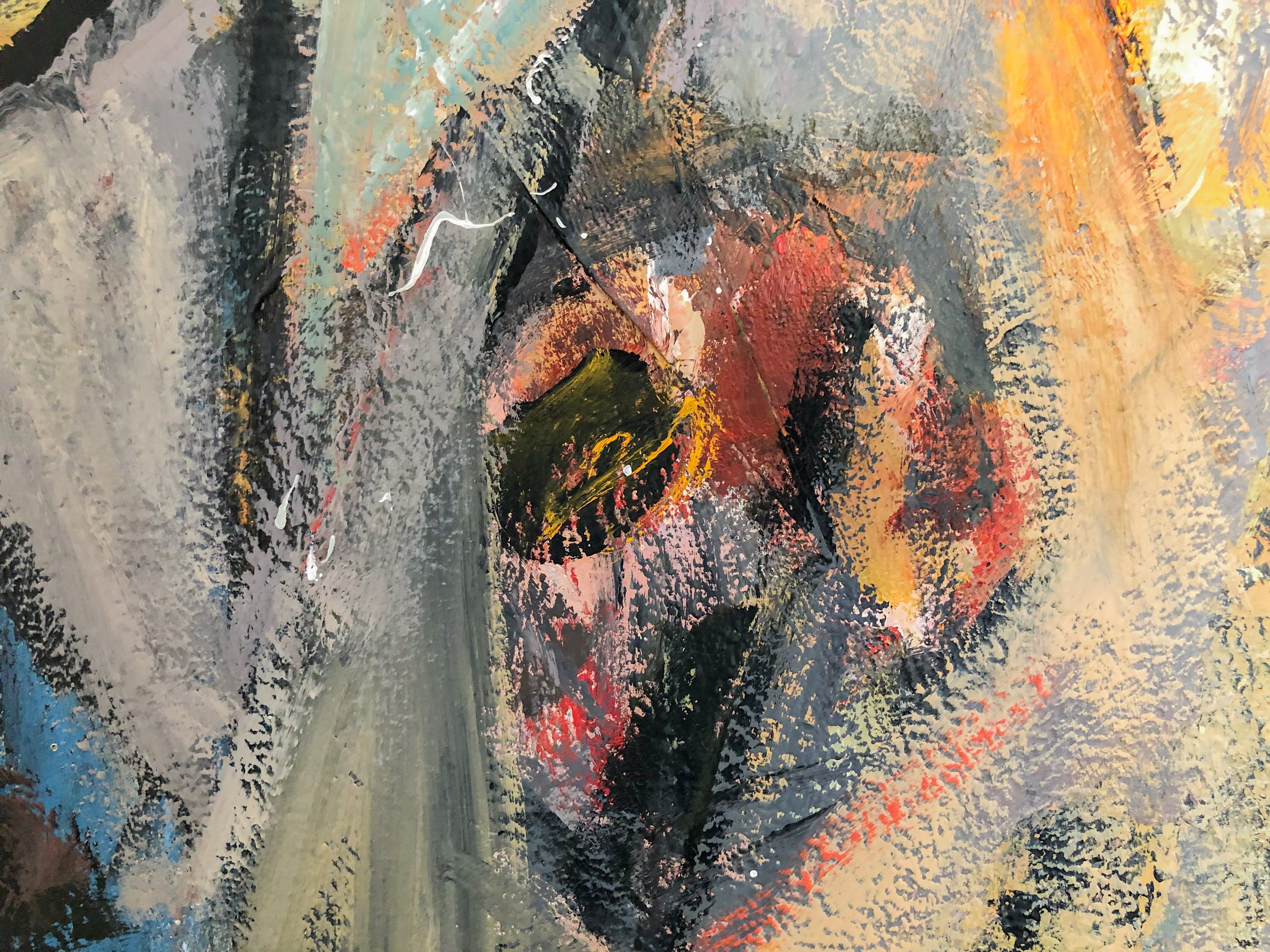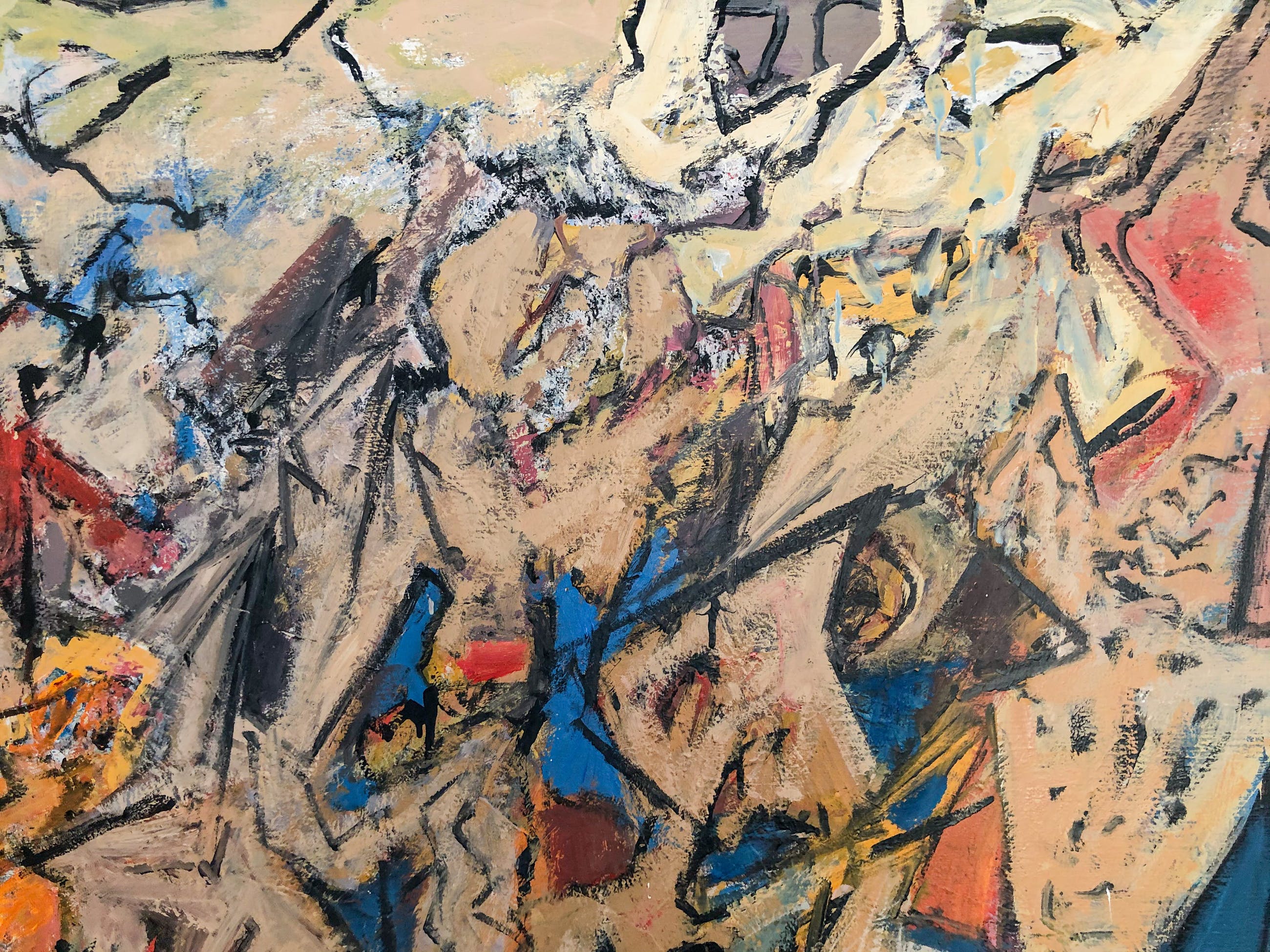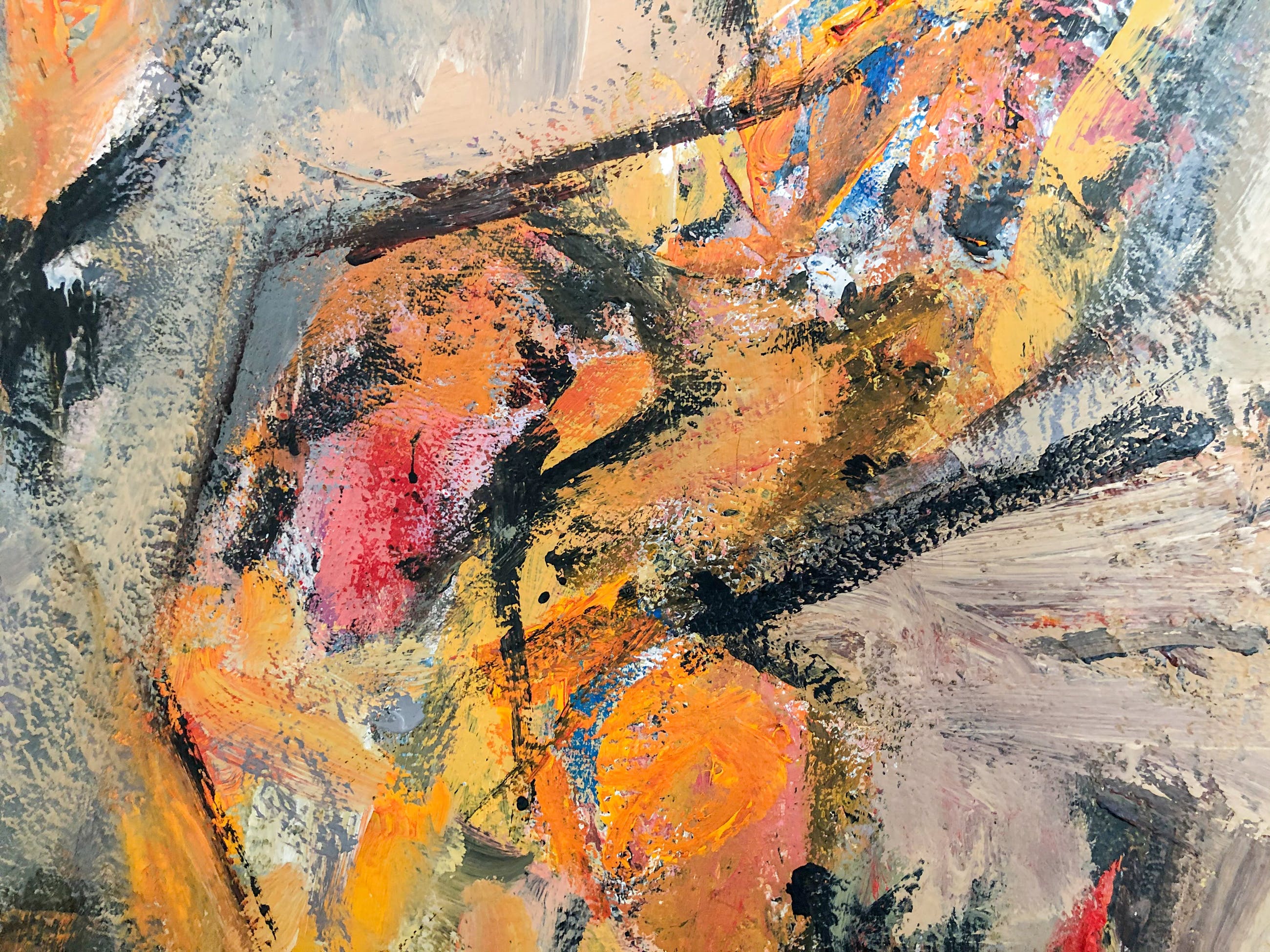 Dit is een collage-achtig werk van Fred Sieger. Het is een totale abstractie. Niets verwijst naar enige vorm van figuratie. Als je in detail kijkt en delen gaat uitvergroten, lijkt het een werk opgebouwd uit talloze miniatuurtjes. Op de foto's is dit duidelijk zichtbaar. Ik verkoop dit werk met tegenzin, maar het verdient meer ruimte dan ik het kan geven.