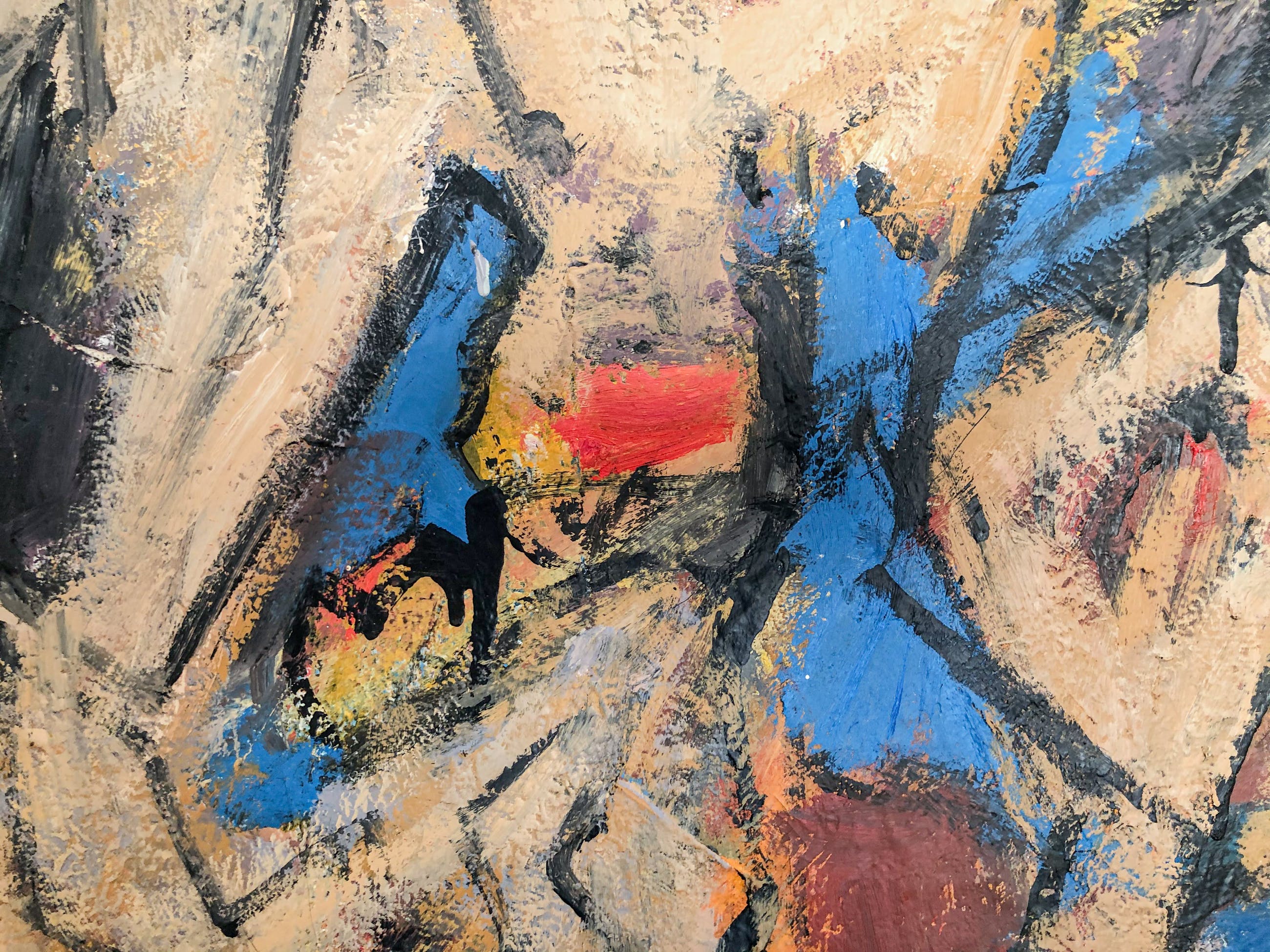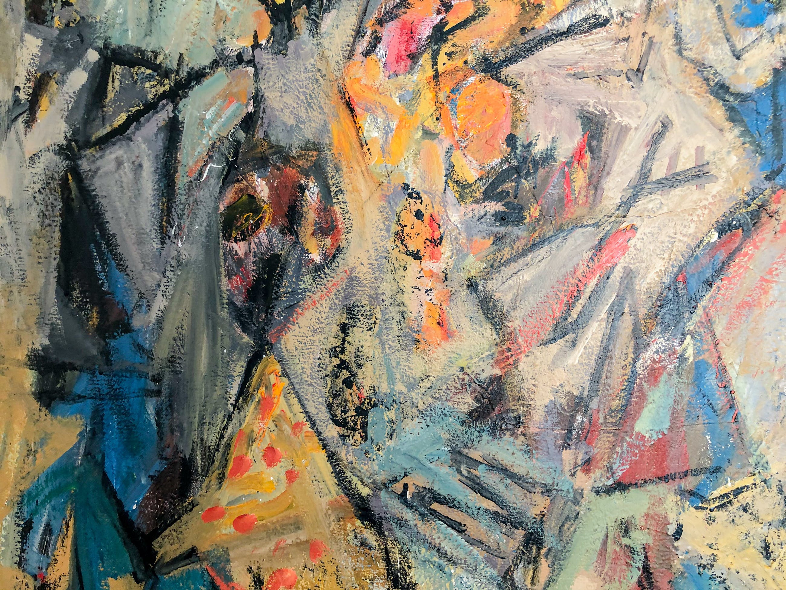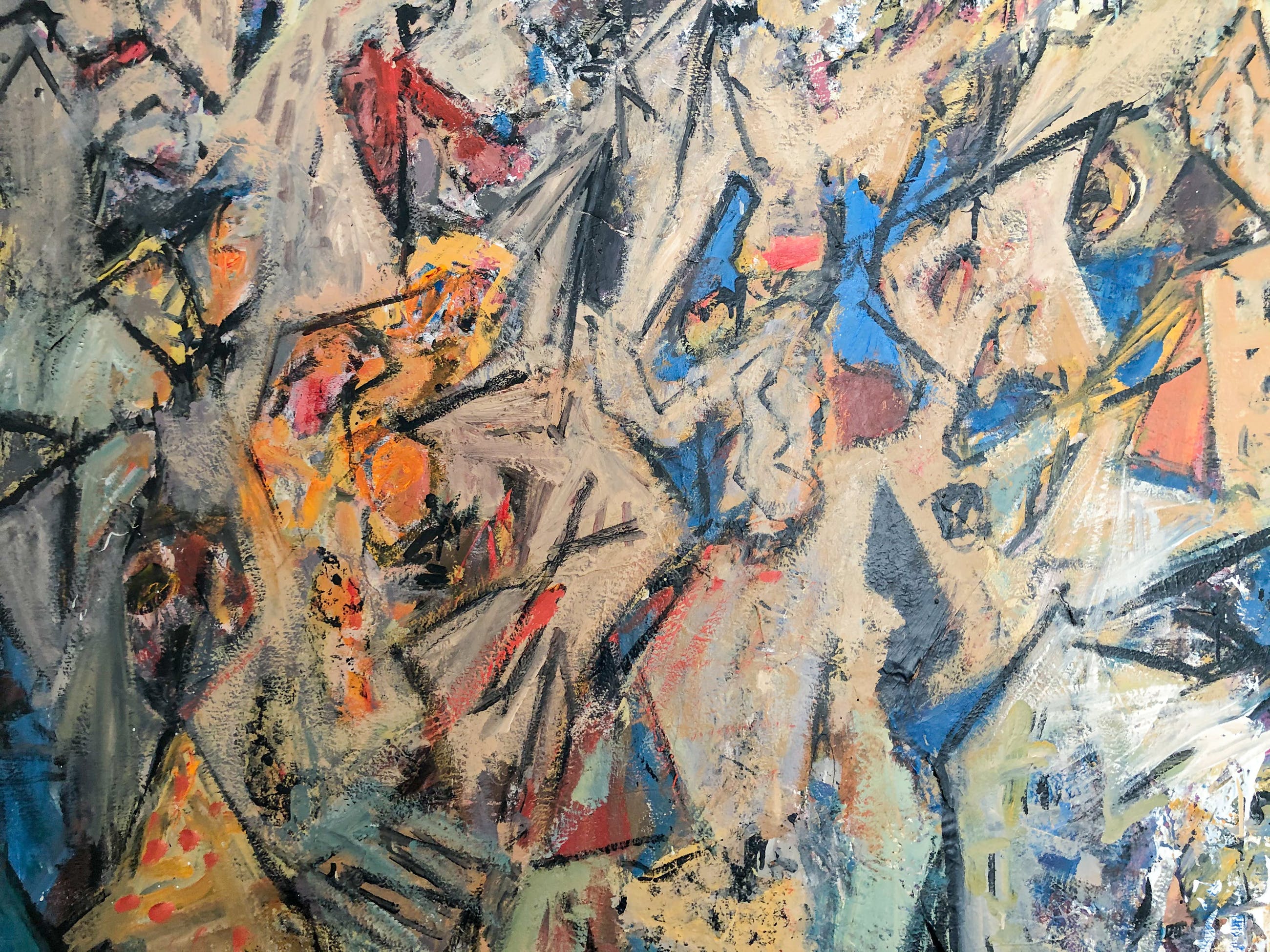 Dit is een collage-achtig werk van Fred Sieger. Het is een totale abstractie. Niets verwijst naar enige vorm van figuratie. Als je in detail kijkt en delen gaat uitvergroten, lijkt het een werk opgebouwd uit talloze miniatuurtjes. Op de foto's is dit duidelijk zichtbaar. Ik verkoop dit werk met tegenzin, maar het verdient meer ruimte dan ik het kan geven.