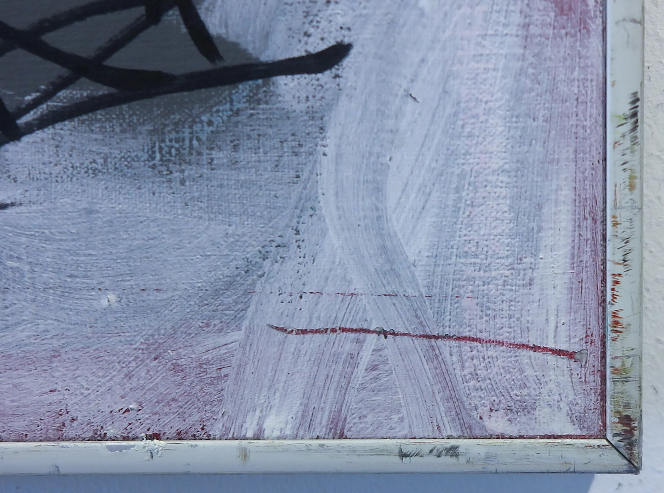 | Het werk heeft enkele lichte krasjes rondom, zie foto. De lijst heeft beschadigingen. | |