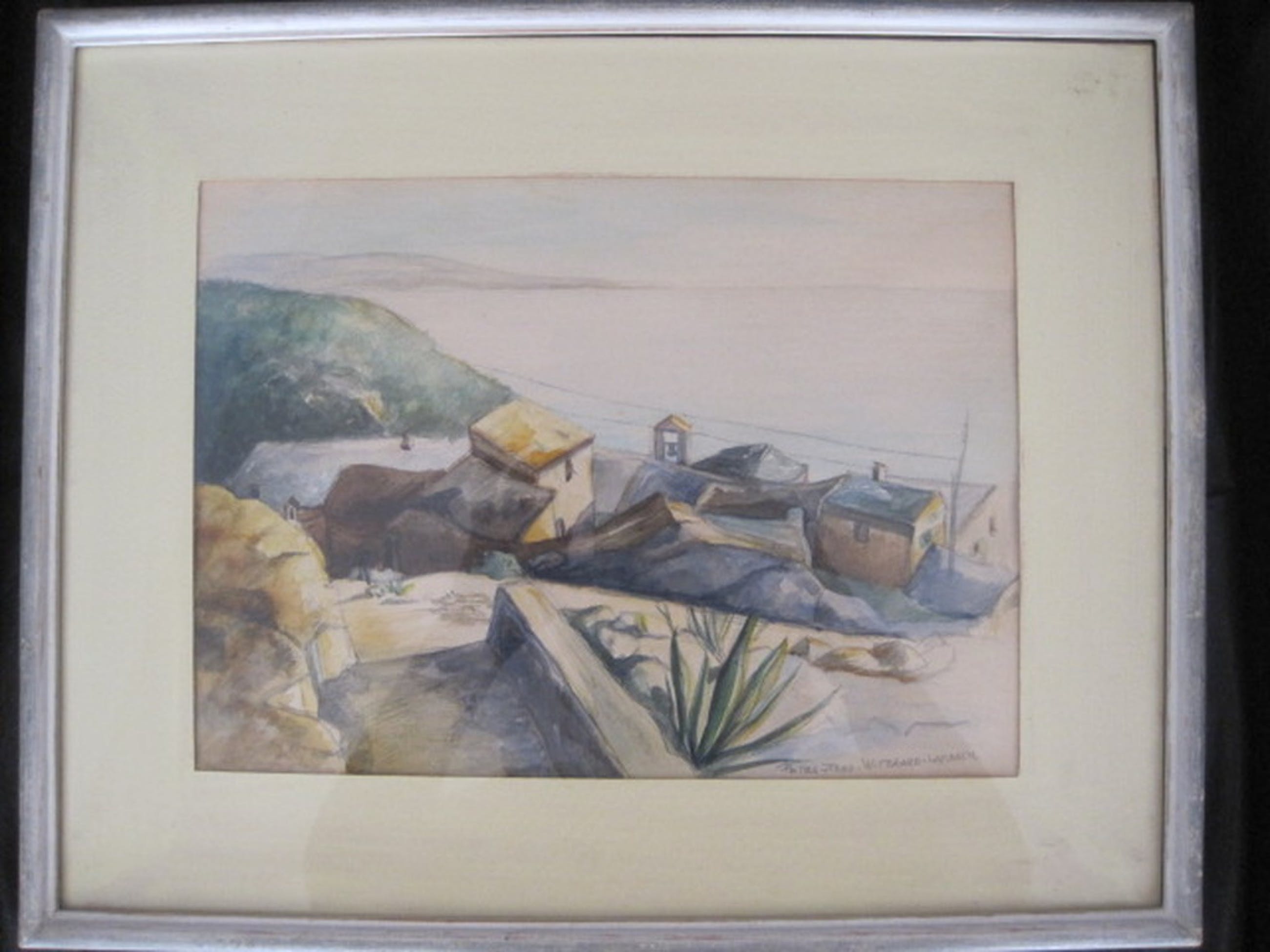 Aquarel "Eze aan de Franse Riviera". Gesigneerd Petra - Fred Witbaard - Hambach.