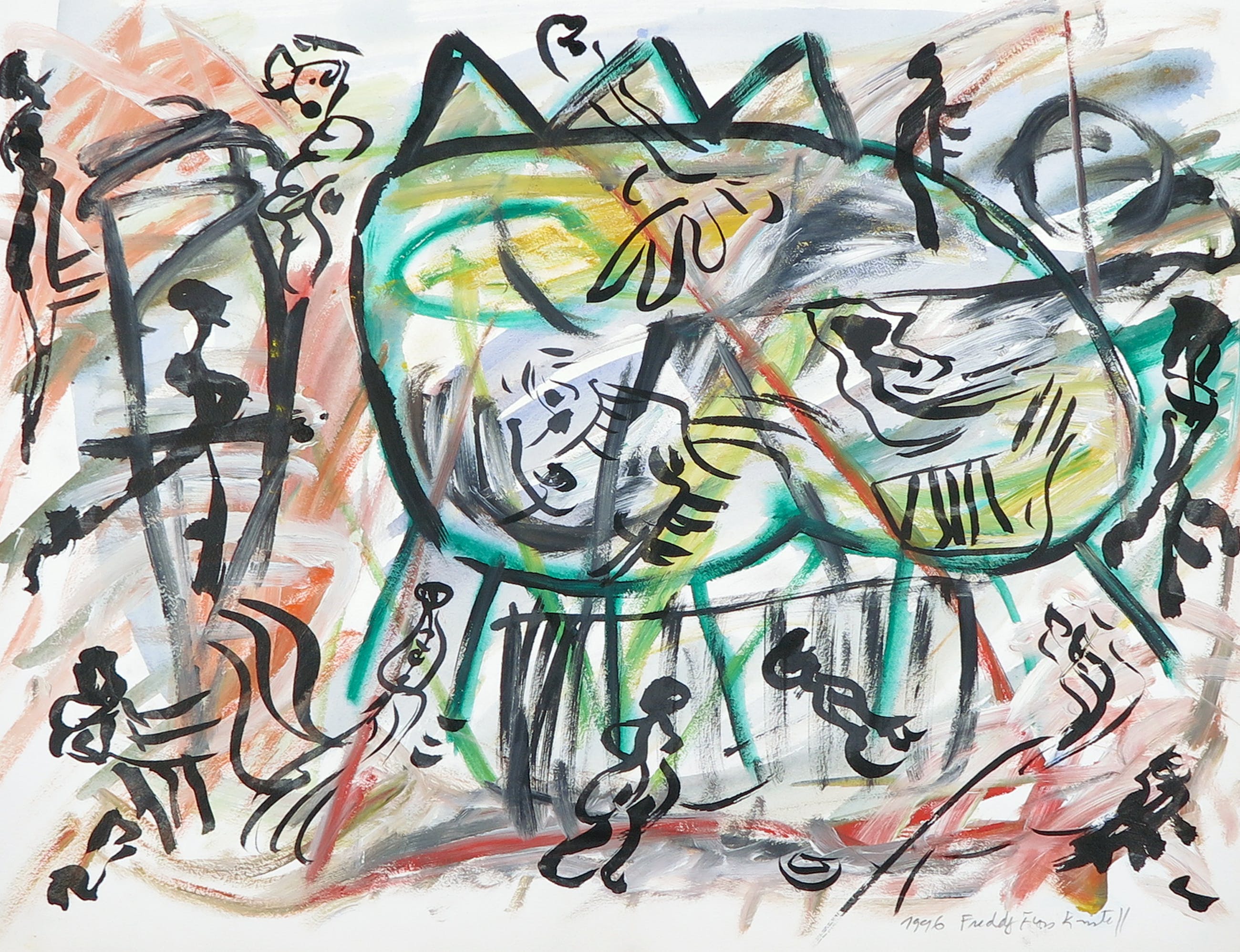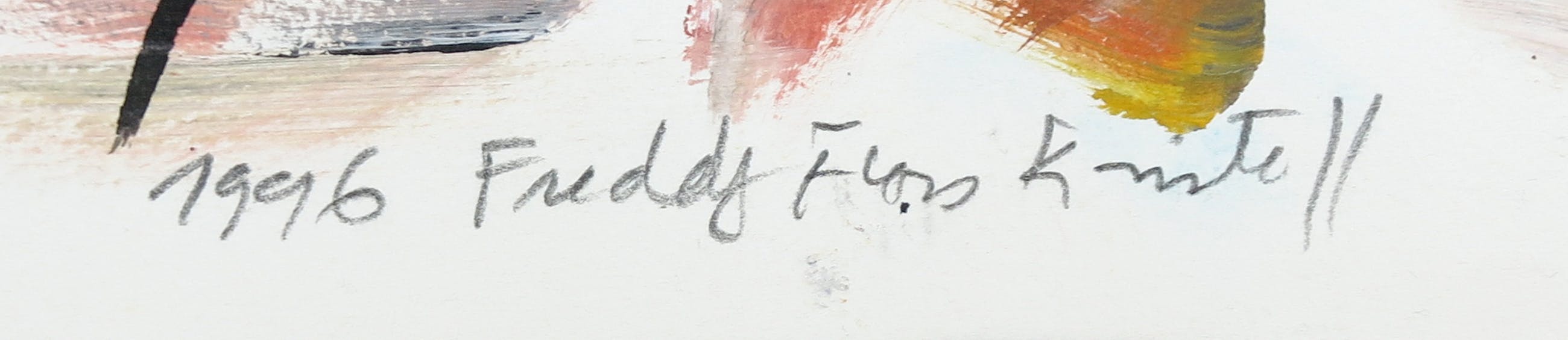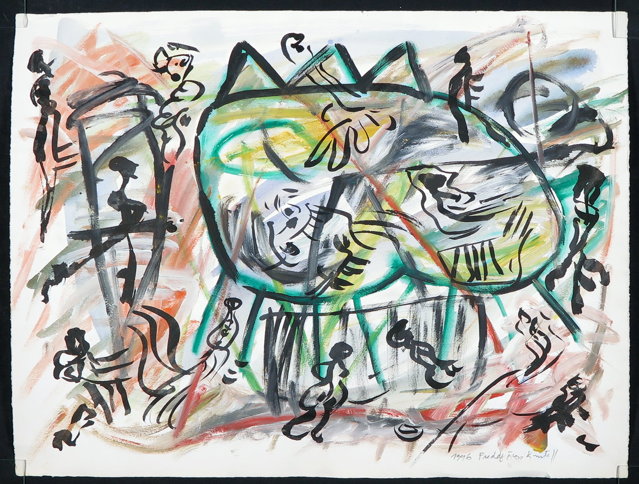 Fraaie expressionistische gouache tekening op papier van Freddy Flores Knistoff.