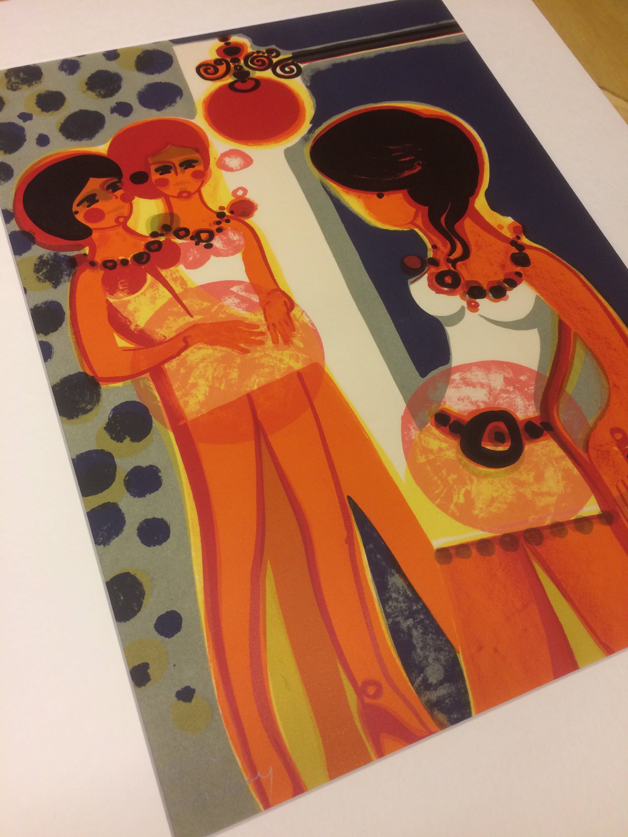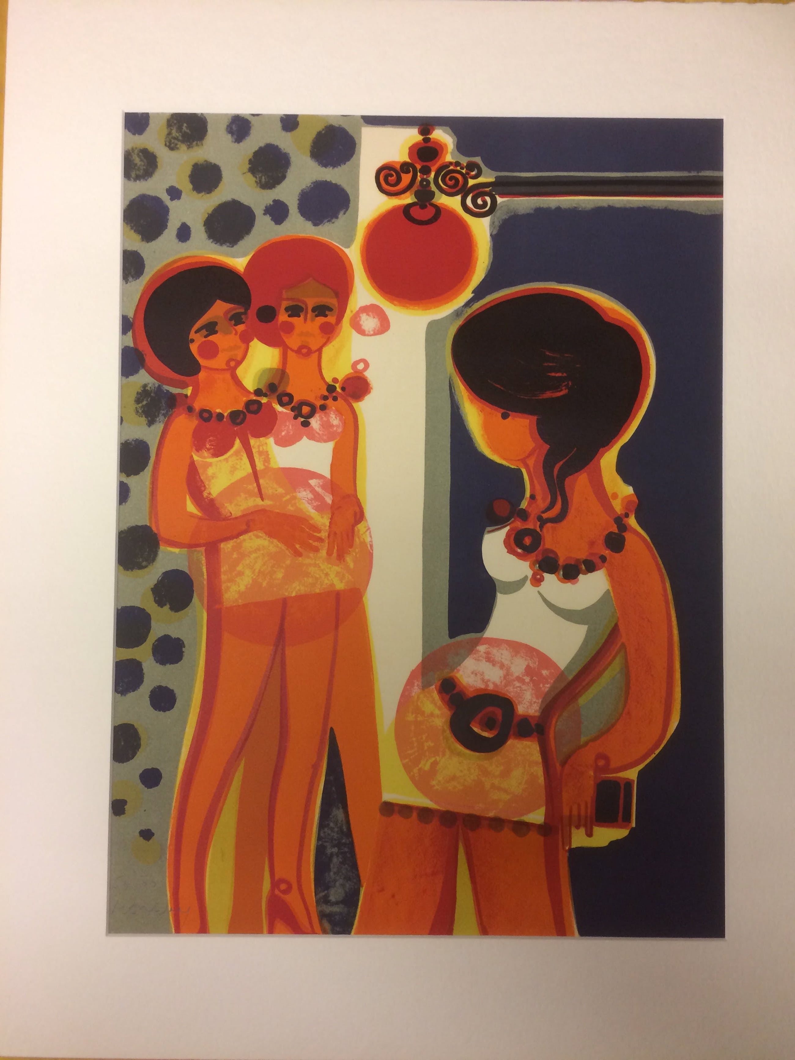 Werk in zeer goede staat met prachtige heldere kleuren. Komt gemonteerd in passepartout met buitenmaten van 70 x 56 cm. Kan zo ingelijst worden.