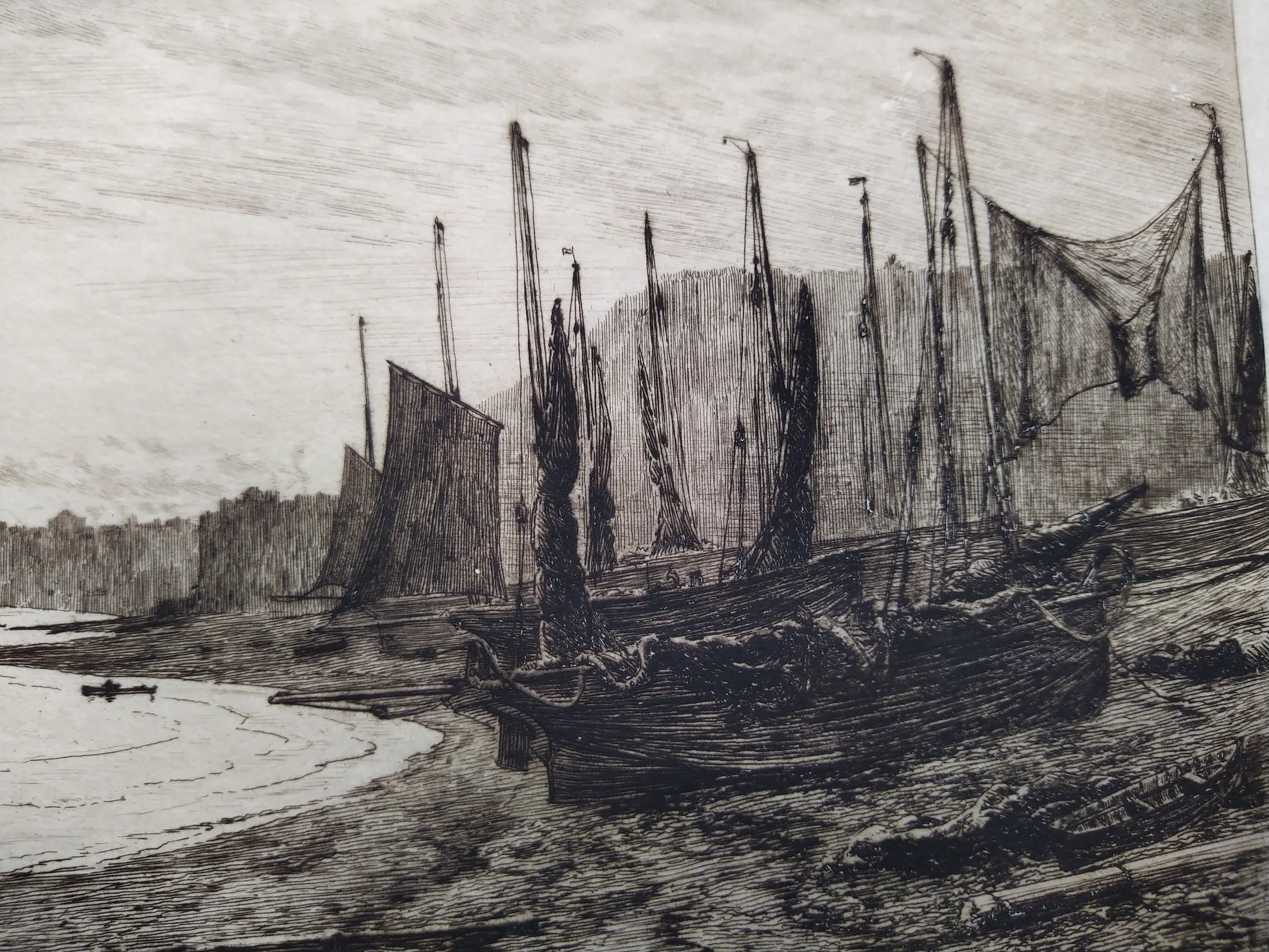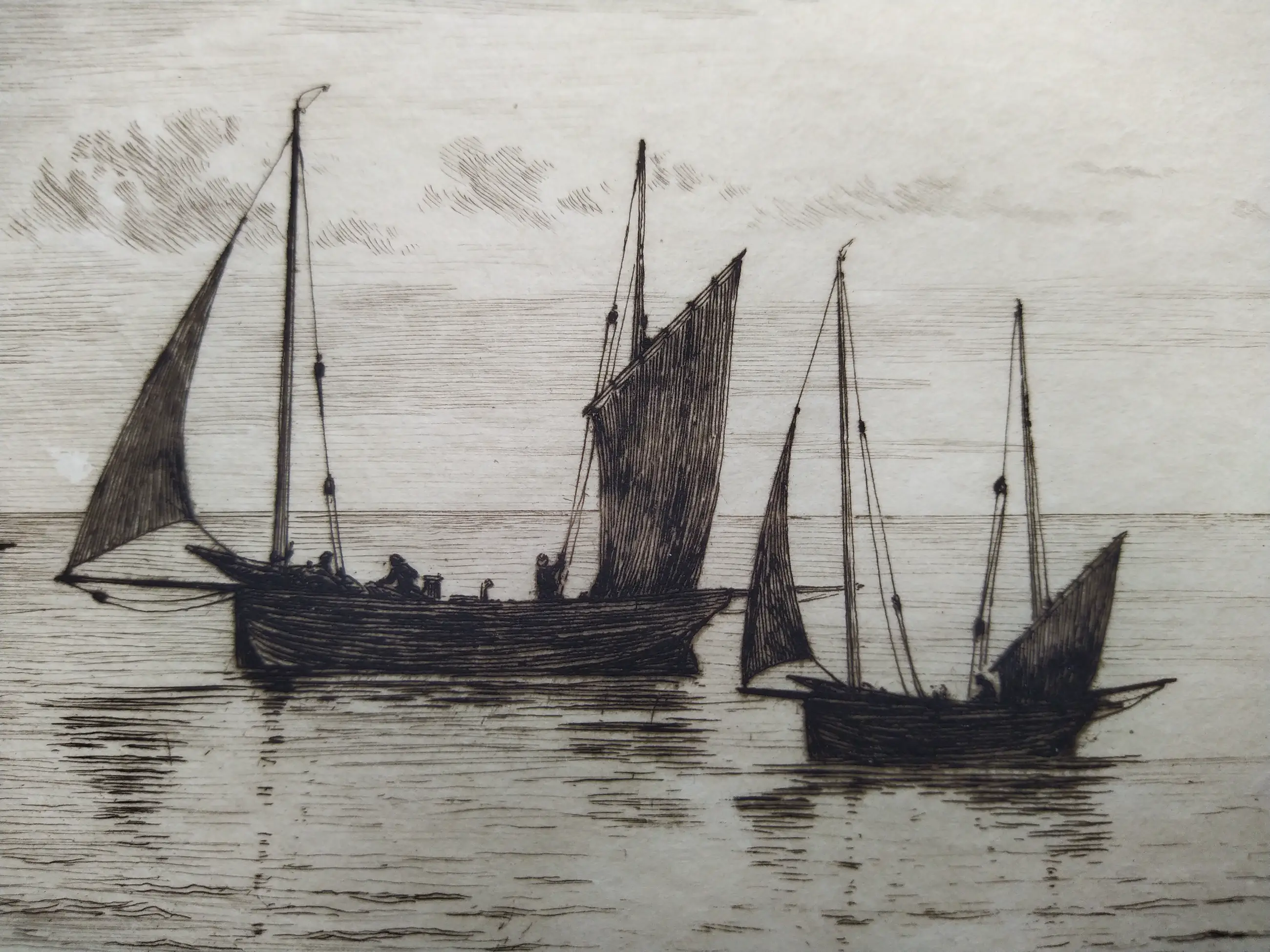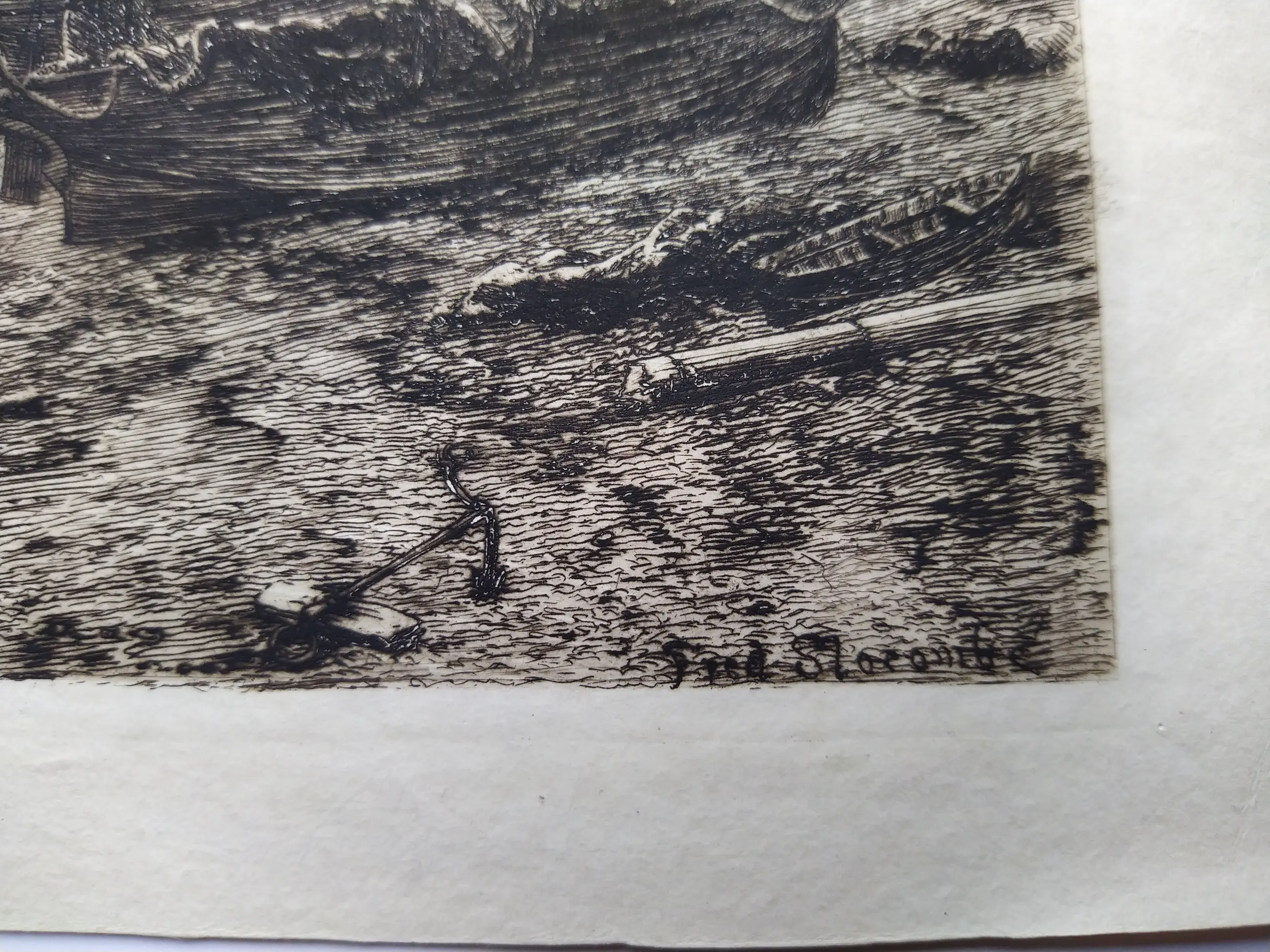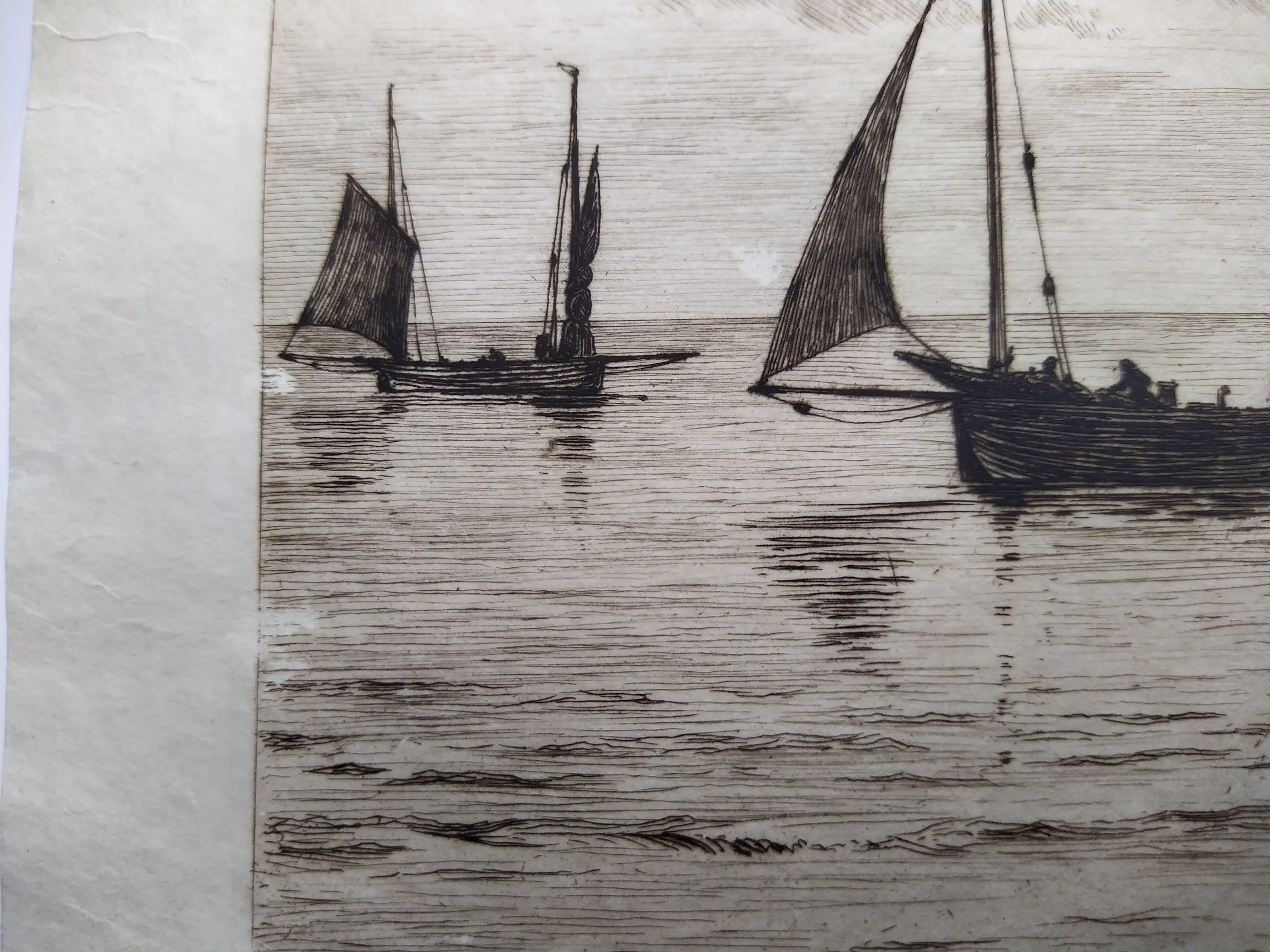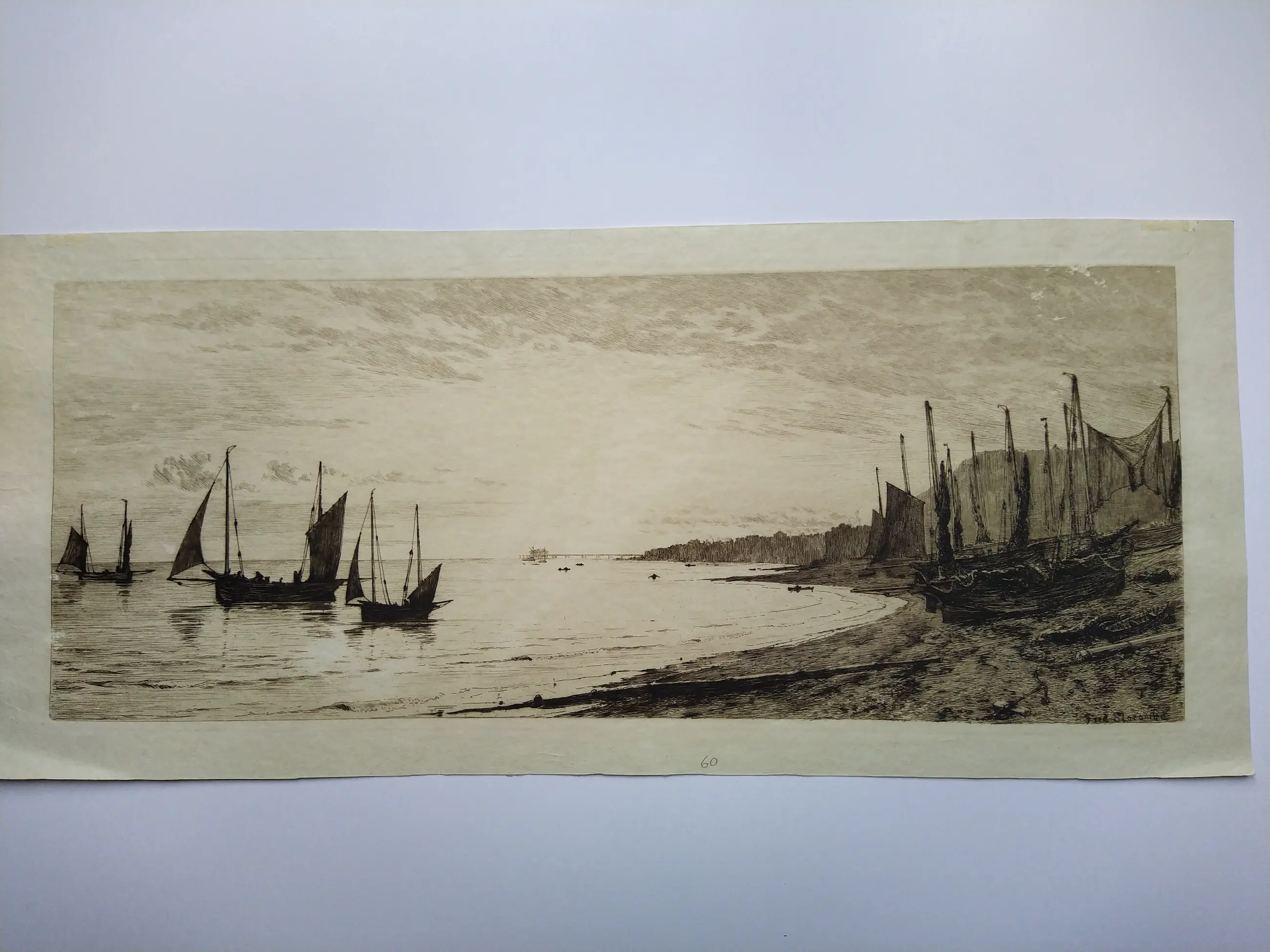 Een zeezicht van Frederick A. Slocombe. Rechtsonder in druk gesigneerd. Afmetingen (h x b): Afbeelding: 18 x 45,5 Blad: 22,5 x 50,5