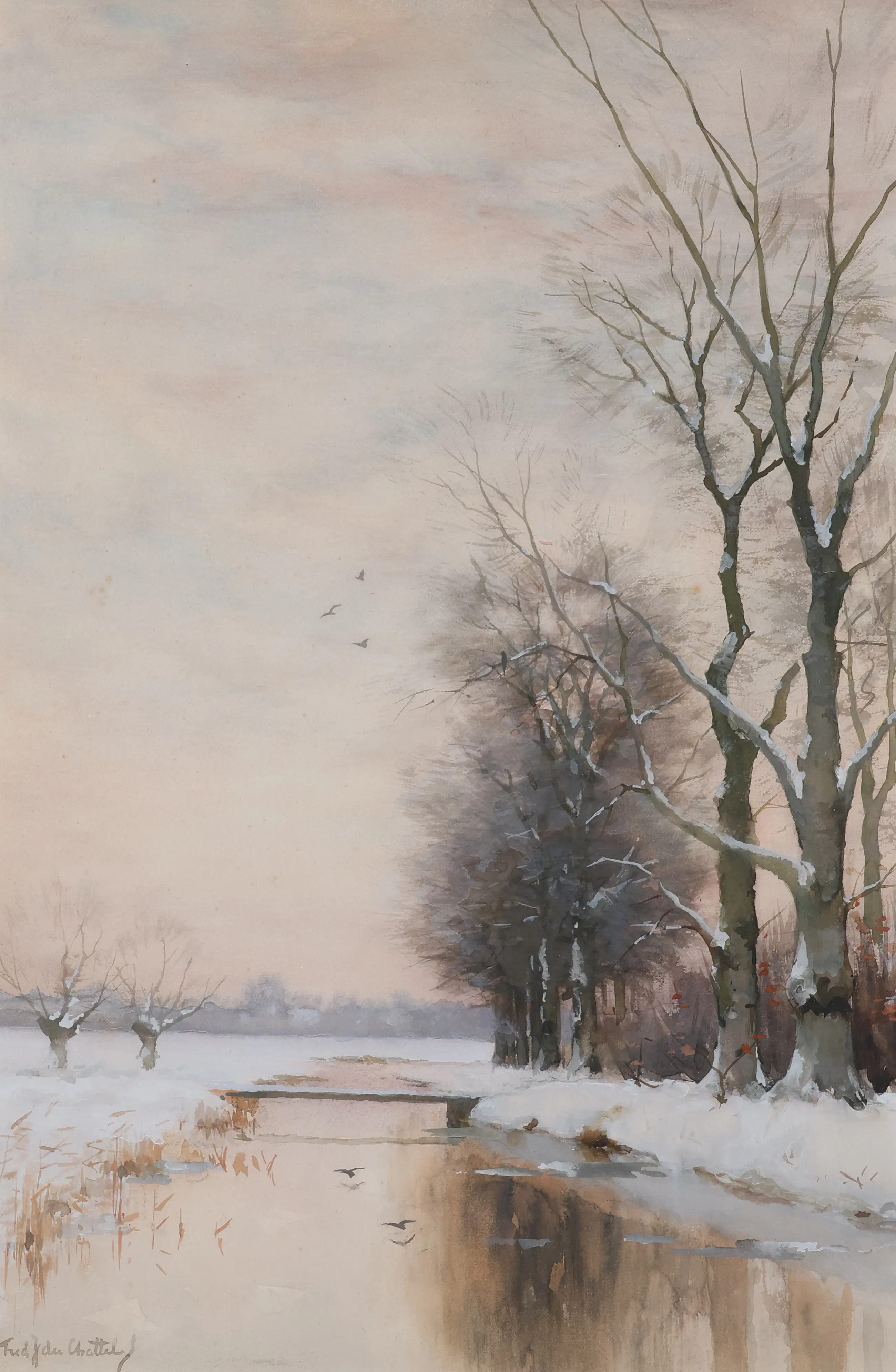 De Utrechtse Vecht en omgeving inspireerden F.J. van Rossum du Chattel tot het schilderen van talloze impressies van deze rivier. Daarom wordt hij door critici wel ‘de schilder van de Vecht' genoemd. Daarnaast schilderde hij het landschap rond Den Haag. De kunstenaar werd in 1856 in Leiden geboren en kreeg zijn eerste schilderlessen van zijn vader, Jan Hendrik van Rossum du Chattel. Daarna bezocht hij in Den Haag de 'Teekenschool' en werkte op het atelier van Willem Maris. Hoewel Van Rossum du Chattel duidelijk werd gevormd door de Haagse School ontwikkelde hij een geheel eigen, kenmerkende stijl.