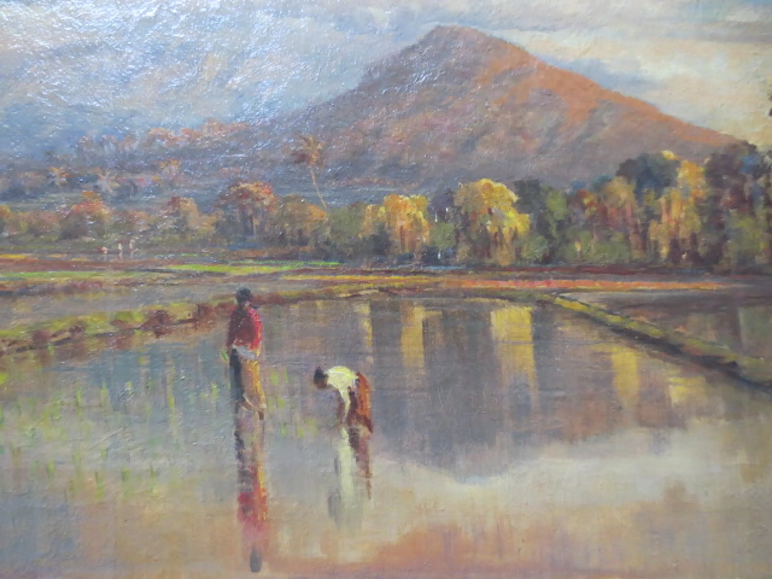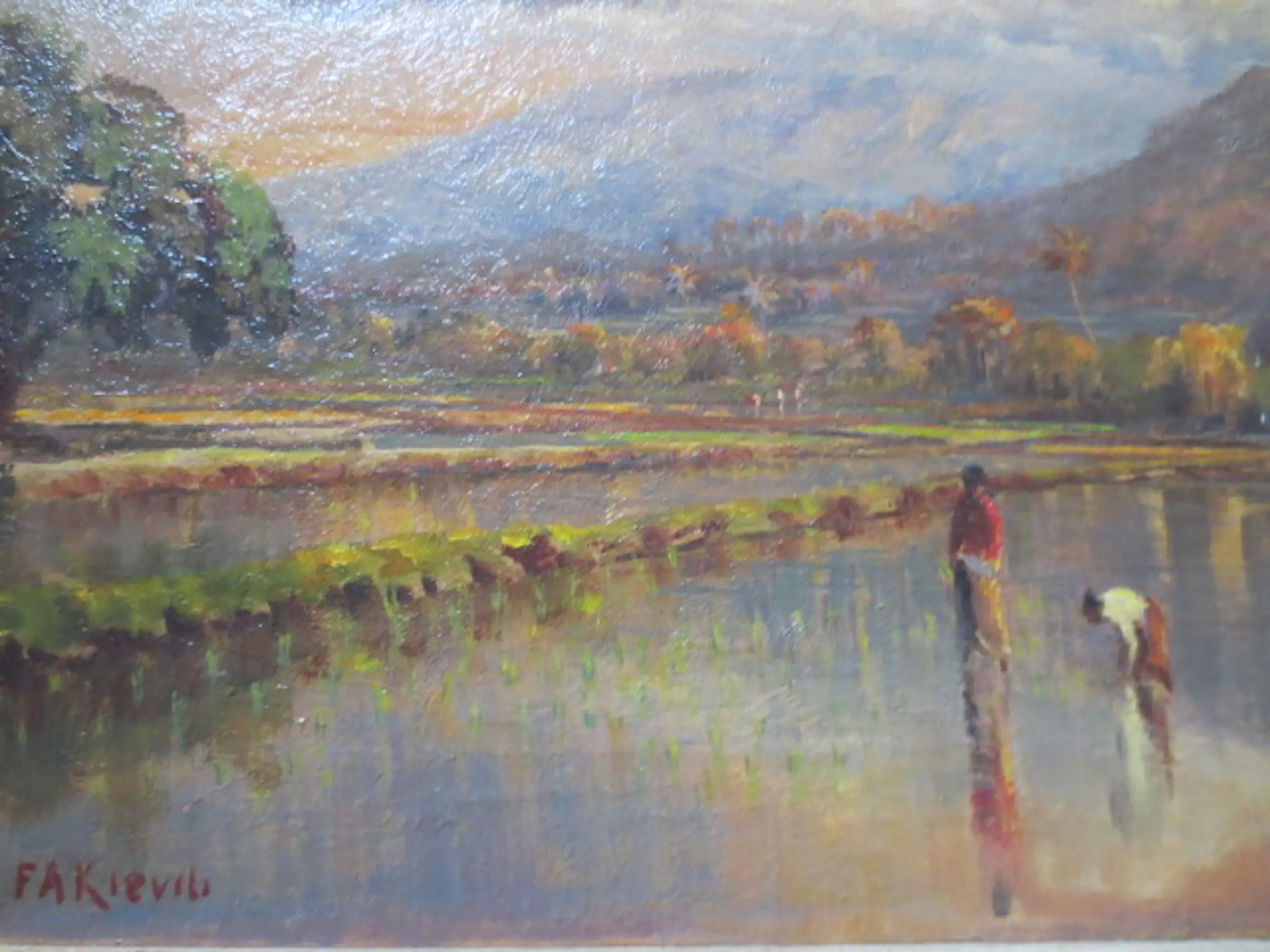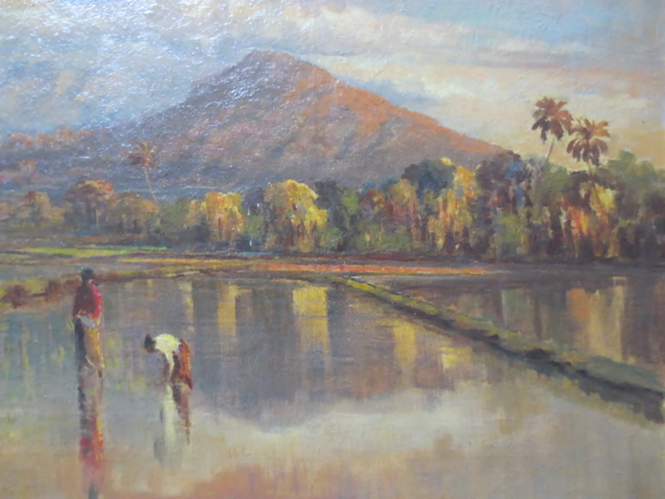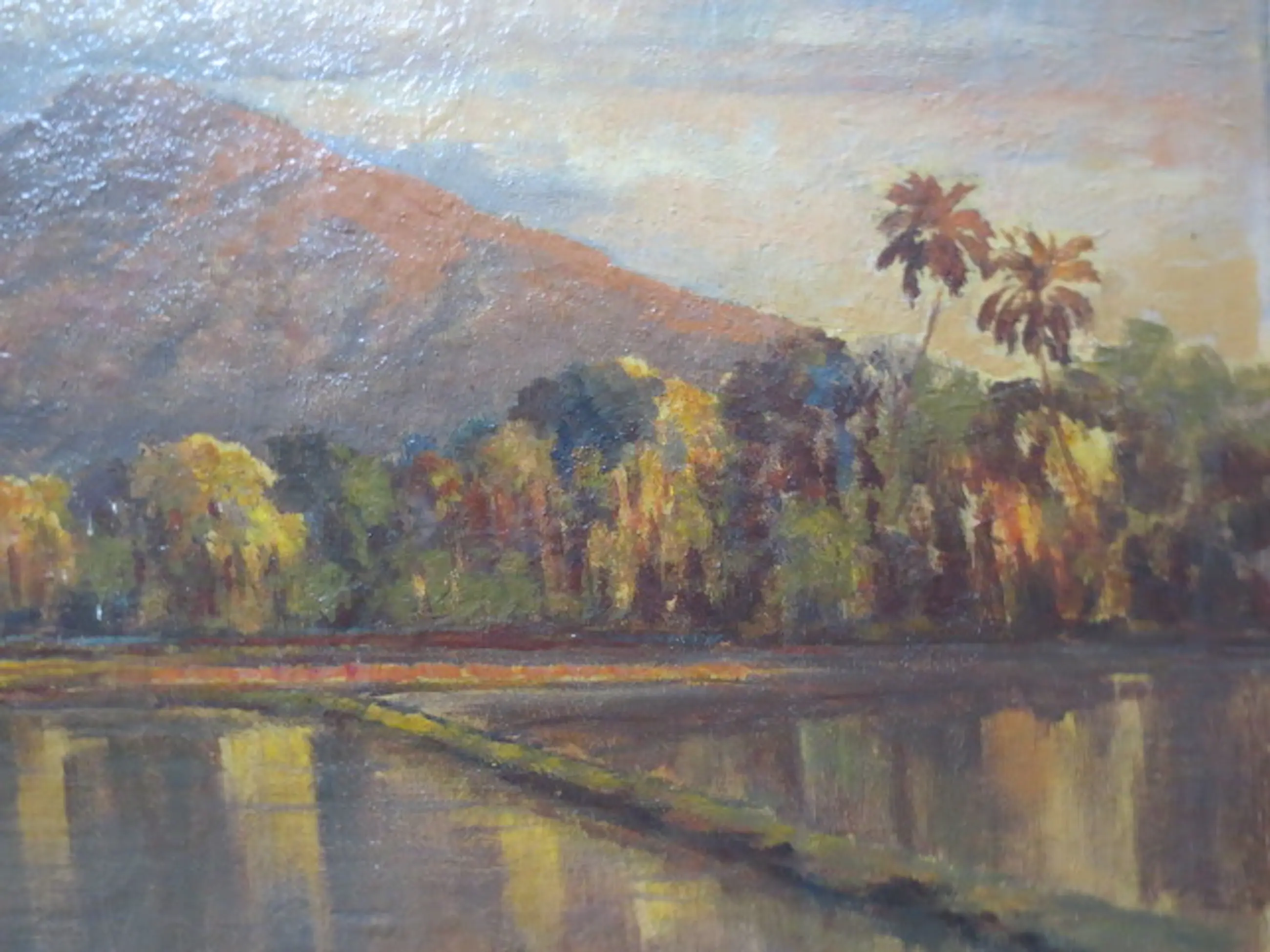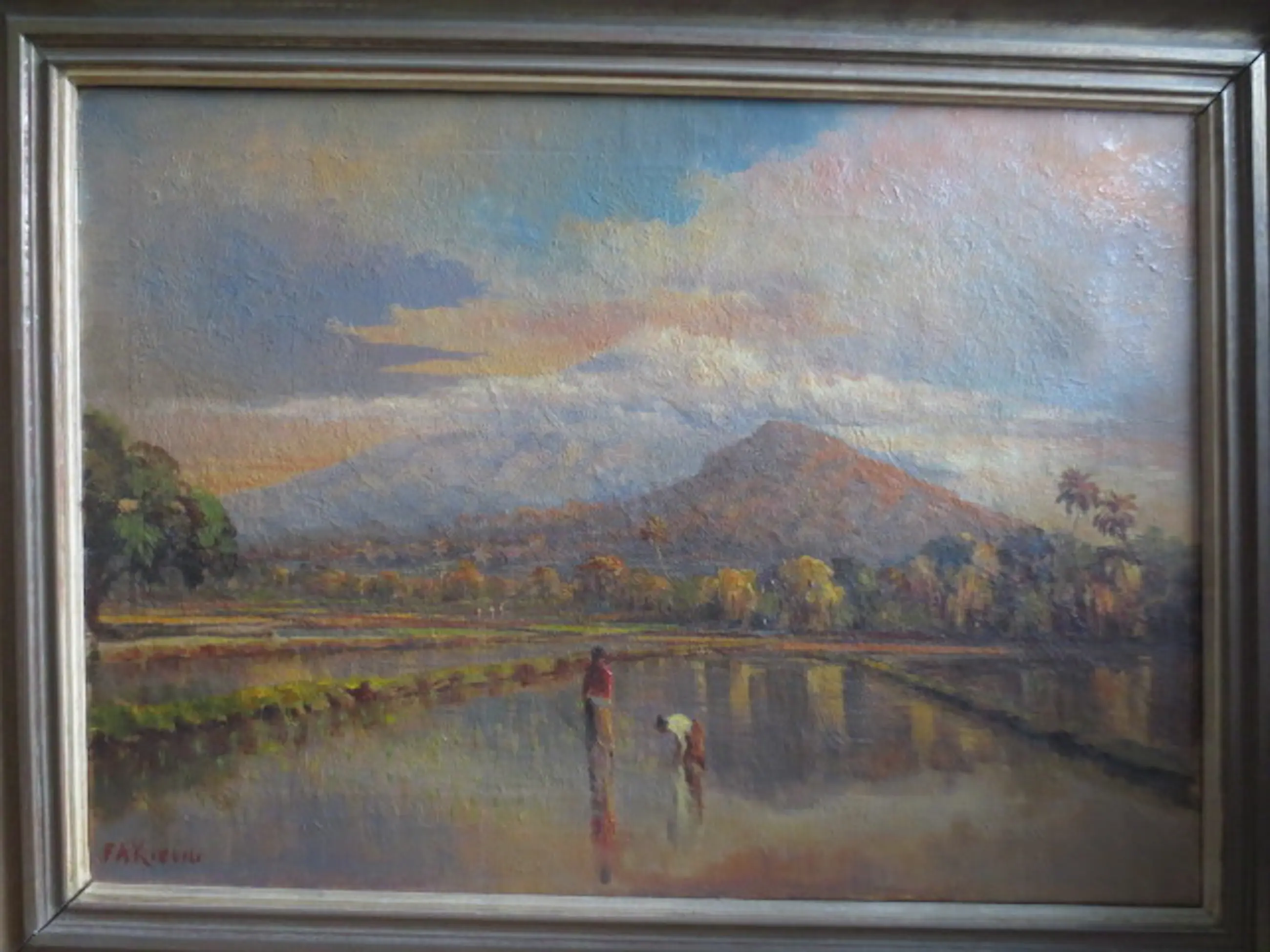 Frederik Anton Kievits (1887-1951) Berggezicht Java met Vulkaan Olieverf op Doek Gesigneerd linksonder Conditie Uitstekend