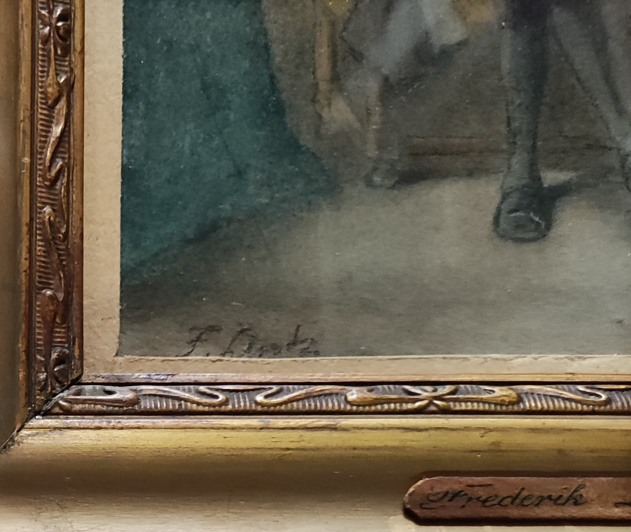 Gesigneerd linksonder. Frederik Lintz werd geboren te Den Haag op 22 december 1824 en overleed aldaar op 19 januari 1909. Broer van Ferdinand Ernst Lintz. Leerling van Huib van Hove. Schilder, tekenaar en aquarellist van genre- en figuurvoorstellingen.