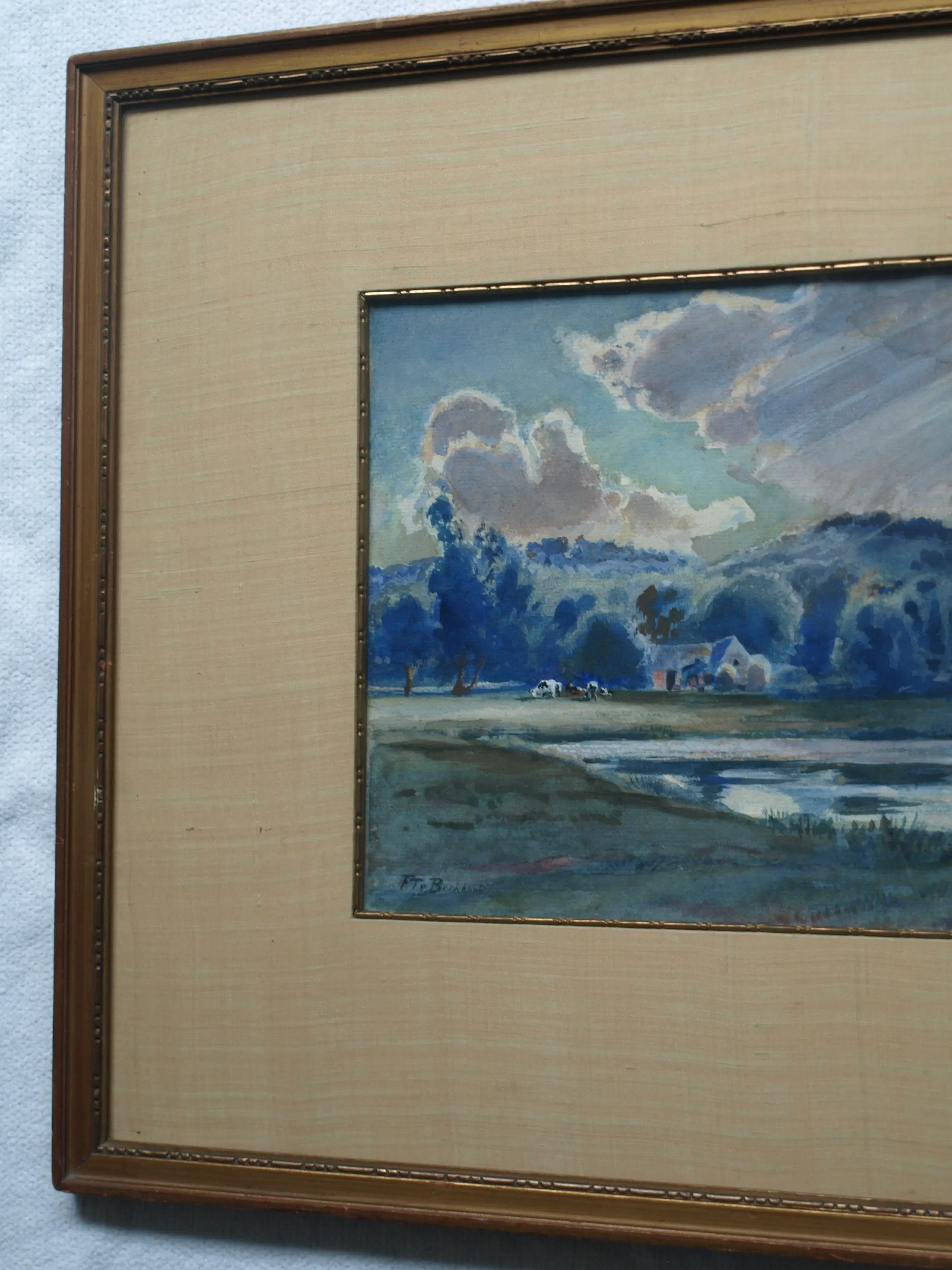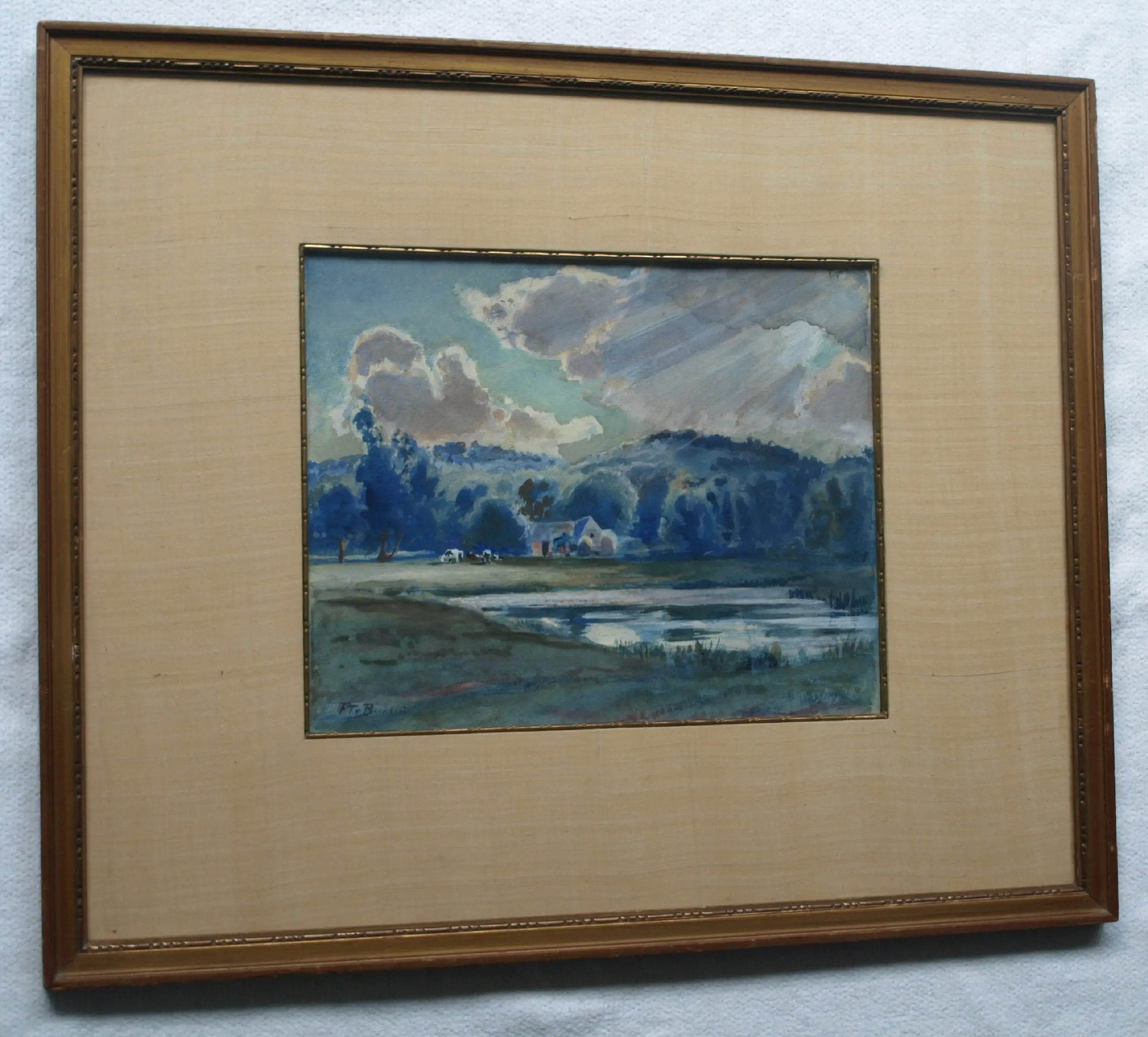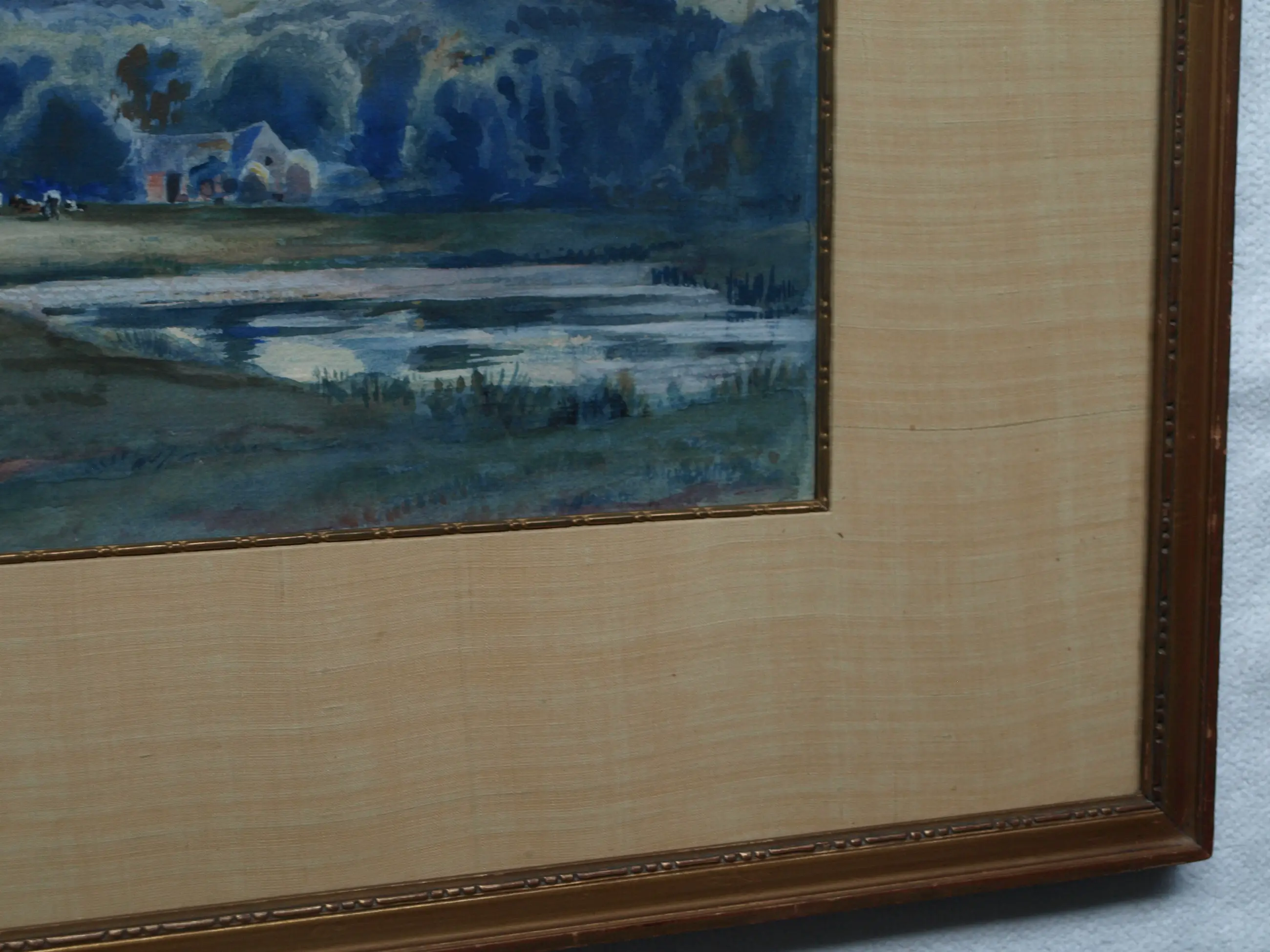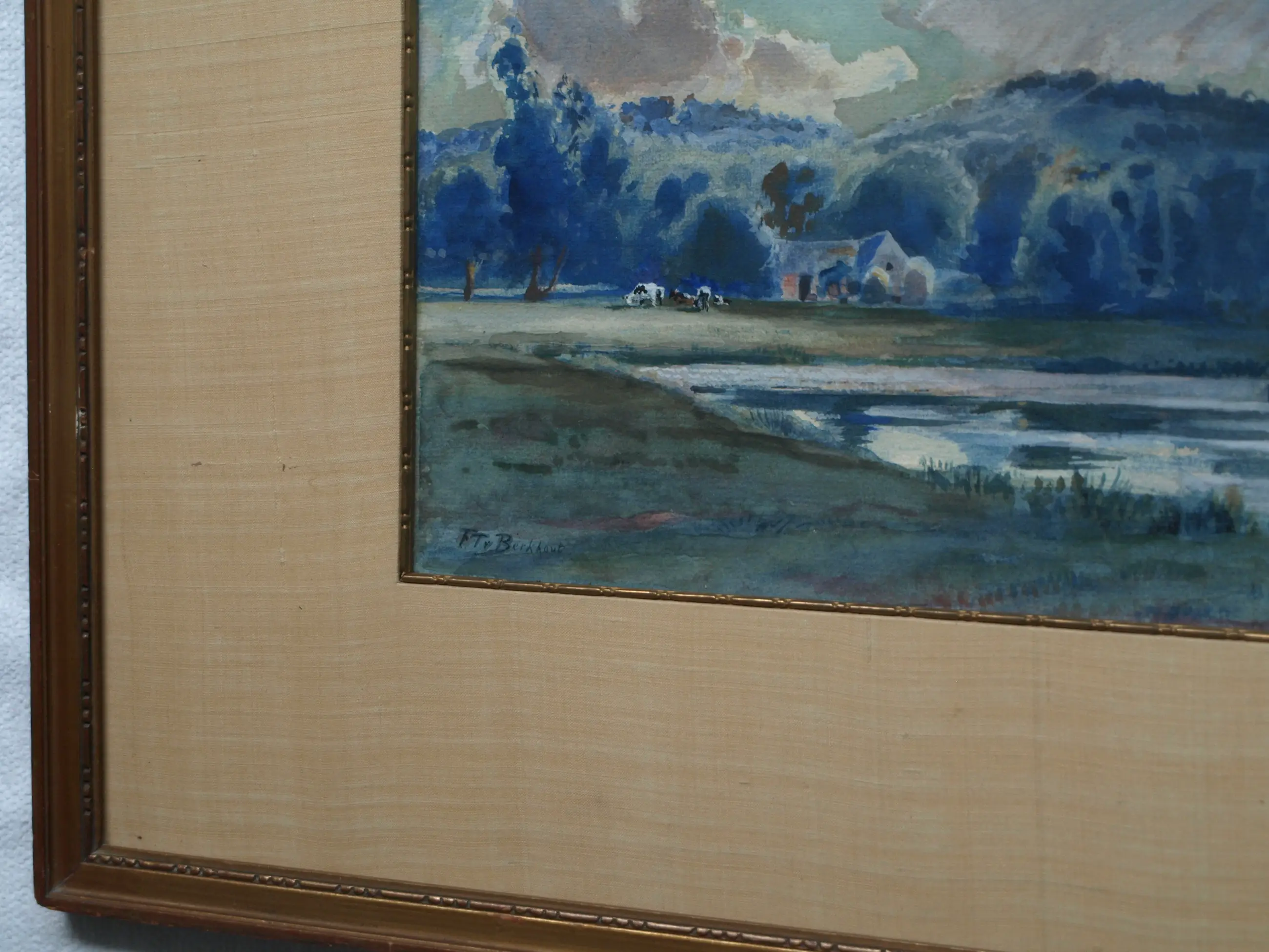 Een aquarel van de “schilderende bankdirecteur” Jonkheer Frederik Teding van Berkhout (1883-1965). -Gesigneerd linksonder. -Ingelijst in de originele houten lijst met passe-partout en glasplaat. -Afmetingen: Lijst, 44½ x 54 x 1½ cm. Beeld, 23 x 29 cm. -Herkomst: Uit een inboedel. Op de achterkant van de lijst staat geschreven dat de aquarel in het bezit was van de kunstenares Jonkvrouw Susanna Teding van Berkhout (1881-1961); zie de laatste foto. -Conditie: De aquarel is in zeer goede staat. De houten lijst heeft slijtplekjes. Zie ook de foto’s. Kan zo aan de muur.