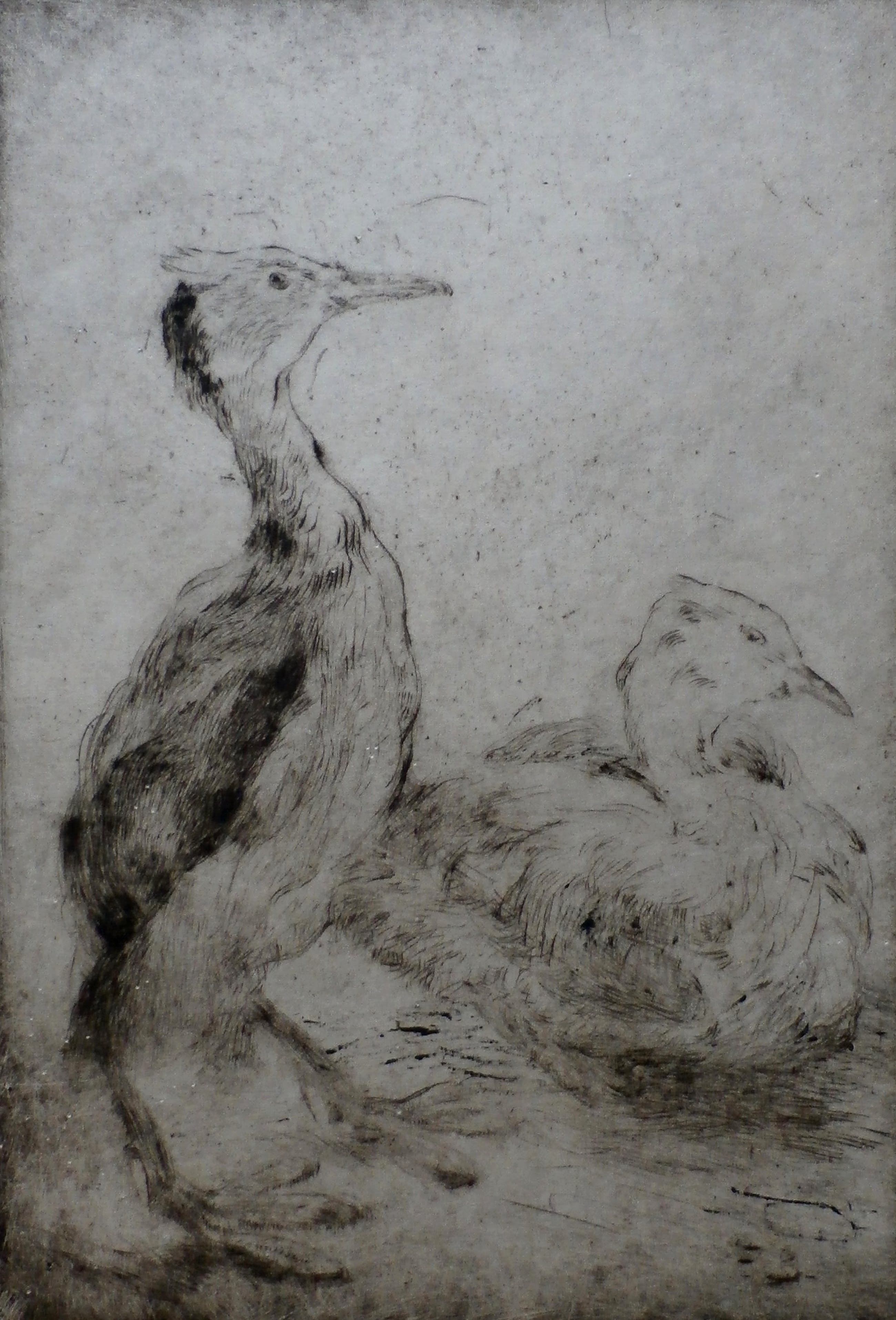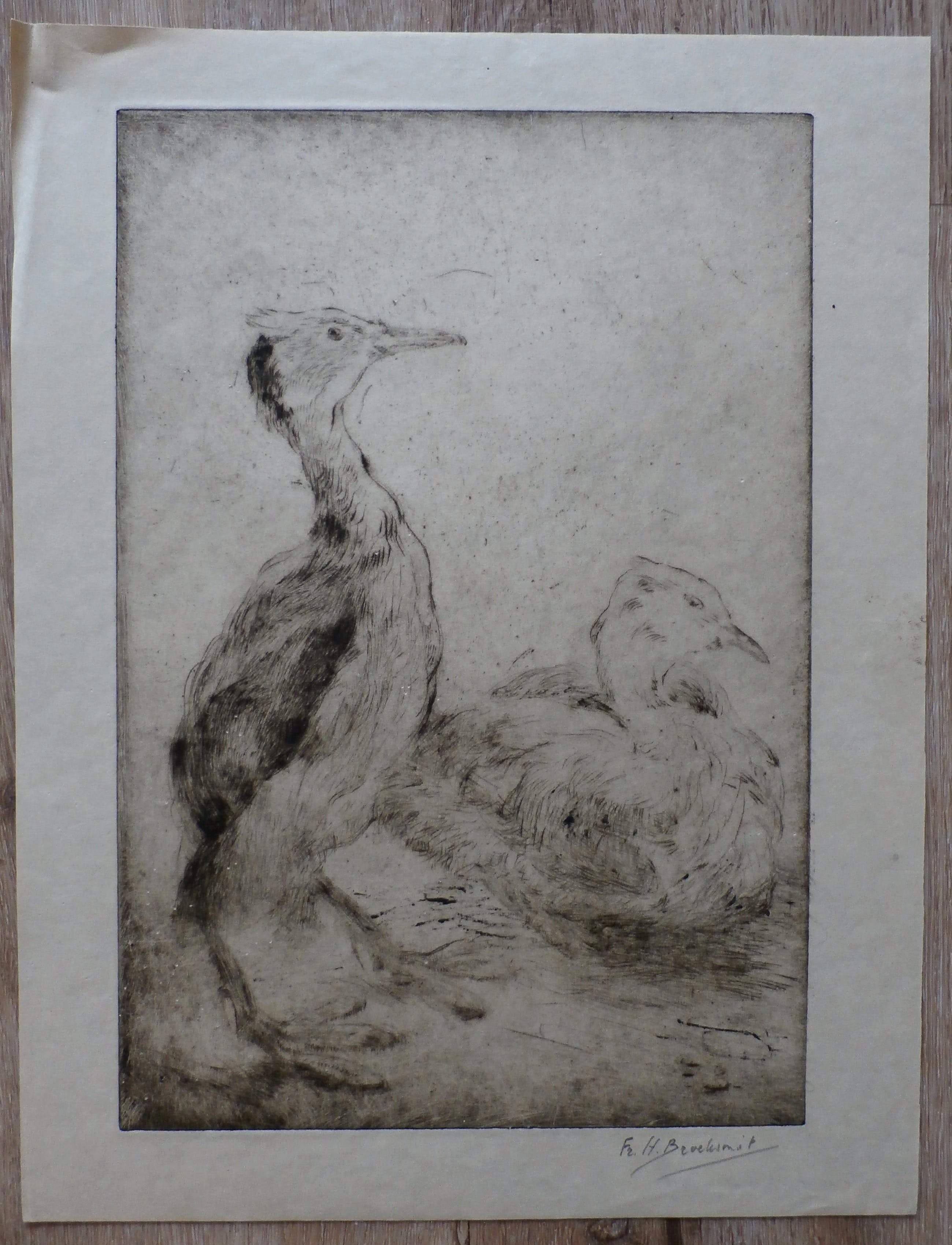 Ets van Frederika Broeksmit. Titel: Dieren. Afkomstig uit de nalatenschap van de kunstenares. Afmetingen voorstelling: H28 x b19 cm. Afmetingen blad: H47 x b65 cm.