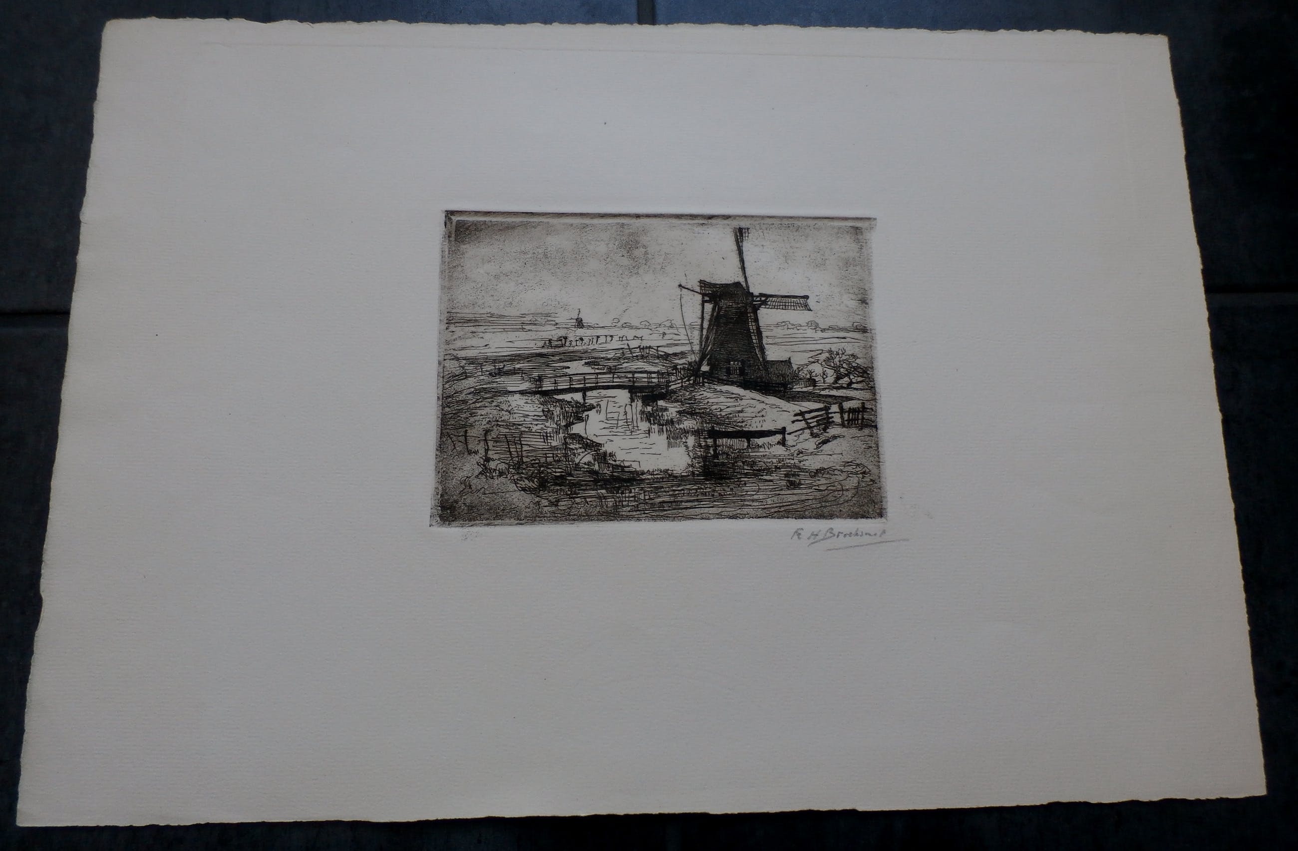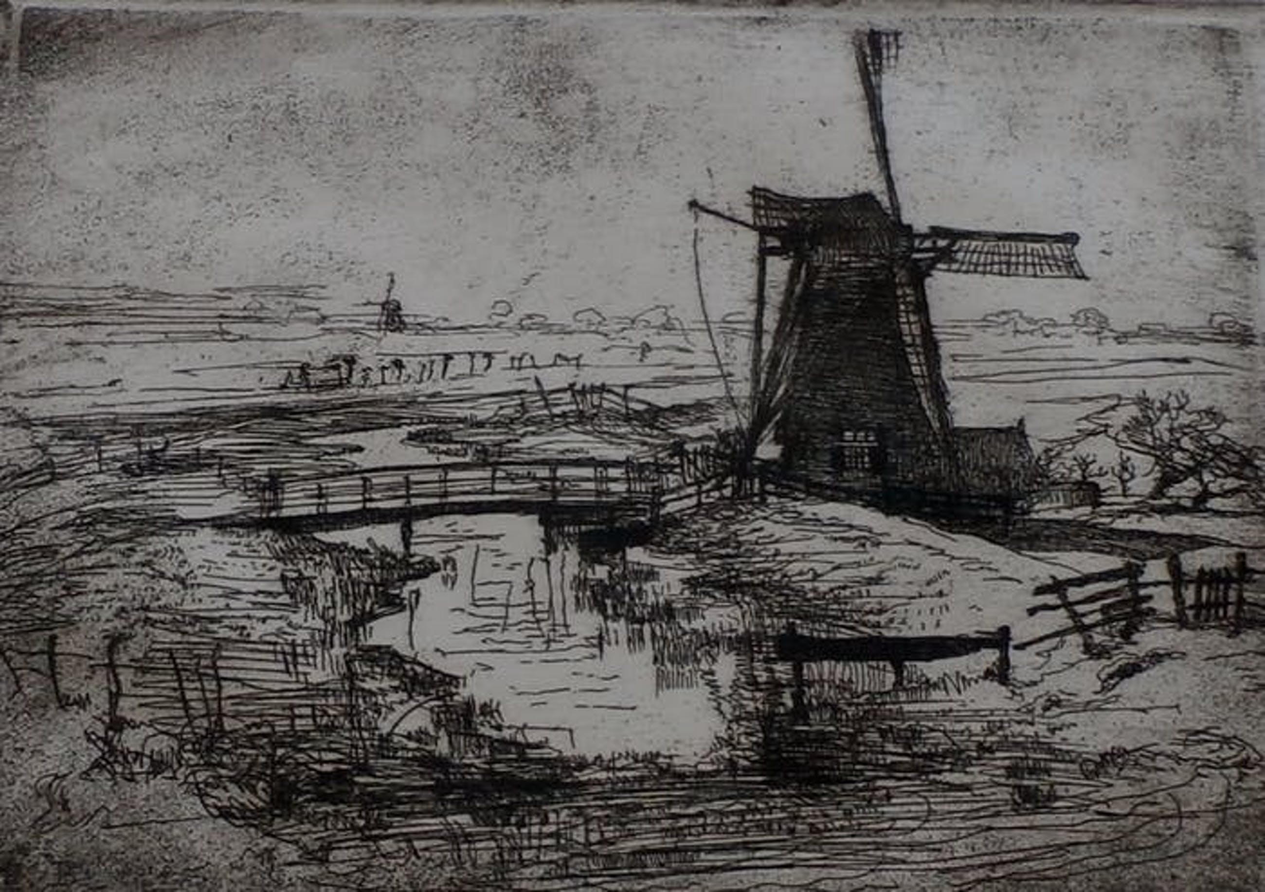 Ets van Frederika Broeksmit. Titel: Landschap met molen. Oplage: Proefdruk, beperkte oplage. Afkomstig uit de nalatenschap van de kunstenares. Afdruk in bruine tint op Hollands papier. Het werk is rechtsonder gesigneerd door de kunstenares. De authenticiteit van het aangeboden werk wordt volledig gegarandeerd. Een certificaat van echtheid kan, op aanvraag, worden gemaild.