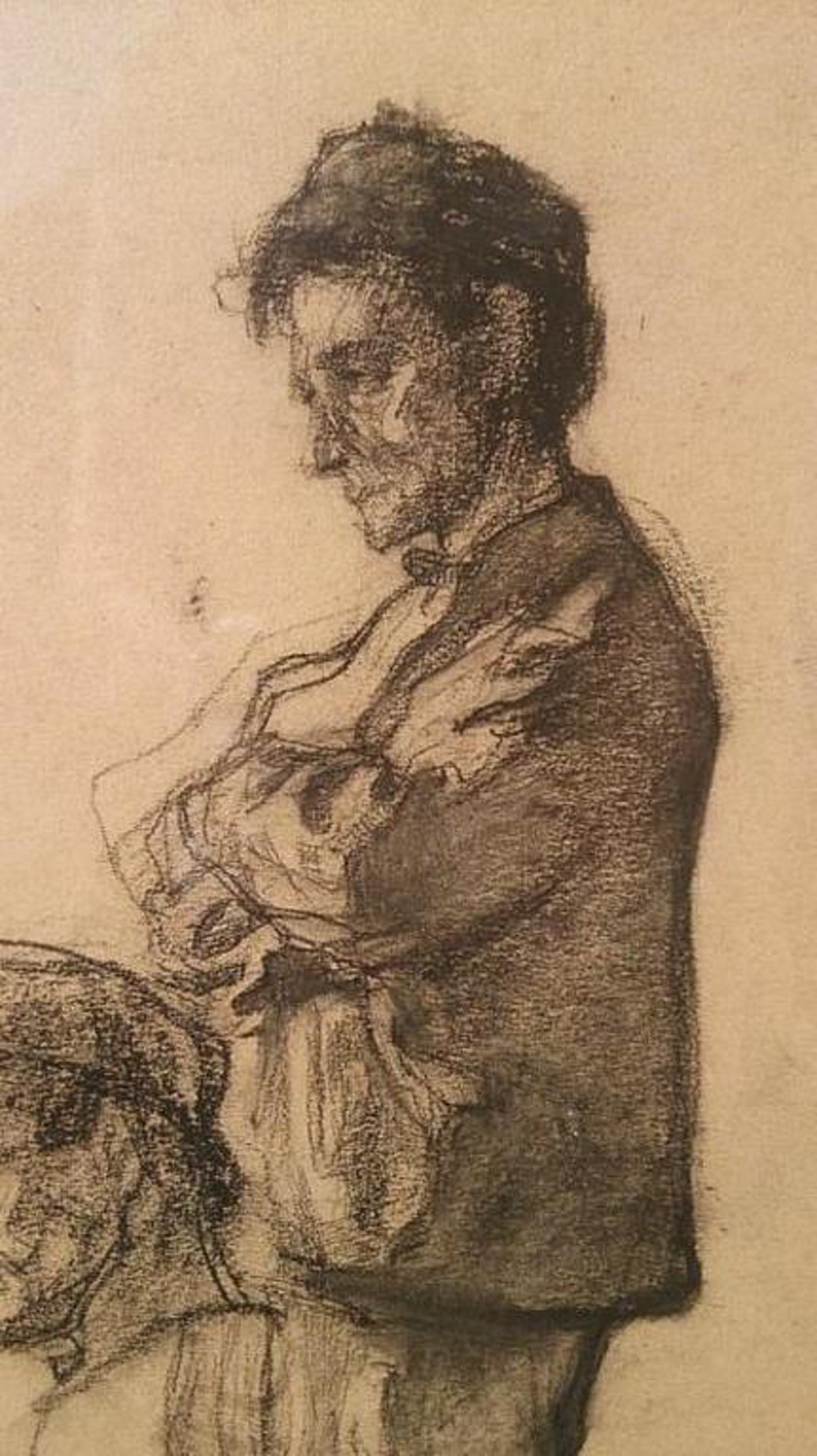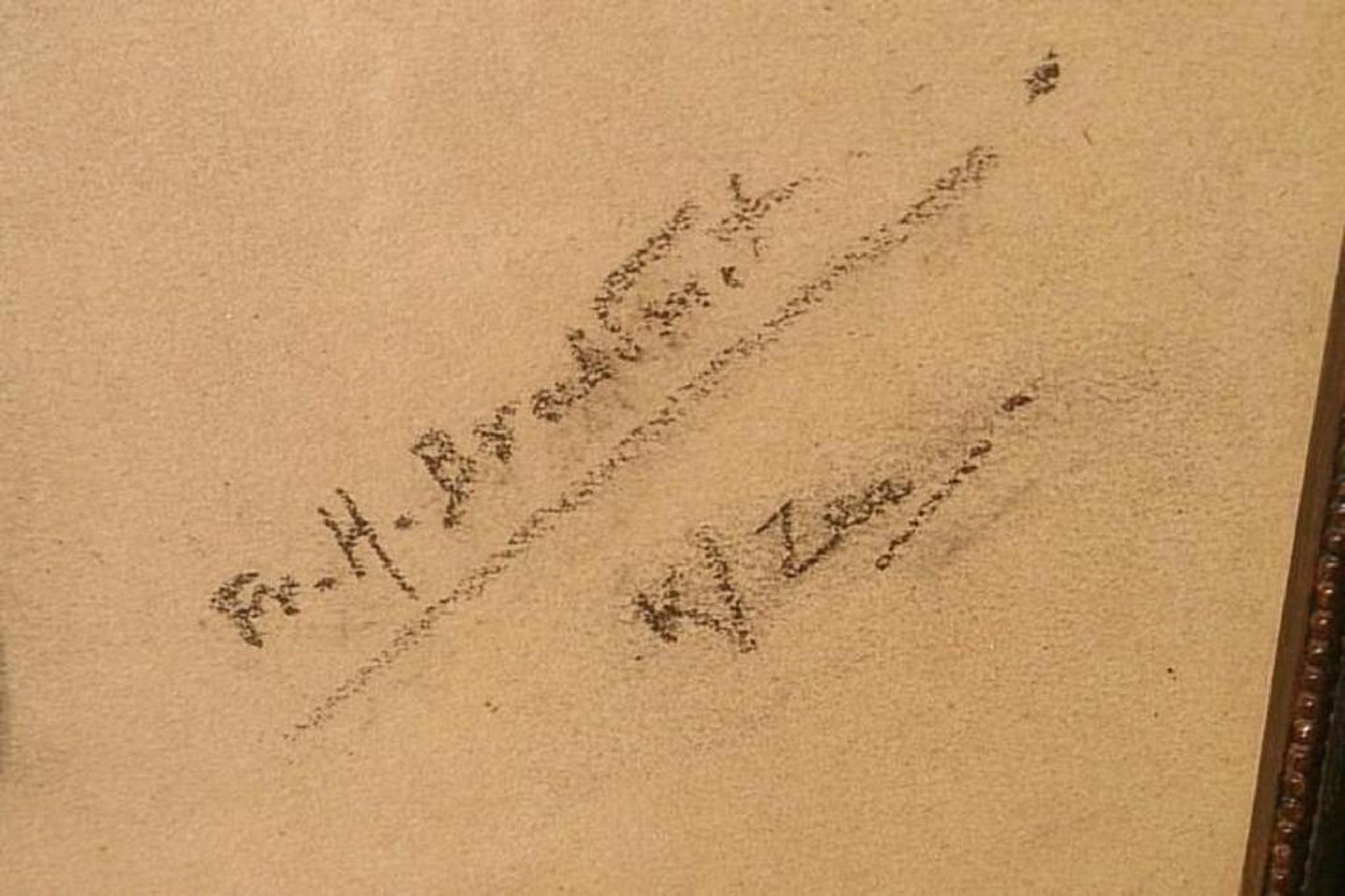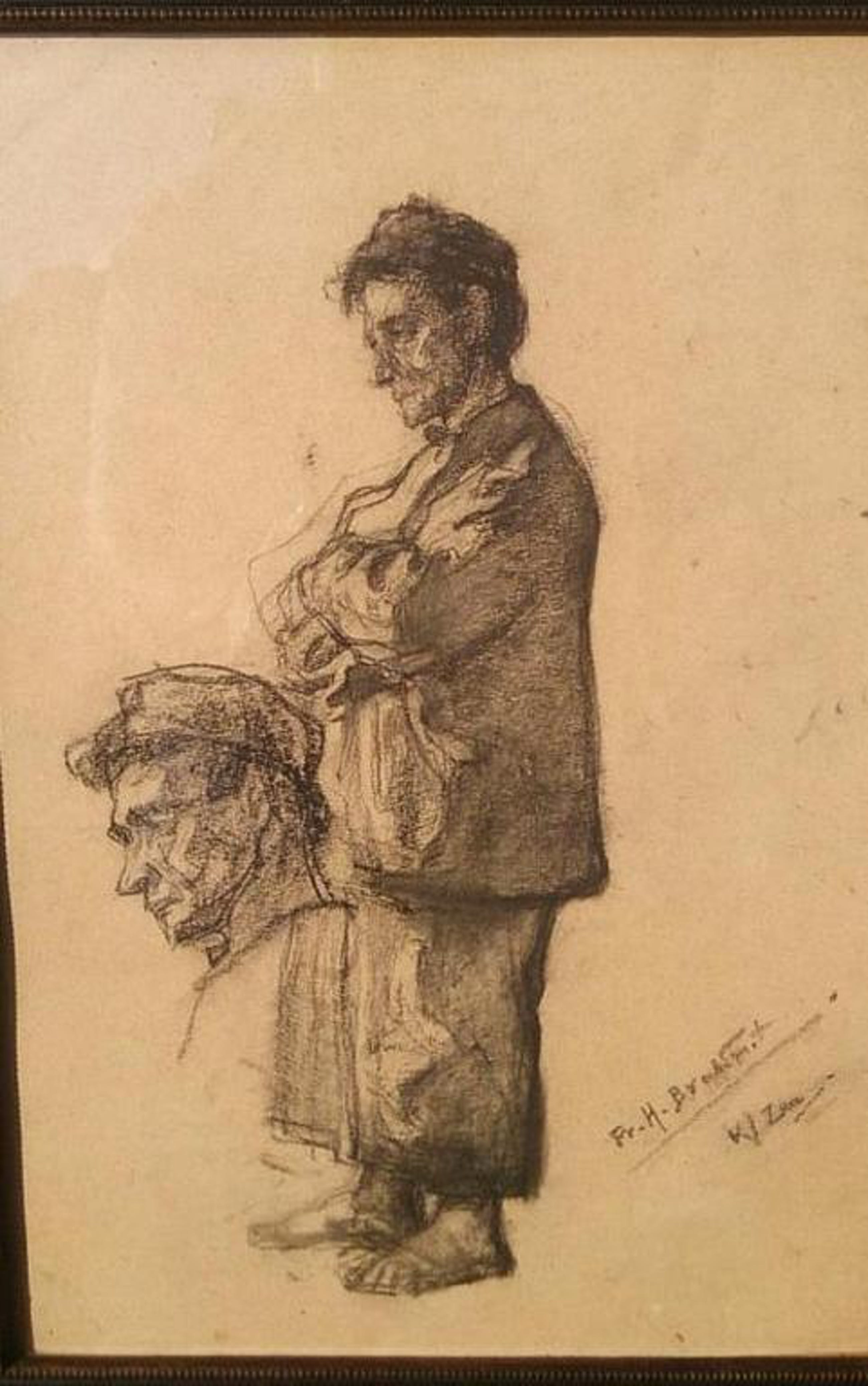 Schitterend houtkool op papier. impressionistische studie vanuit circa 1920 voorstelling een Katwijkse visser / boer, geschilderd door bekende Zuid Hollandse schilderes Frederika Henriëtte BROEKSMIT ( Charlois (Rotterdam) 1875 - Bussum 1945). Ze staat vermeld in P. Scheen lexicon. Opleiding gehad bij Academie voor Beeldende Kunsten (Rotterdam) Rijksakademie van beeldende kunsten (Amsterdam) 1899-1902 ; Rijksnormaalschool voor Teekenonderwijzers (Amsterdam) 1901-1902. Woonde en werkte in Rotterdam, Amsterdam, Noorwegen (studiereis, Katwijk aan Zee (Katwijk), Rotterdam, Katwijk aan Zee (Katwijk) tot 1943 en Bussum.Leerling van Allebé, August