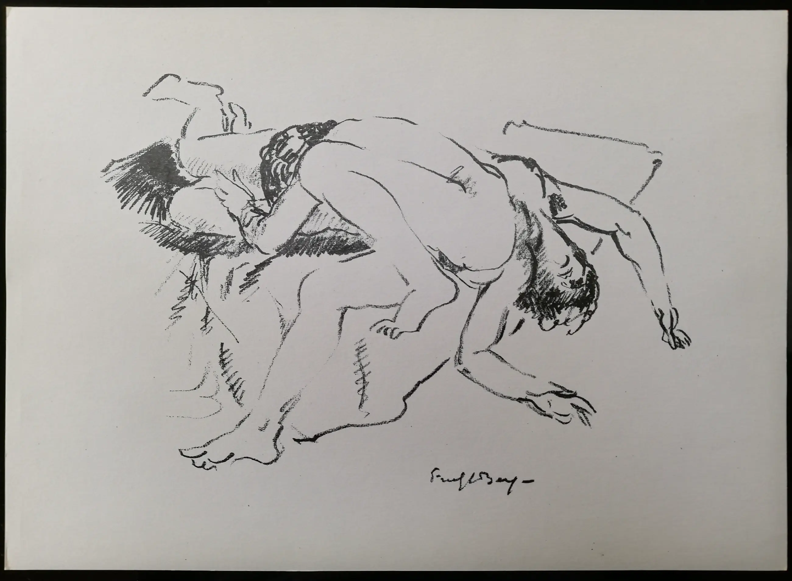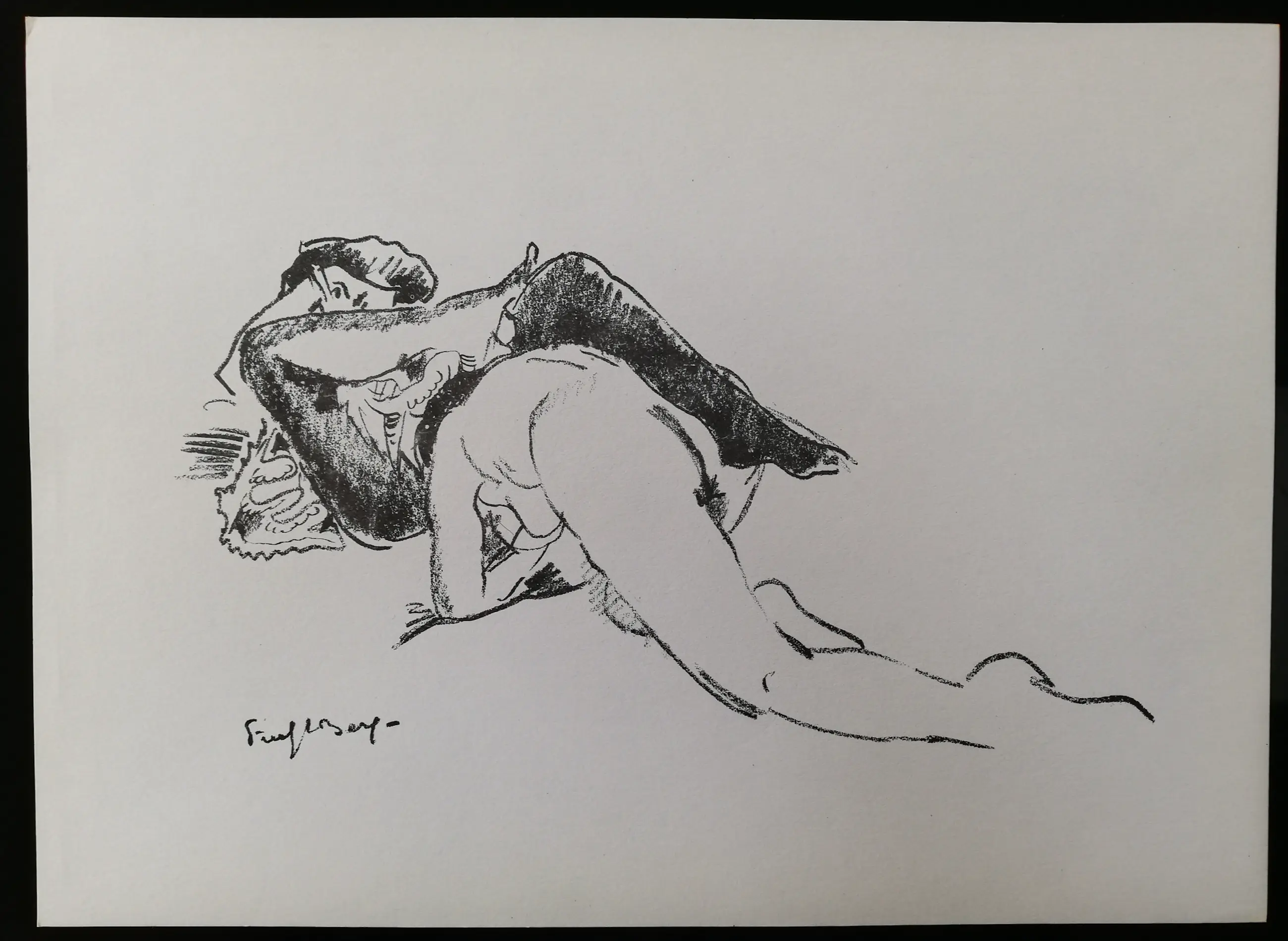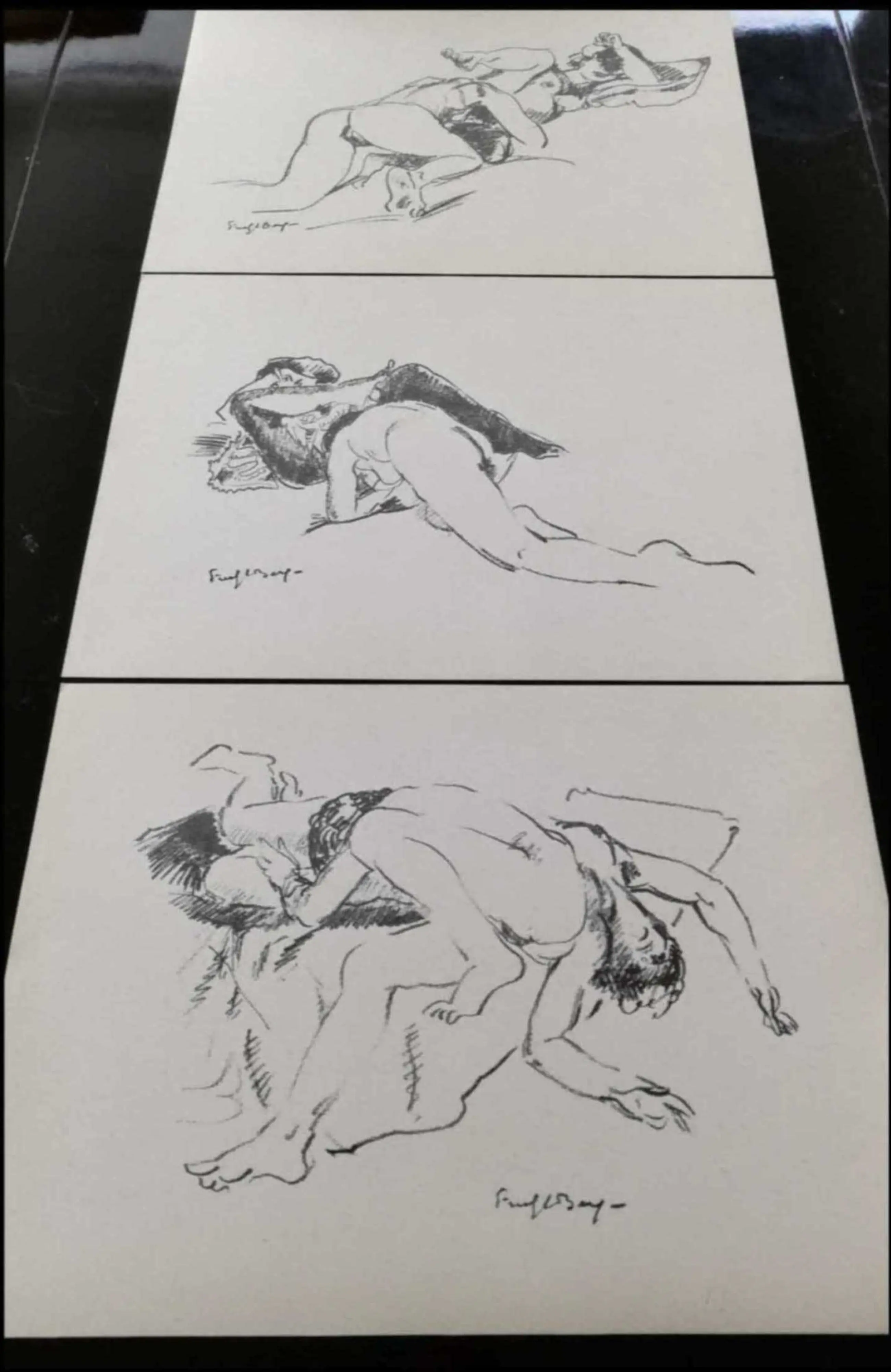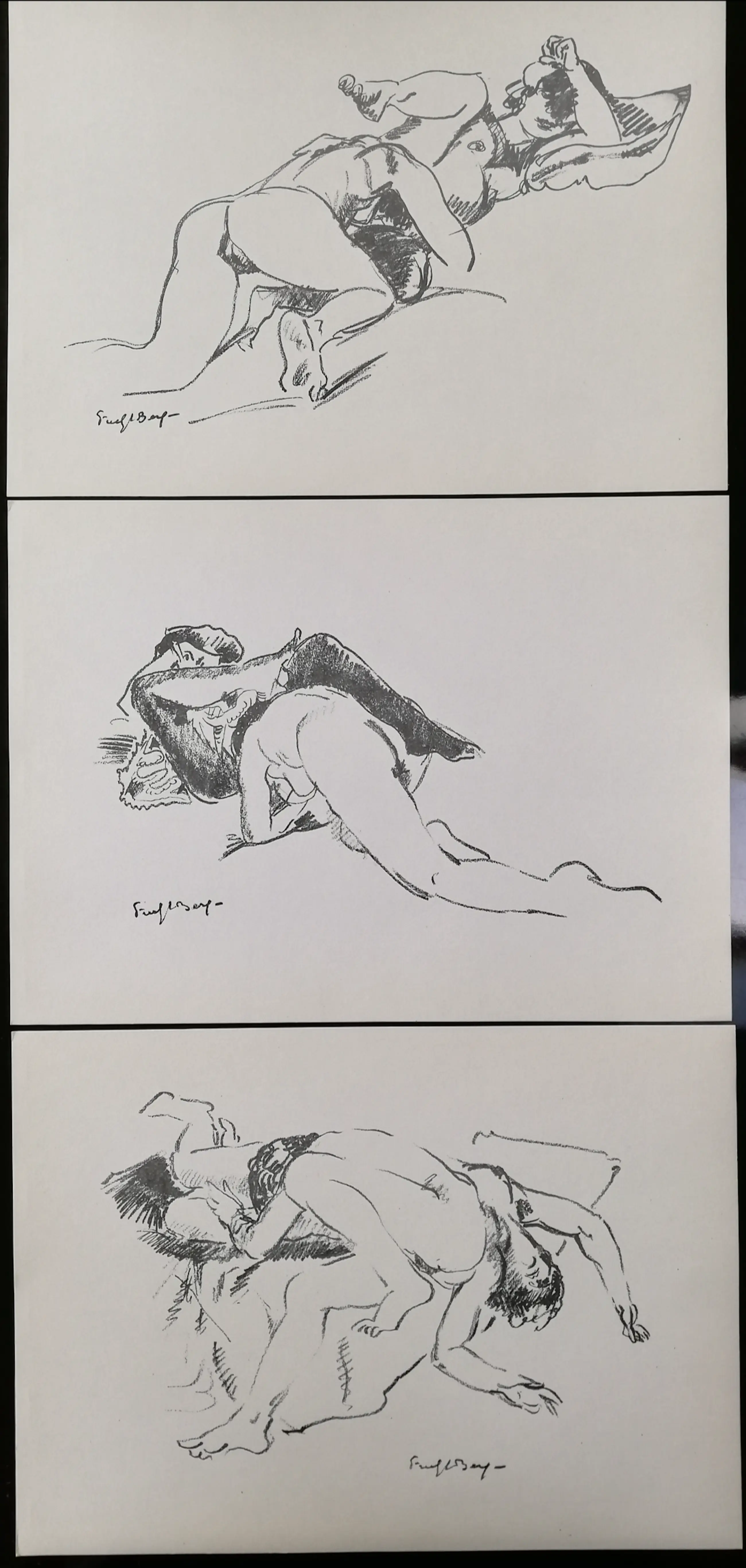 3 verschillende zwart wit litho's van fauvist Freek van den Berg met erotische voorstelling. Per stuk 25 x 34 cm. Alle 3 gesigneerd in de plaat. In zeer goede staat zonder gebreken.