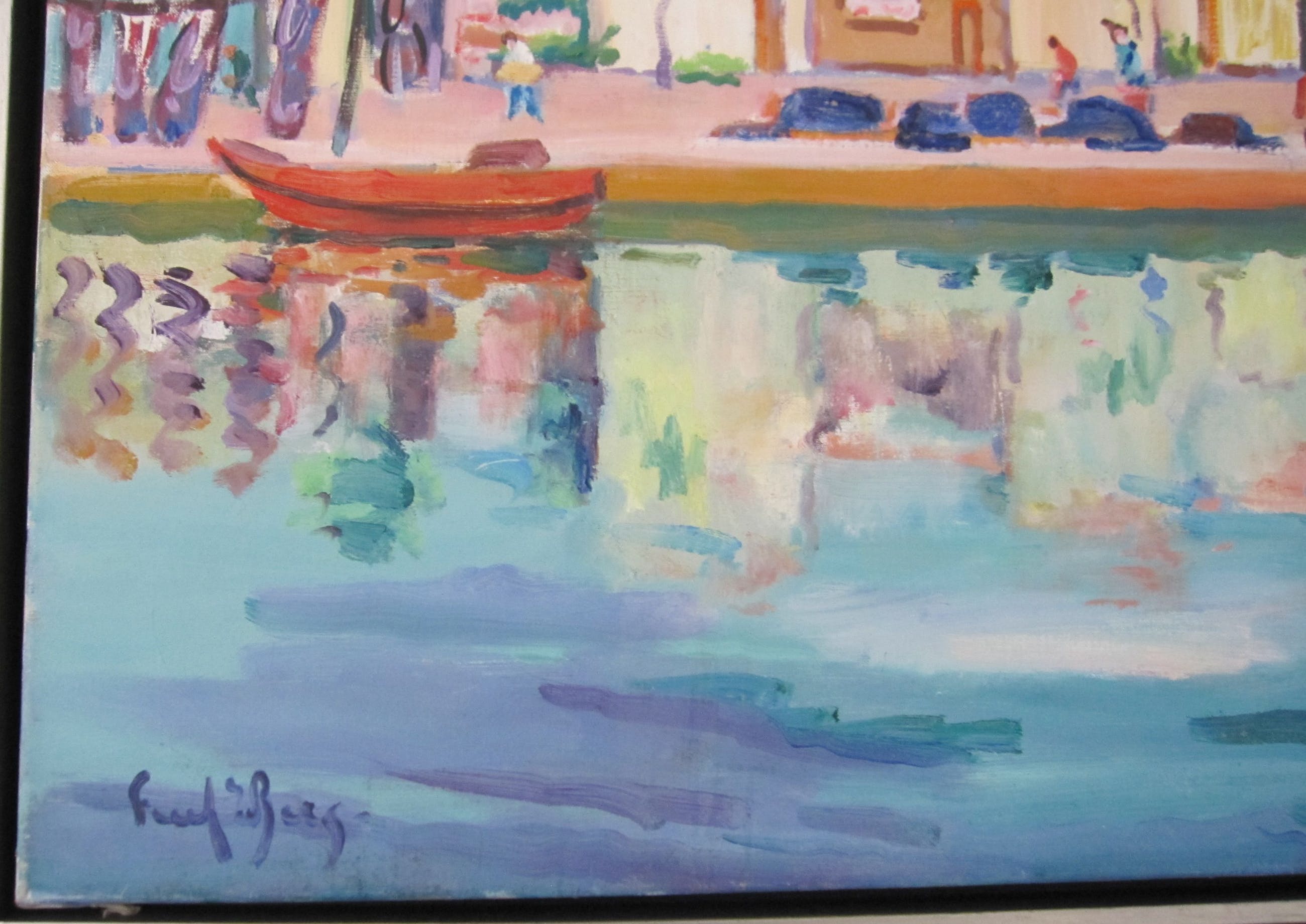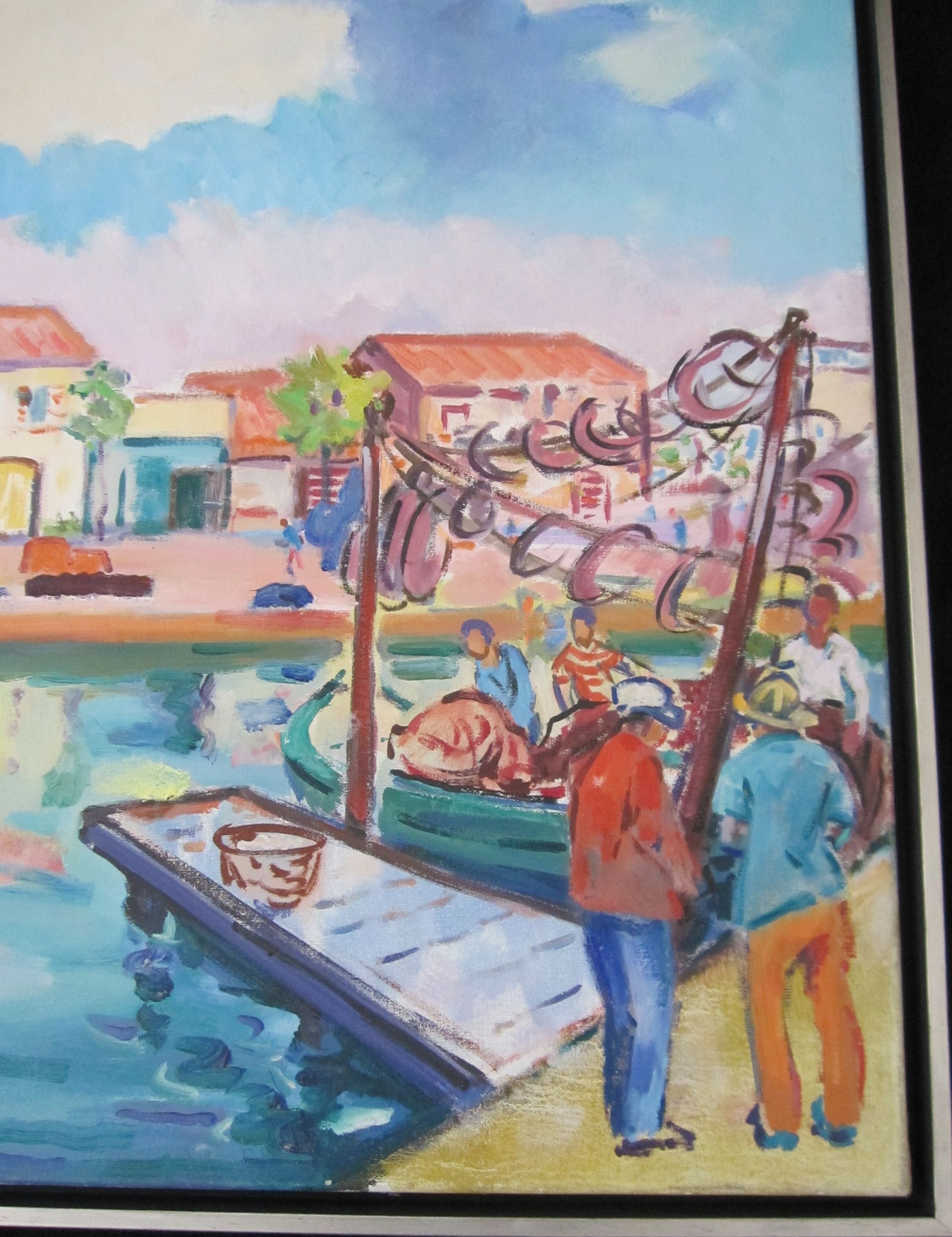 Nog in vakantiesfeer?Een kleurrijk, zonnig schilderij van de Nederlandse fauvist Freek van den Berg. Geschilderd in Zuid-Frankrijk, aan de haven van Martigues aan de Cote d'Azur. Het doek meet 80 x 100 cm en is onlangs gezet in een strakke baklijst, zwart met zilveren rand. Kan dus zo opgehangen worden. Eyecatcher in elke ruimte: boven de bank of in een modern kantoor. Bij aankoop graag zelf afhalen (eventueel gratis bezorgen 25 km rondom Hilversum) of laten ophalen door koerier. Is te groot om per post te versturen.
