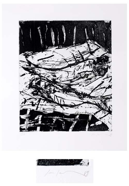 Friedemann Hahn, "Stilleben mit Heringen - Hommage à Vincent van Gogh", Original-Radierung, Kaltnadel und Aquatinta auf Kupfer, gedruckt auf 300g schweres Vélin BFK Rives Bütten, Drucker Peter Spiegel, Wolfersheim, Herausgeber Edition Rothe, Heidelberg und Frankfurt, 1988, Werkverzeichnis-Nr. 96, vom Künstler mit Bleistift handsigniert, nummeriert und datiert. Auflage: 30 Exemplare, hier: Nr. 15/30, sehr guter Erhaltungszustand, Blattformat: 66 x 50,5, Bildformat: 29,2 x 24,5 cm. Versandkosten (Flachversand) 9,90 Euro. Verkauf aus einer Privatsammlung (Sammlungsauflösung), kein Umtausch, keine Gewähr. Auslandsporto bitte vorher erfragen. Beachten Sie bitte auch meine weiteren eART-Einlieferungen, es lohnt sich !