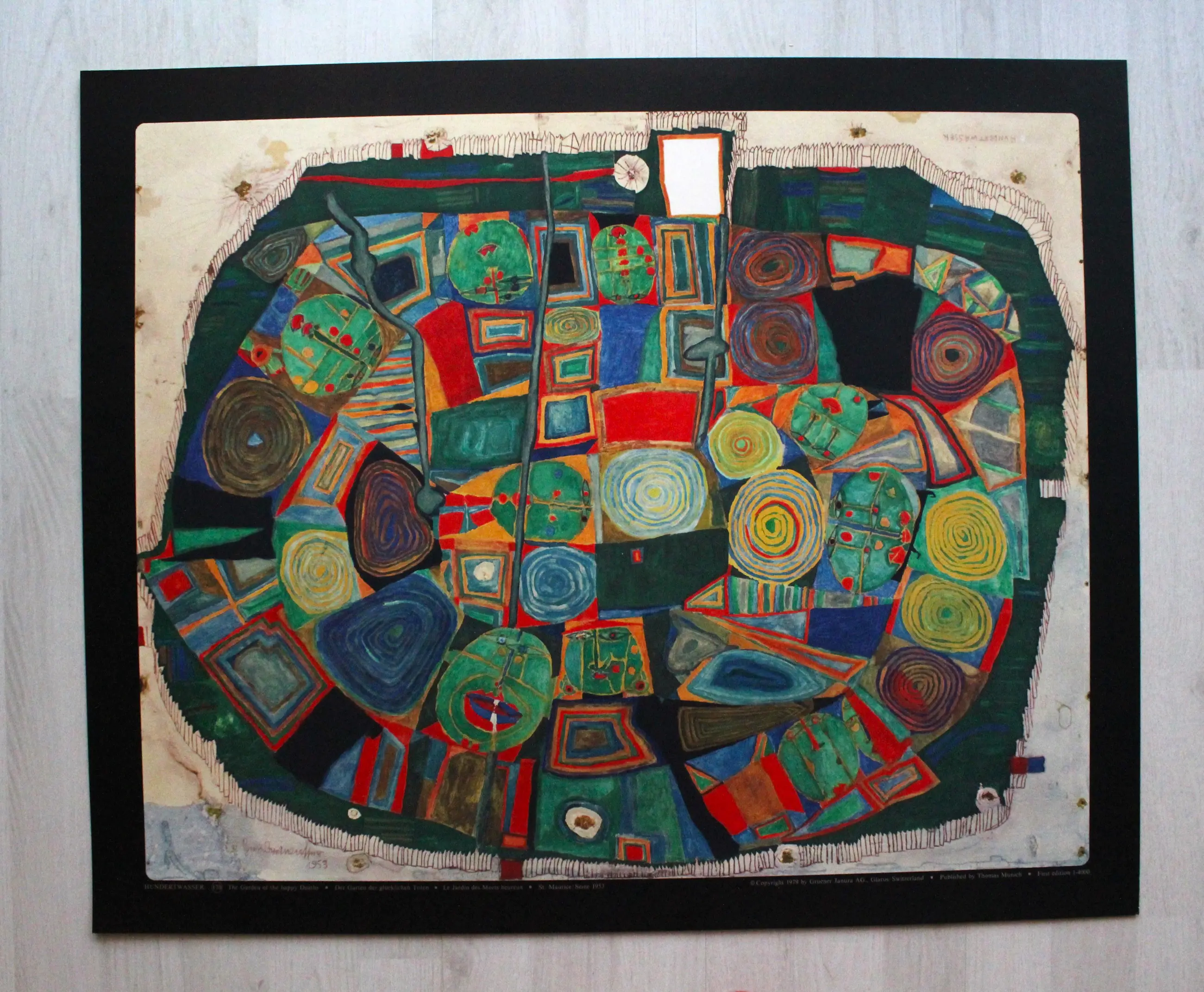 Friedensreich Hundertwasser - Lithografie "Tuin van de gelukkige doden" - (77 x 63 cm)