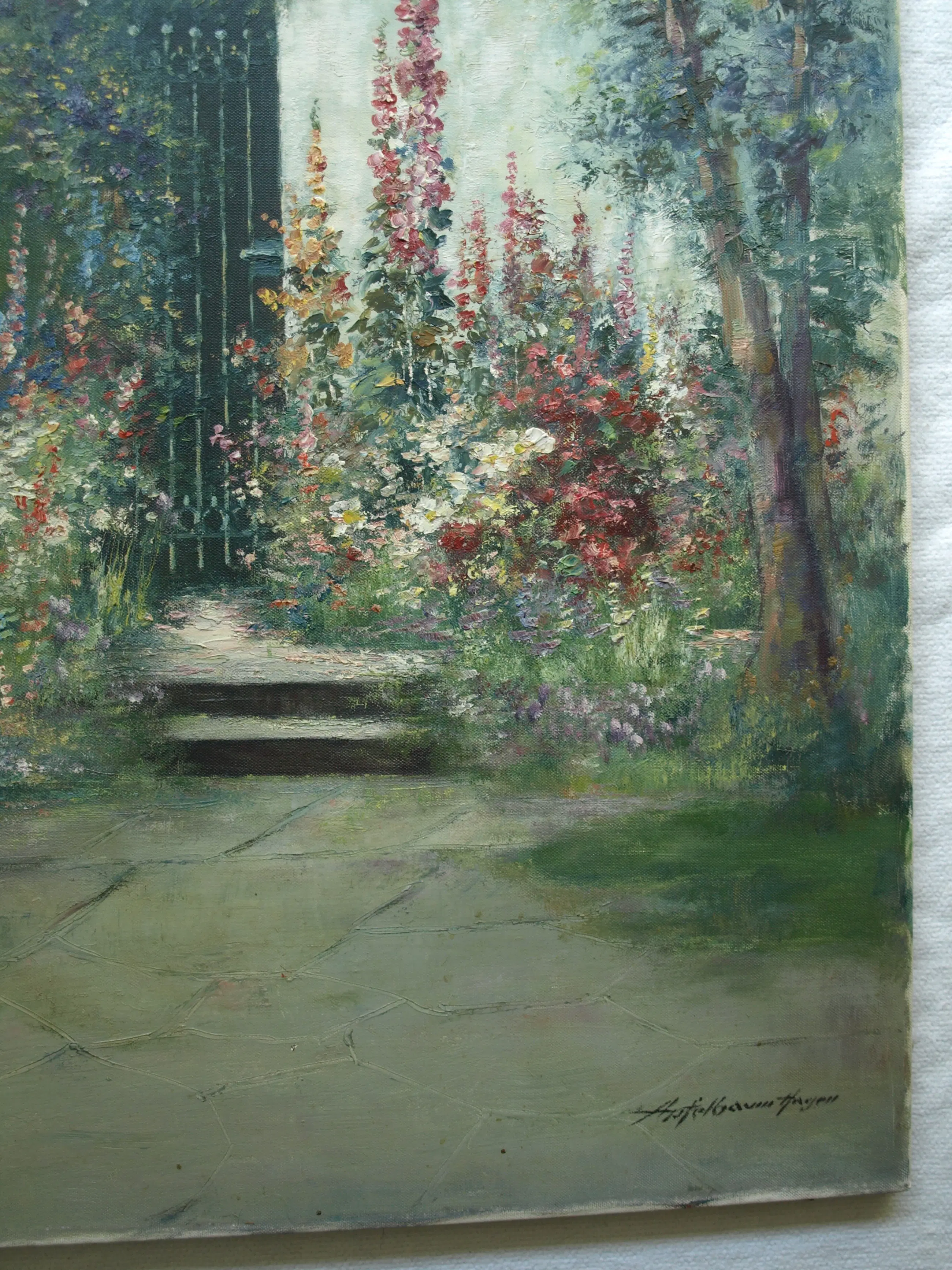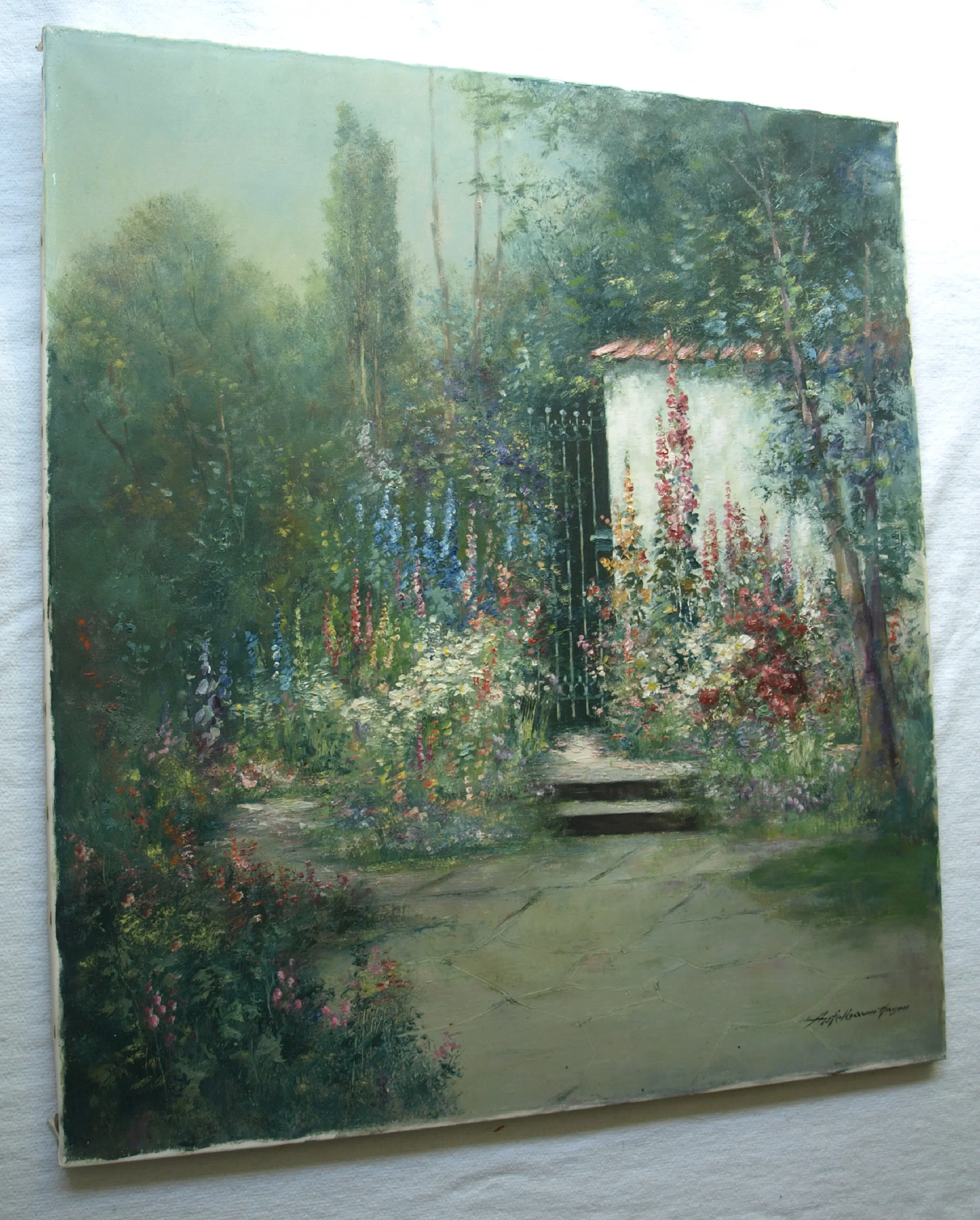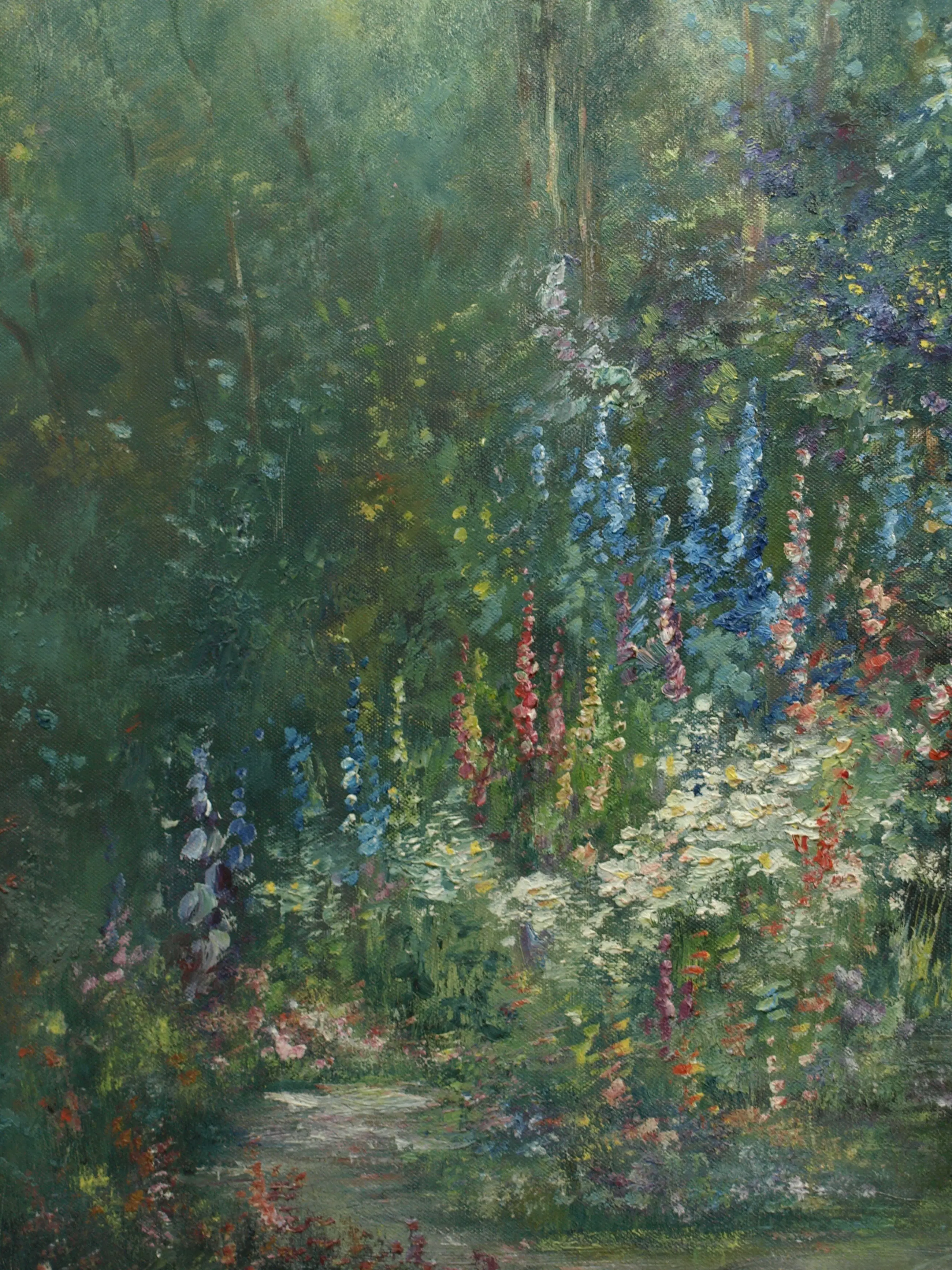 Friedrich Adolf Apfelbaum - Olieverf op doek , Romantische Tuin – 80 x 70 cm – ca. 1950