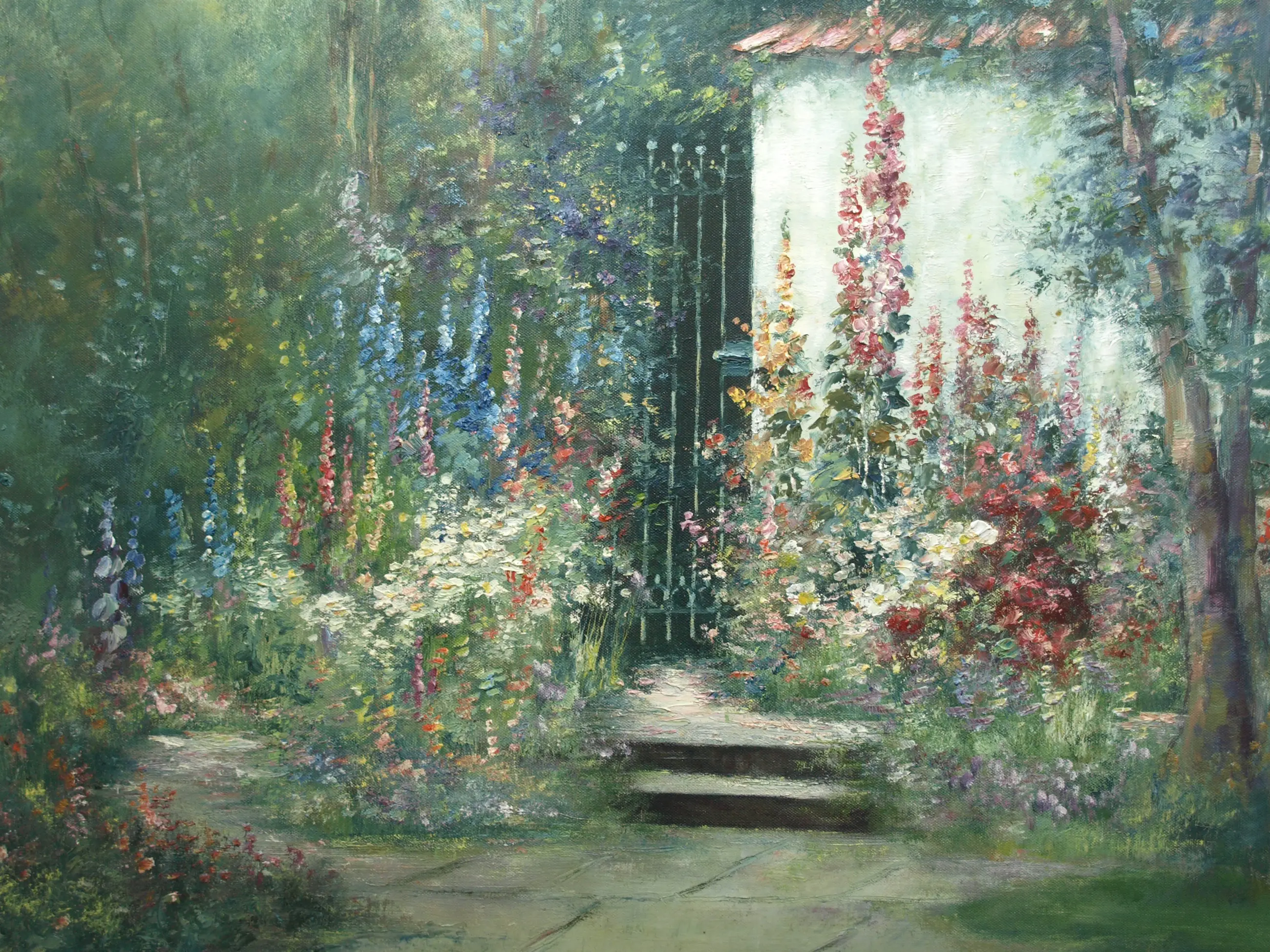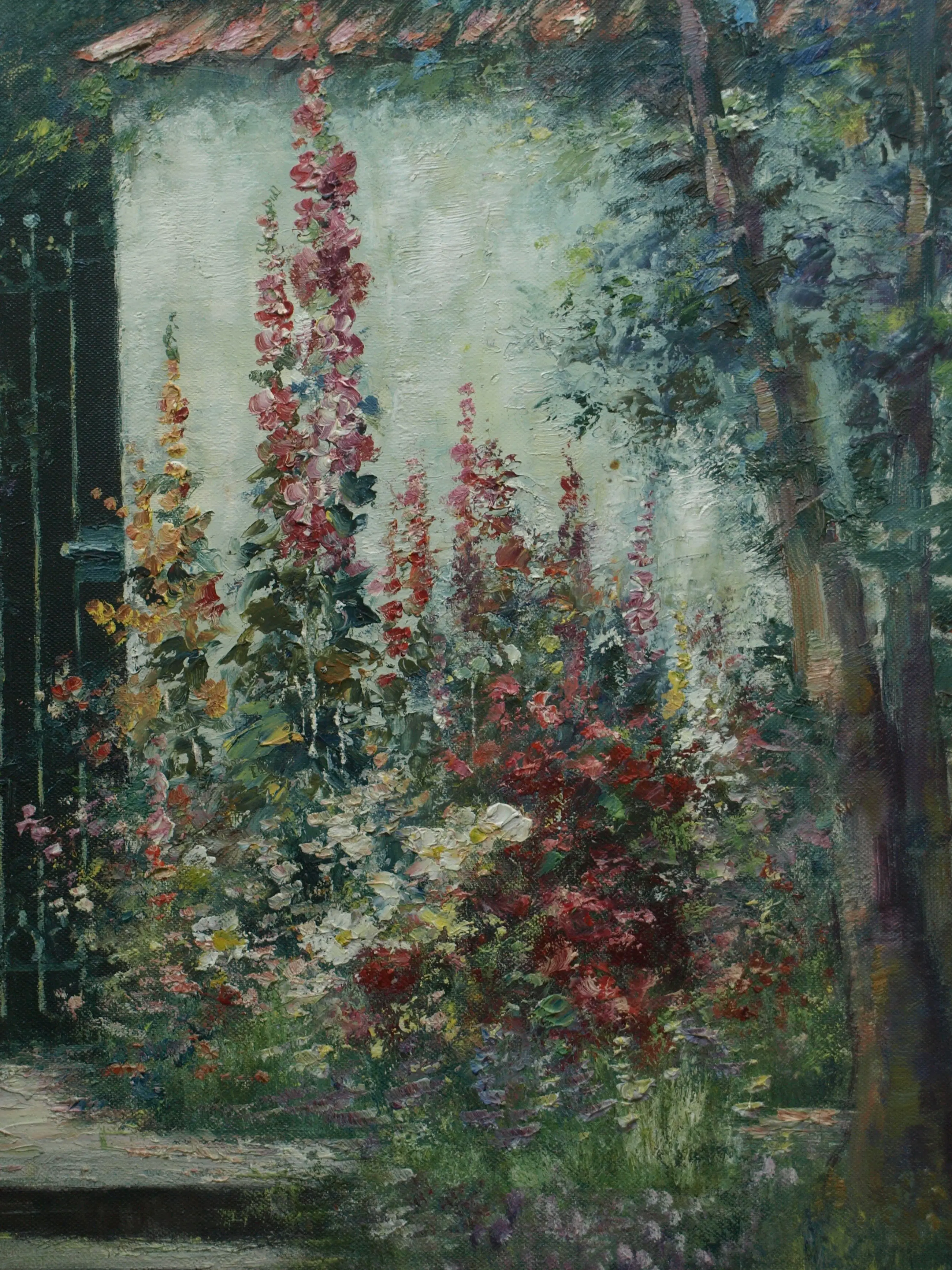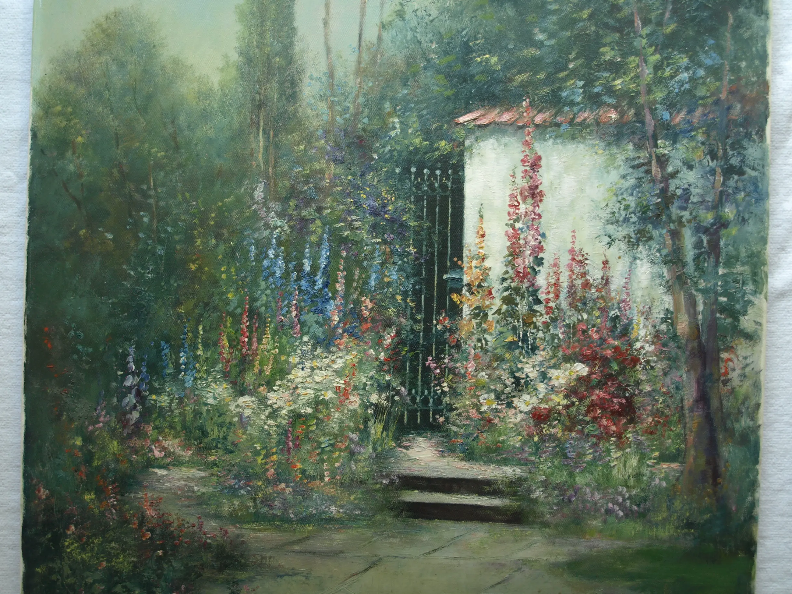 Friedrich Adolf Apfelbaum - Olieverf op doek , Romantische Tuin – 80 x 70 cm – ca. 1950