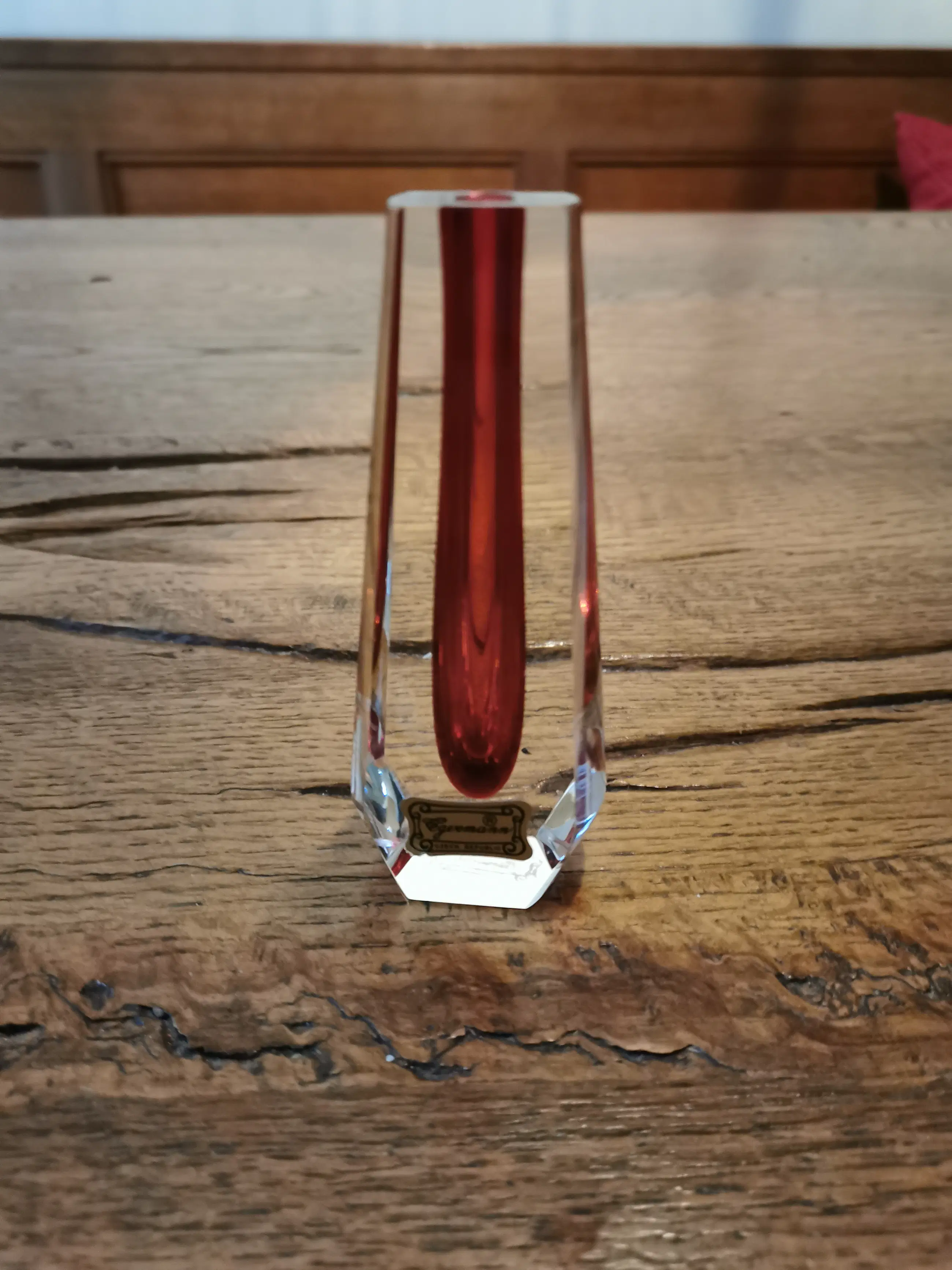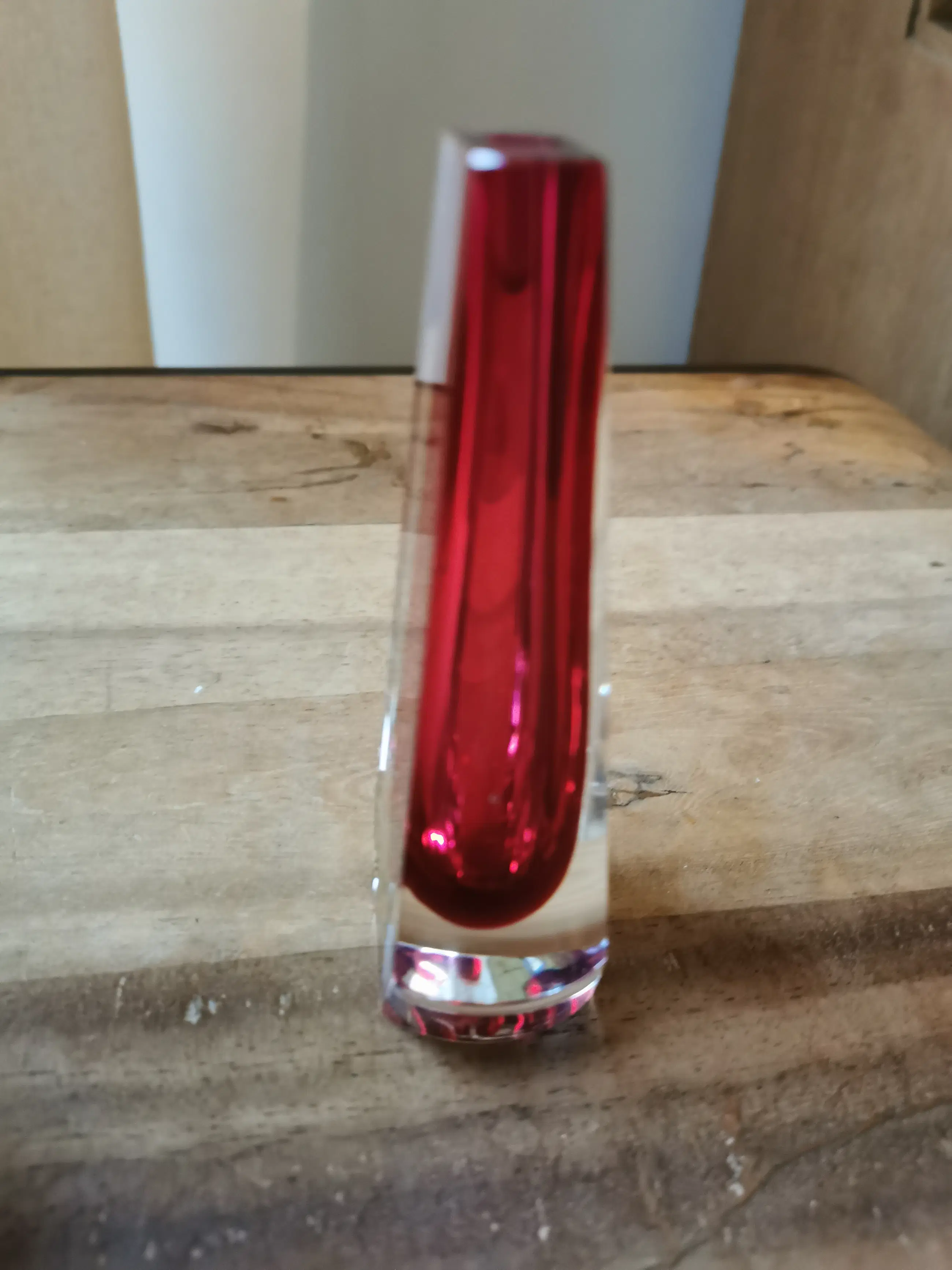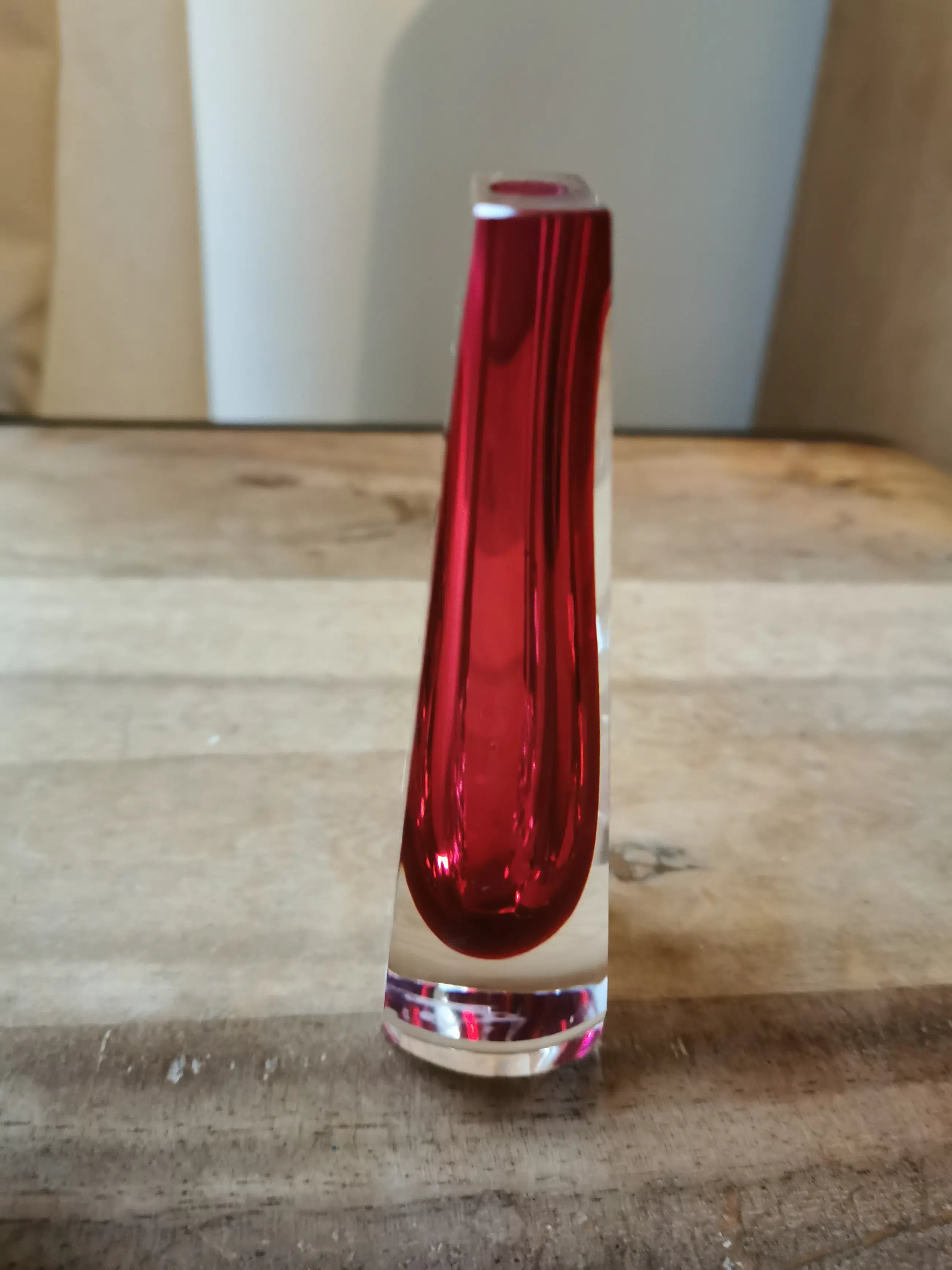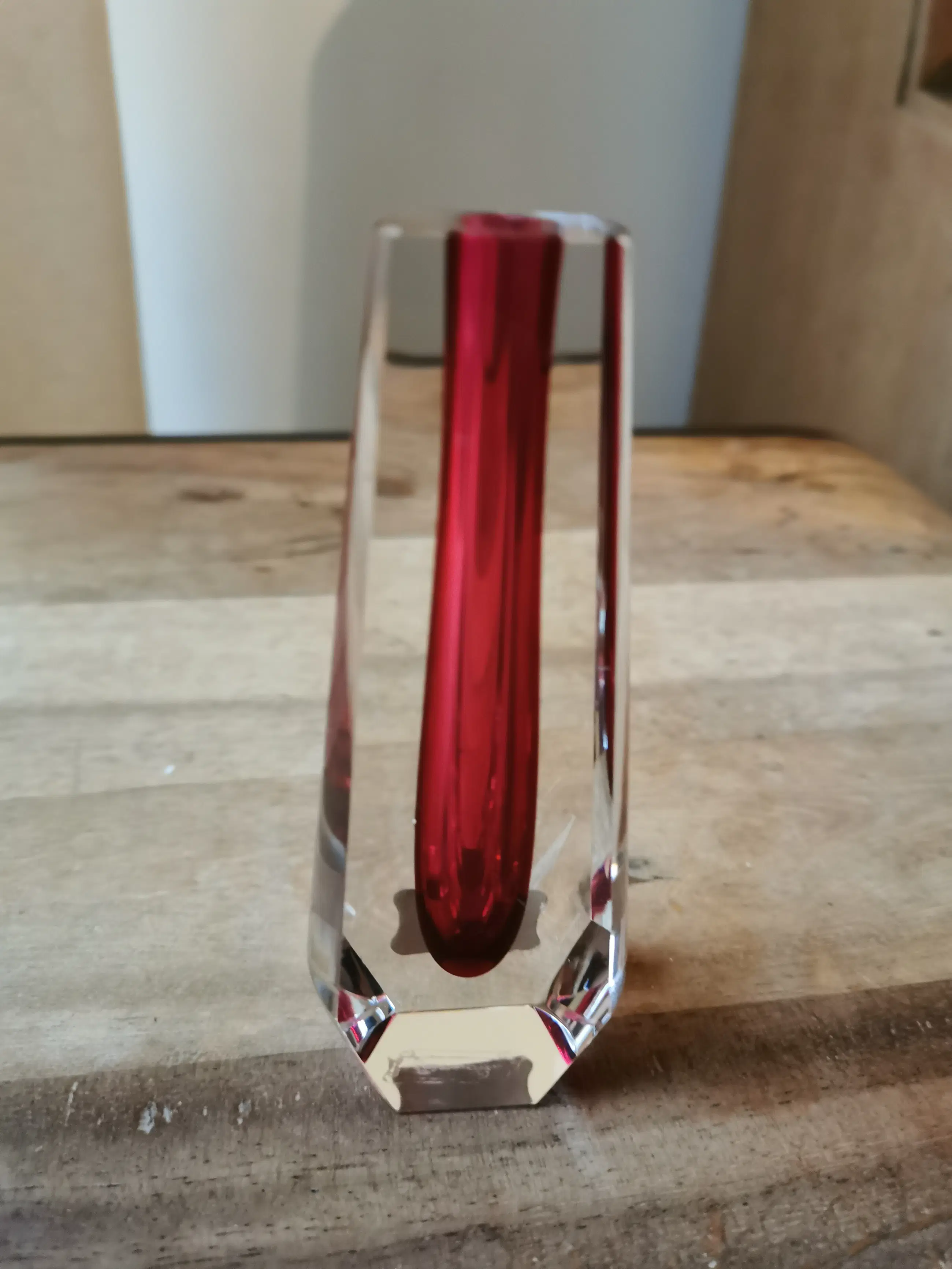 Designvaas gemaakt van dikwandig glas, met een gepolijste rand.