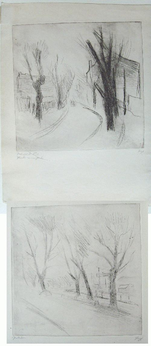 dazu: Allee, Original-Radierung, handsignierter Probedruck, Darstellung ca.198 x 198 mm