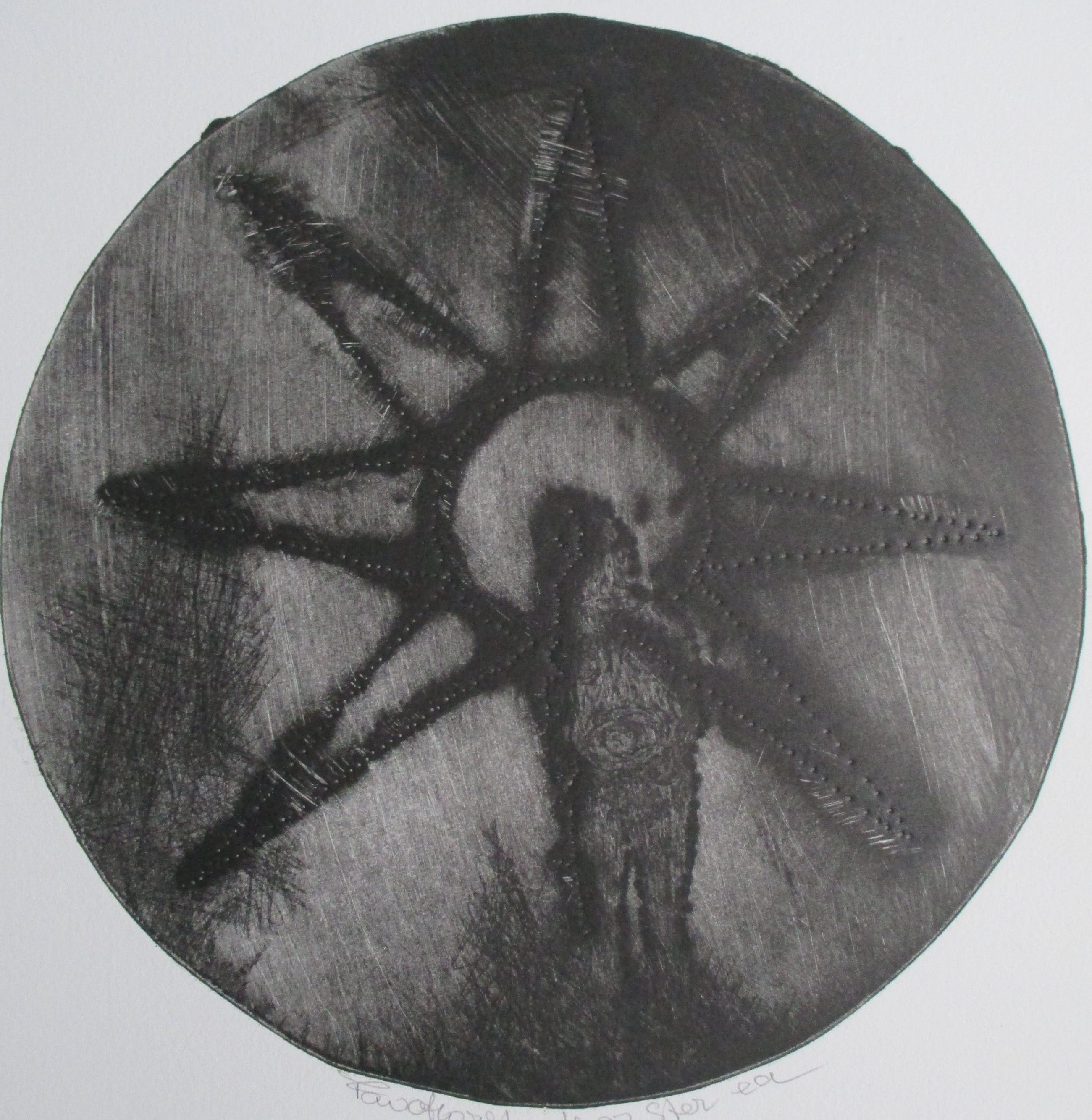 Ets van Frits van der Horst, gesigneerd, getiteld en gedateerd in potlood. Epreuve Artiste. Afm. beeld 30x30 cm. verzending tussen twee platen, 8 euro, aangetekend 9,65