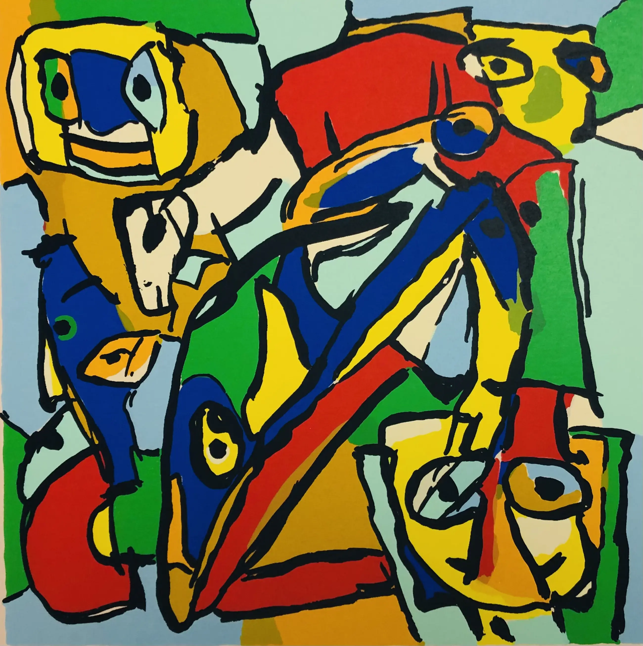 Mooi kleurrijke zeefruk van Frits Droog, zo goed als nieuw! let op uiteindelijke zeefdruk is ca 20 x 20 cm, papiermaat groter. Gesigneerd en genummerd. U kunt het werk vooraf komen beoordelen. Na aankoop kunt u uw werk laten opslaan in onze verwarmde depot. Ook kunnen wij uw inlijsting verzorgen.