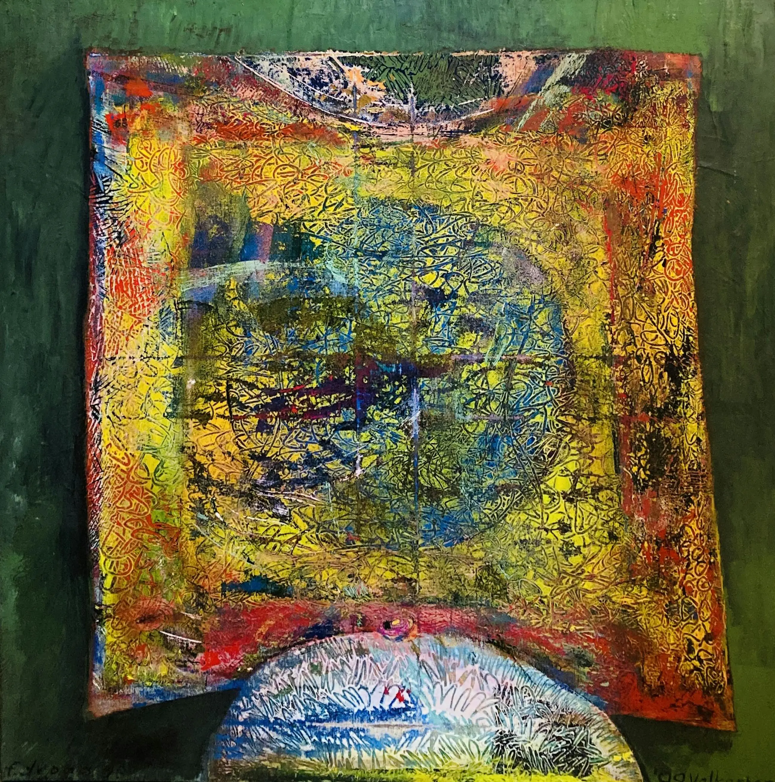 Een gaaf origineel kunstwerk van de kunstenaars Frits Droog en M.A. Valkenberg. Het werk verkeert in uitstekende conditie en is handgesigneerd door de kunstenaars. Het doek is gemaakt in 1999 door bovenstaande kunstenaars en is ingelijst in een baklijst.