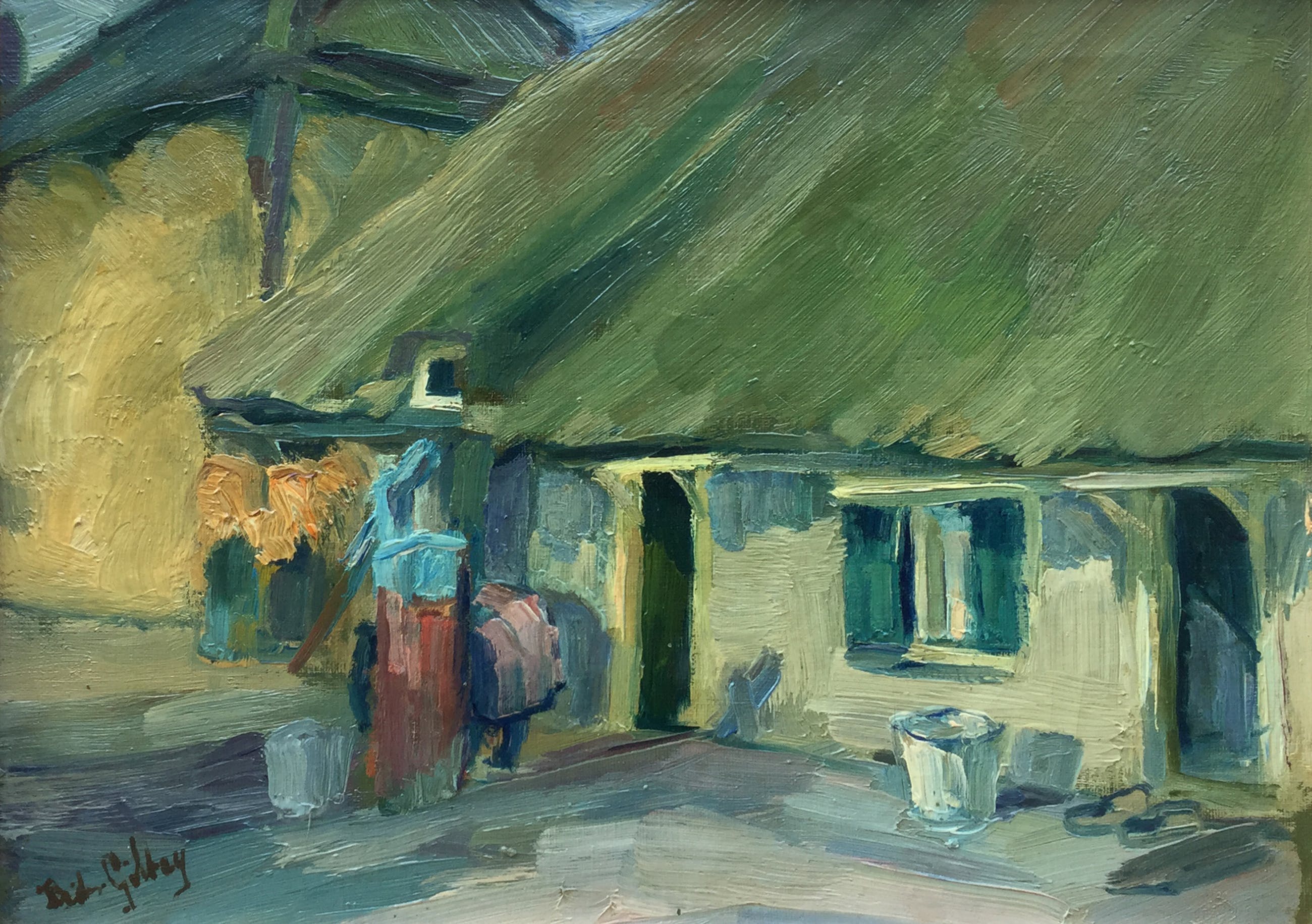 Frits Giltay, boerenerf olie op doek, l.o. gesigneerd doekmaat 30,5x40,5 cm