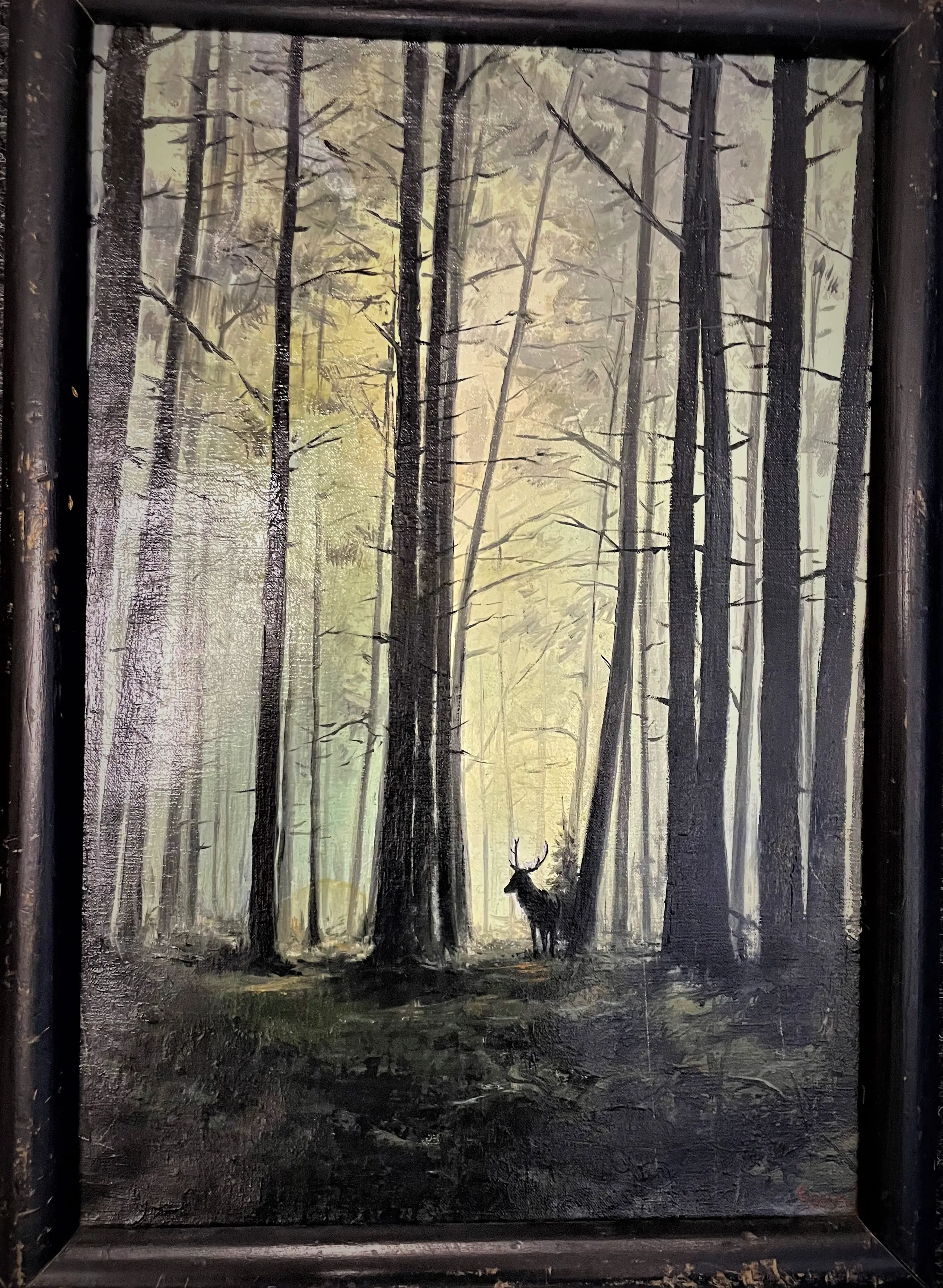Lijst beschadigd. Schilderij gaaf. Wellicht wat vervuild.
