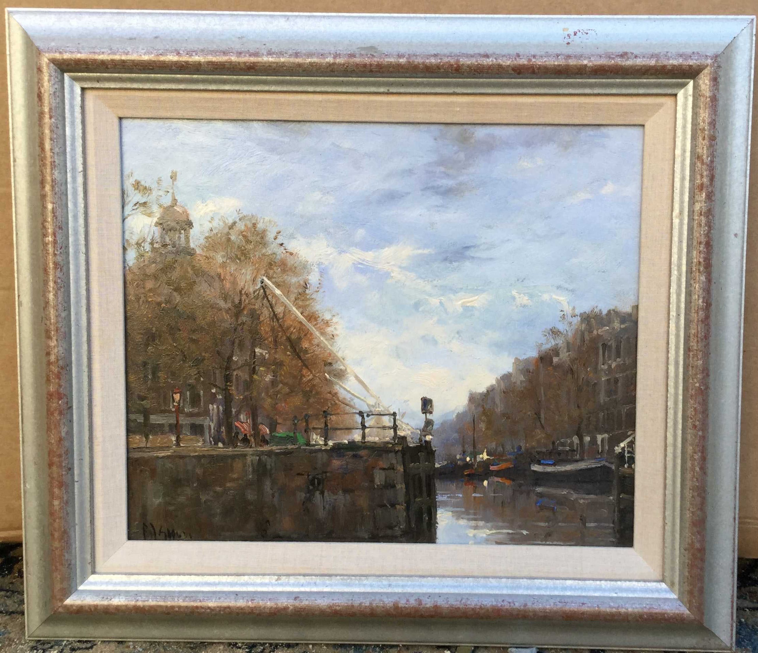 Frits J. Goosen, Singel te Amsterdam, olie op doek, beeldmaat; 25 x 30 cm, lijstmaat: 35 x 40 cm.