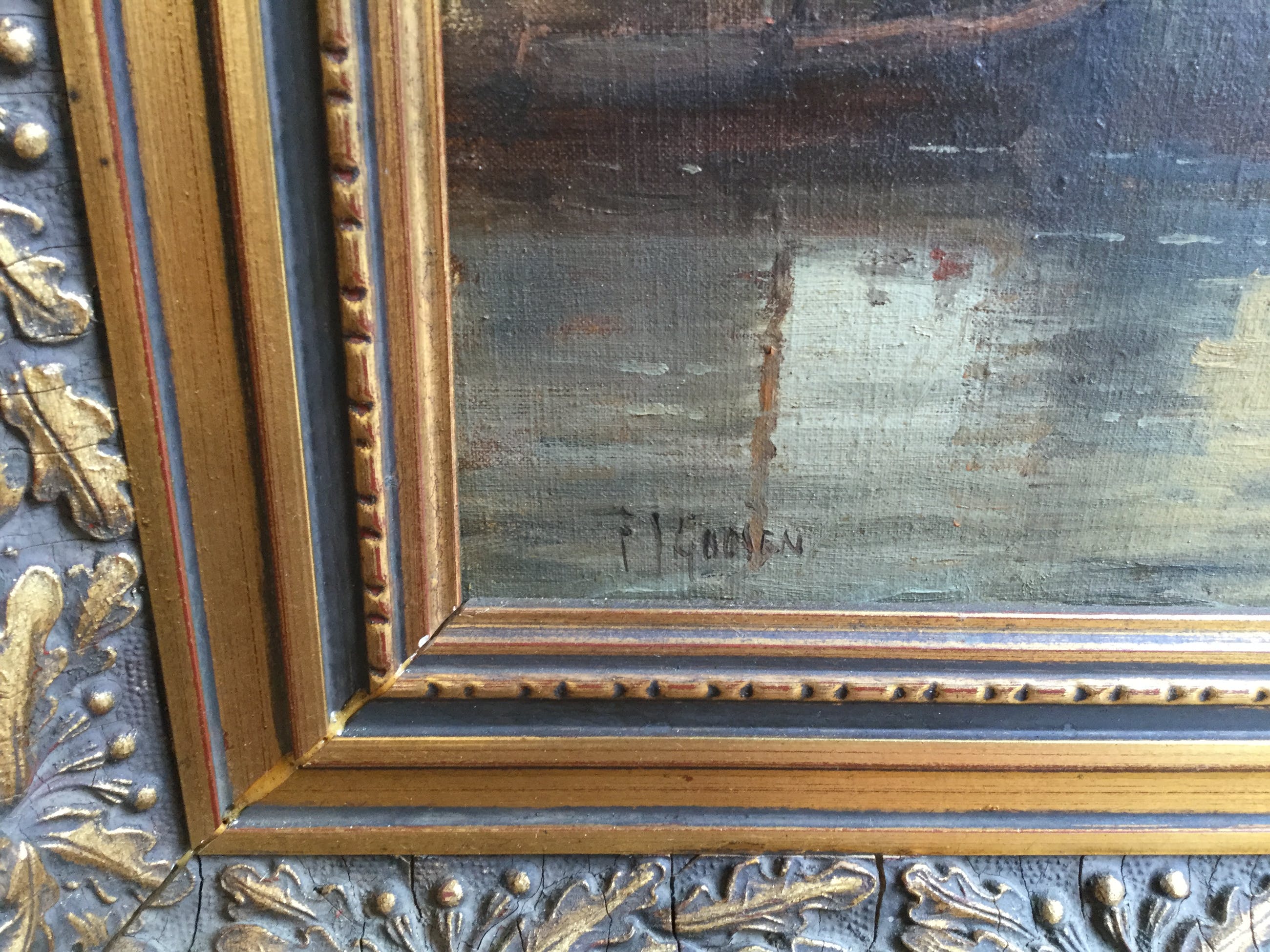 | Doek bevat oppervlaktevuil en verkleurde vernis door de tijd, de lijst bevat oppervlaktevuil en slijtschade door de tijd, ornamentschade. | |