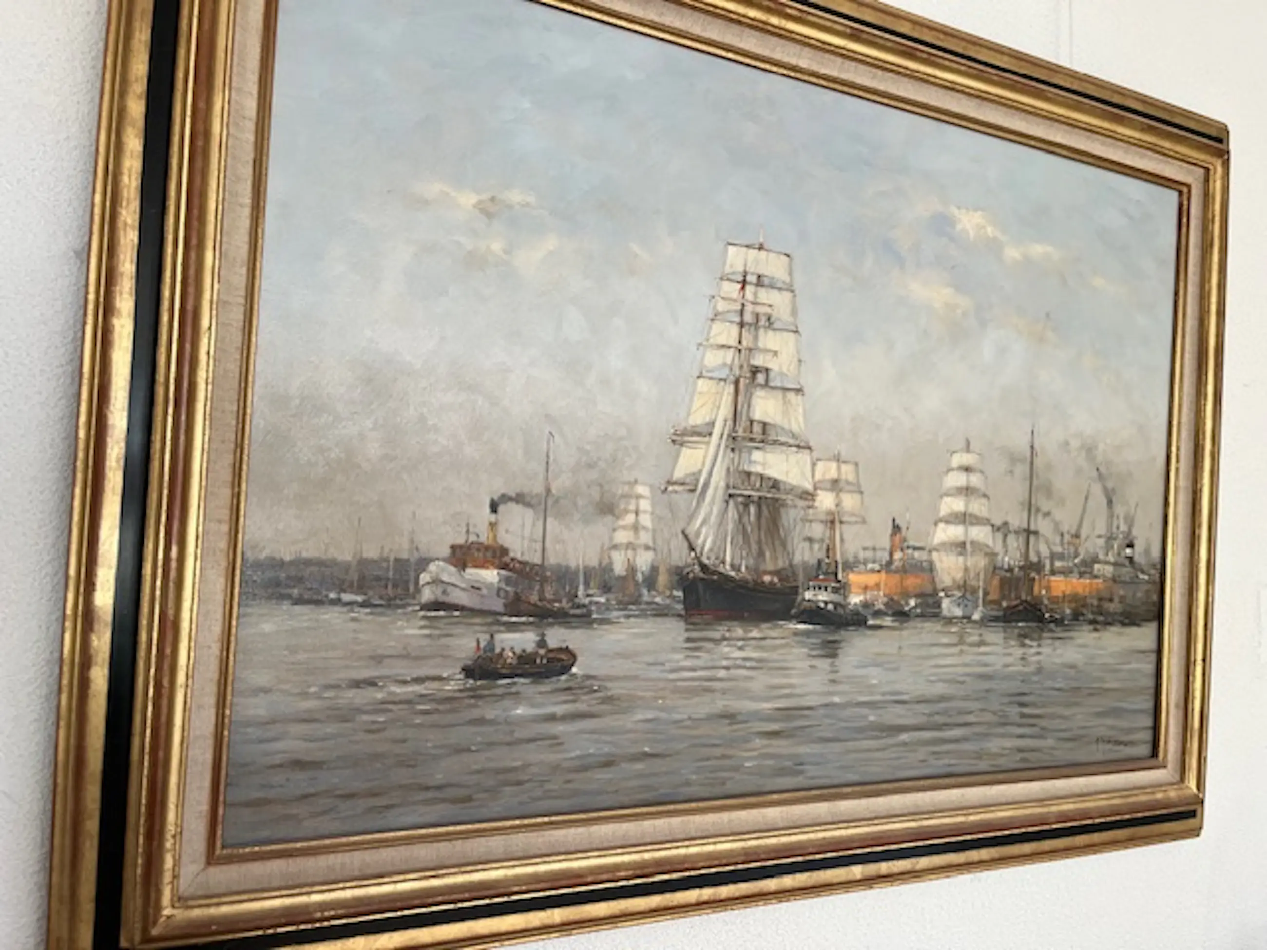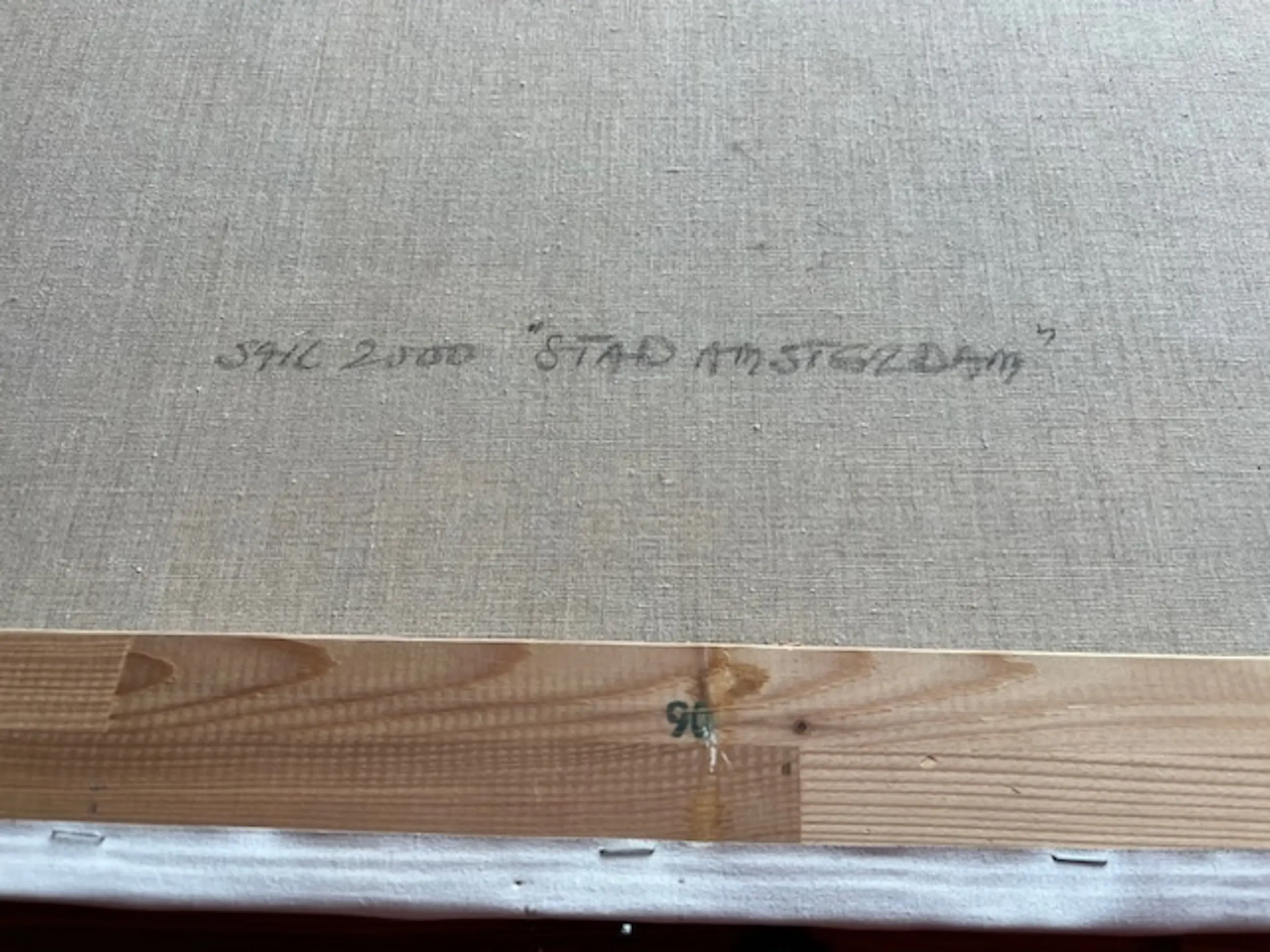 Mooi divers beeld van Sail 2000 in Amsterdam met diverse schepen, boten en tallships op het water. Er is veel te zien op het schilderij. Het schilderij is direct afkomstig van de kunstenaar Frits J. Goosen met originele lijst. Het doek en de lijst zijn in prima conditie.