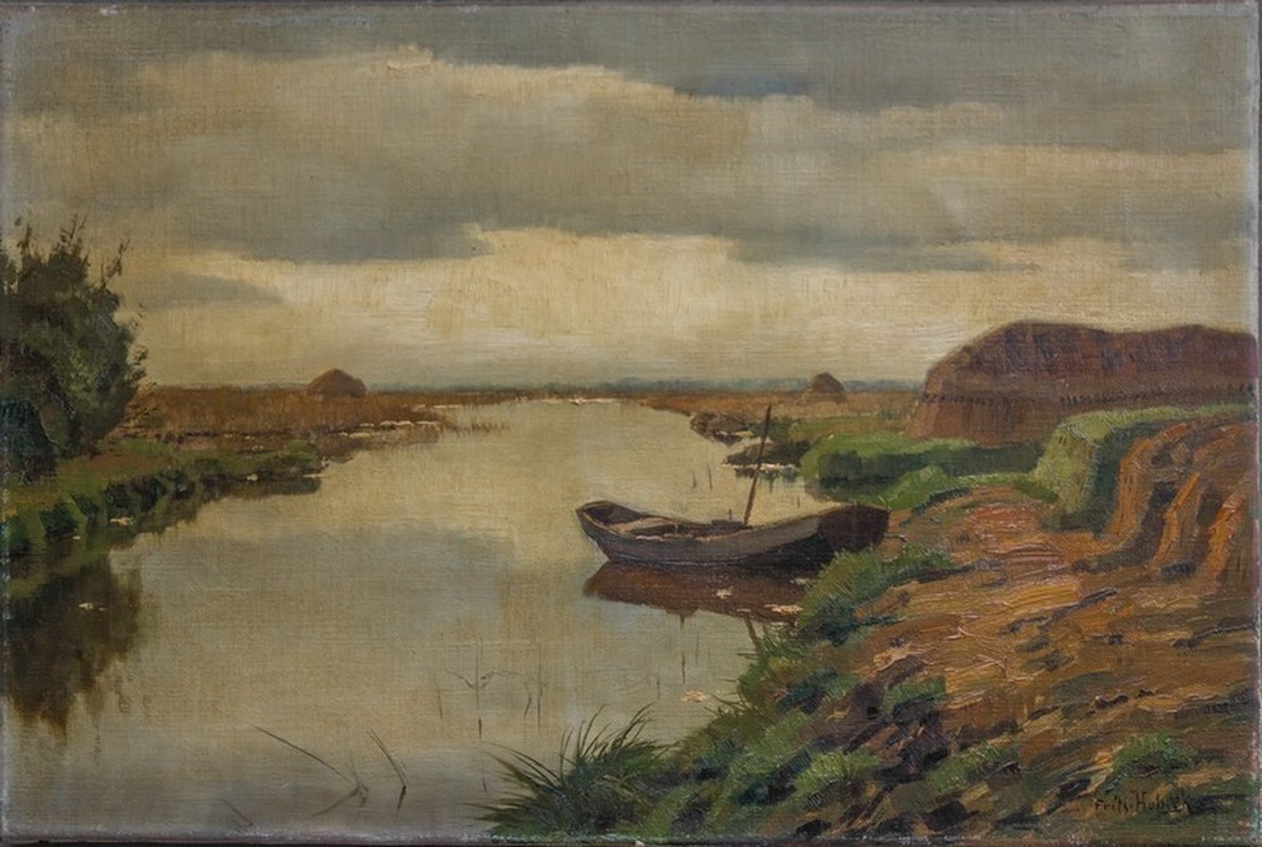 Olieverfschilderij van, zoals hij werd genoemd, de kleine meester Frits Hubeek.