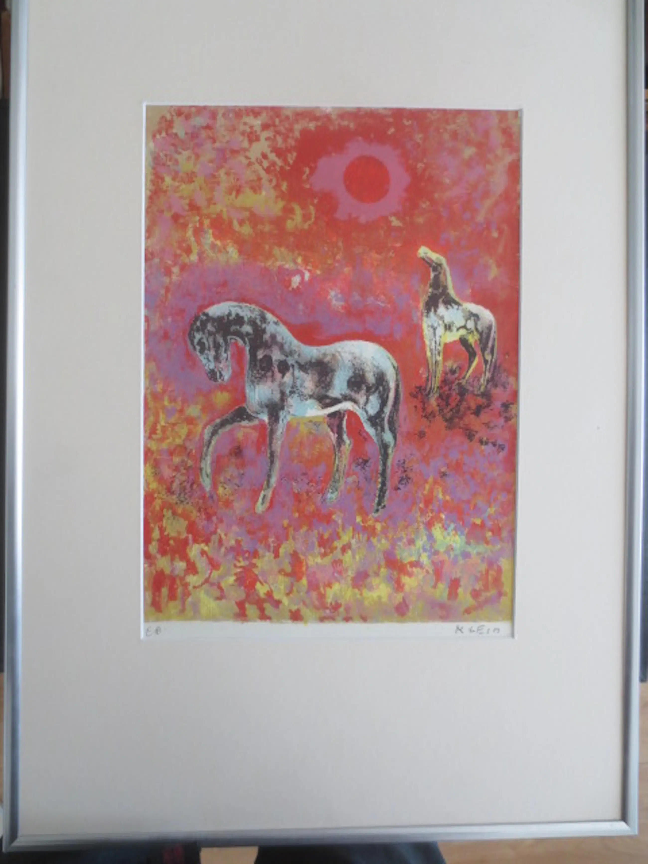 Frits Klein (1898-1990) Zeefdruk Circuspaarden Epreuve d' artiste Gesigneerd Rechtsonder