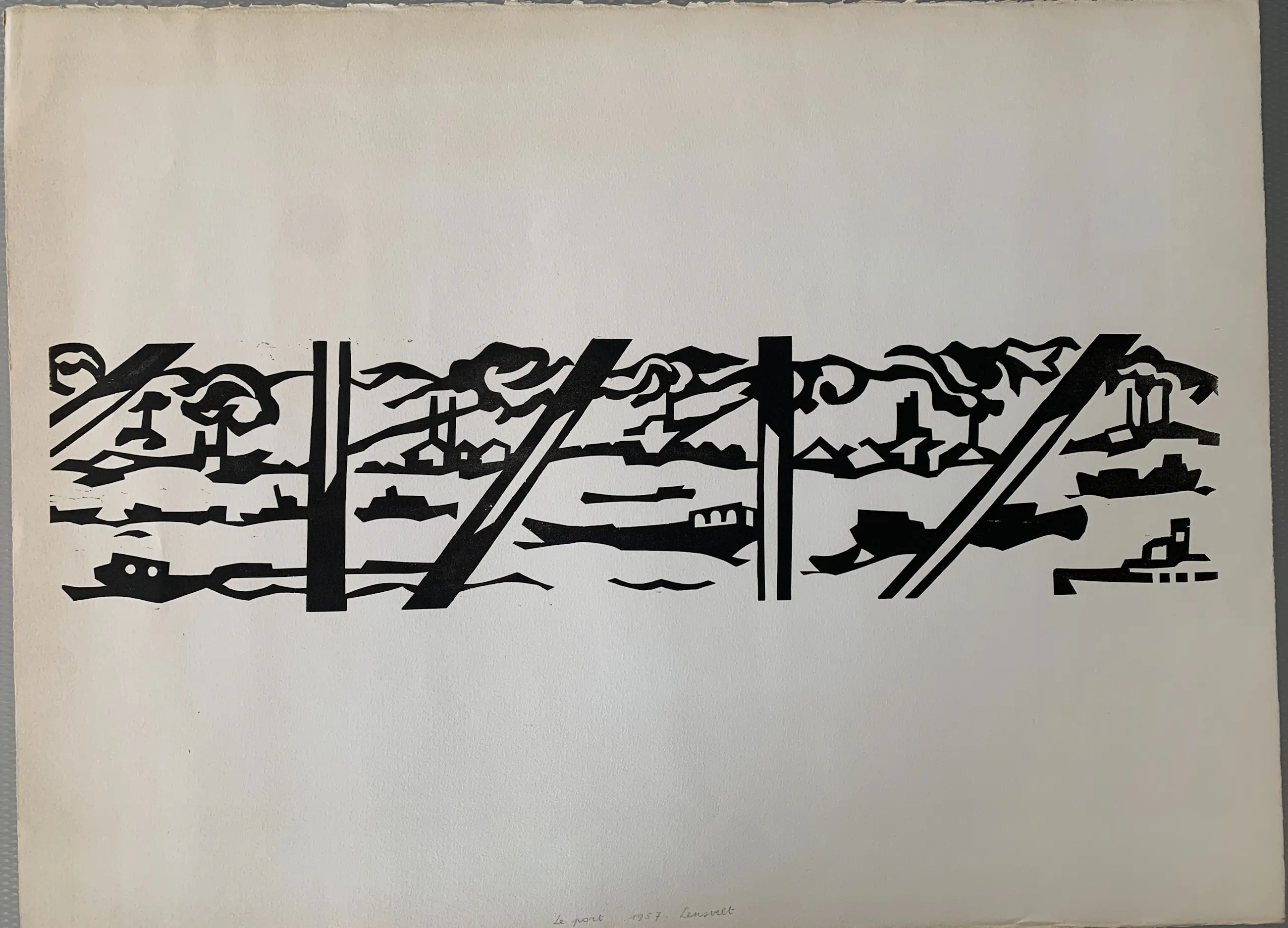 Le Port Linosnede Gesigneerd, getiteld en gedateerd in potlood Afmetingen blad: 57 x 76cm, afbeelding: 17 x 72cm