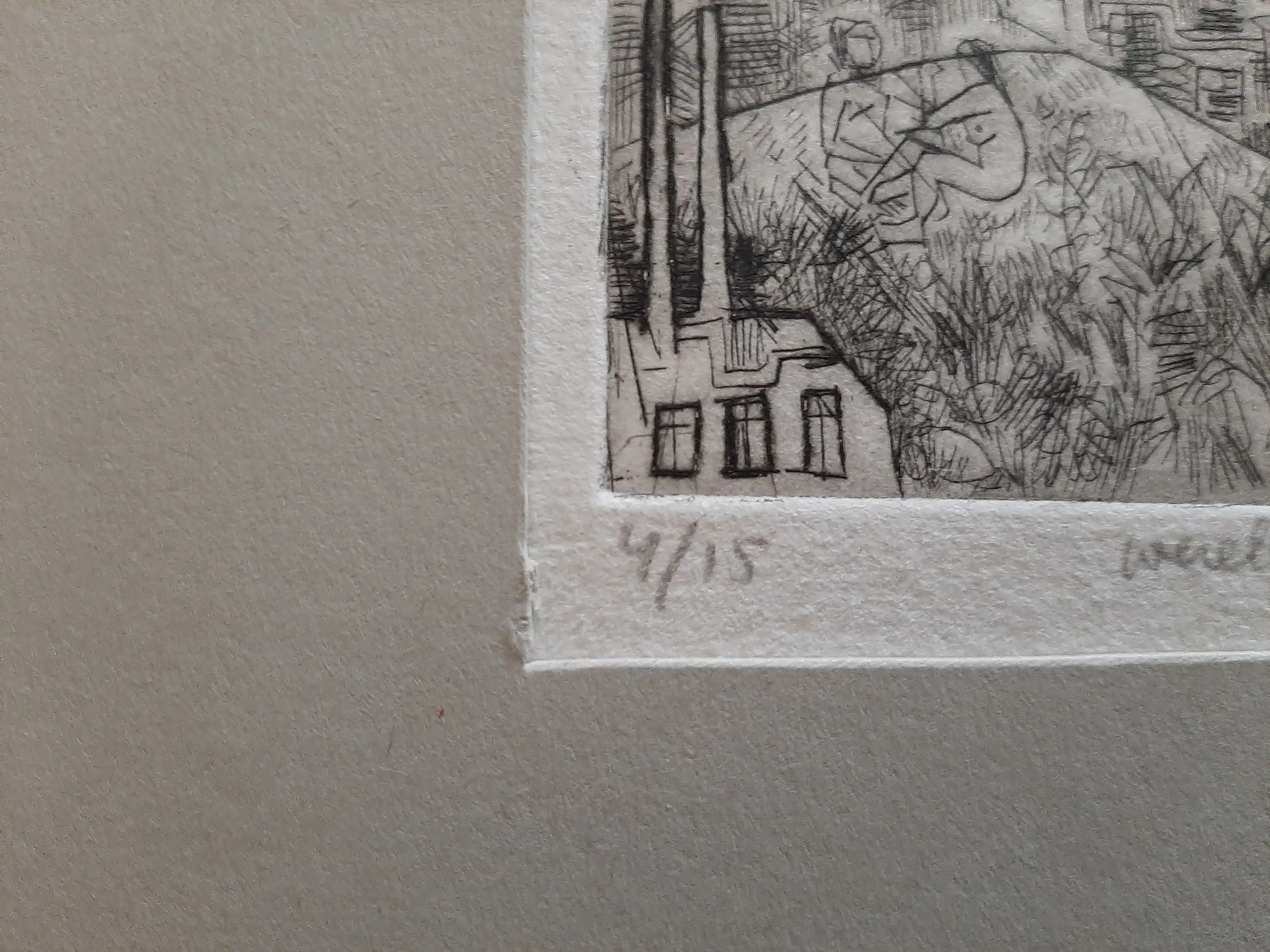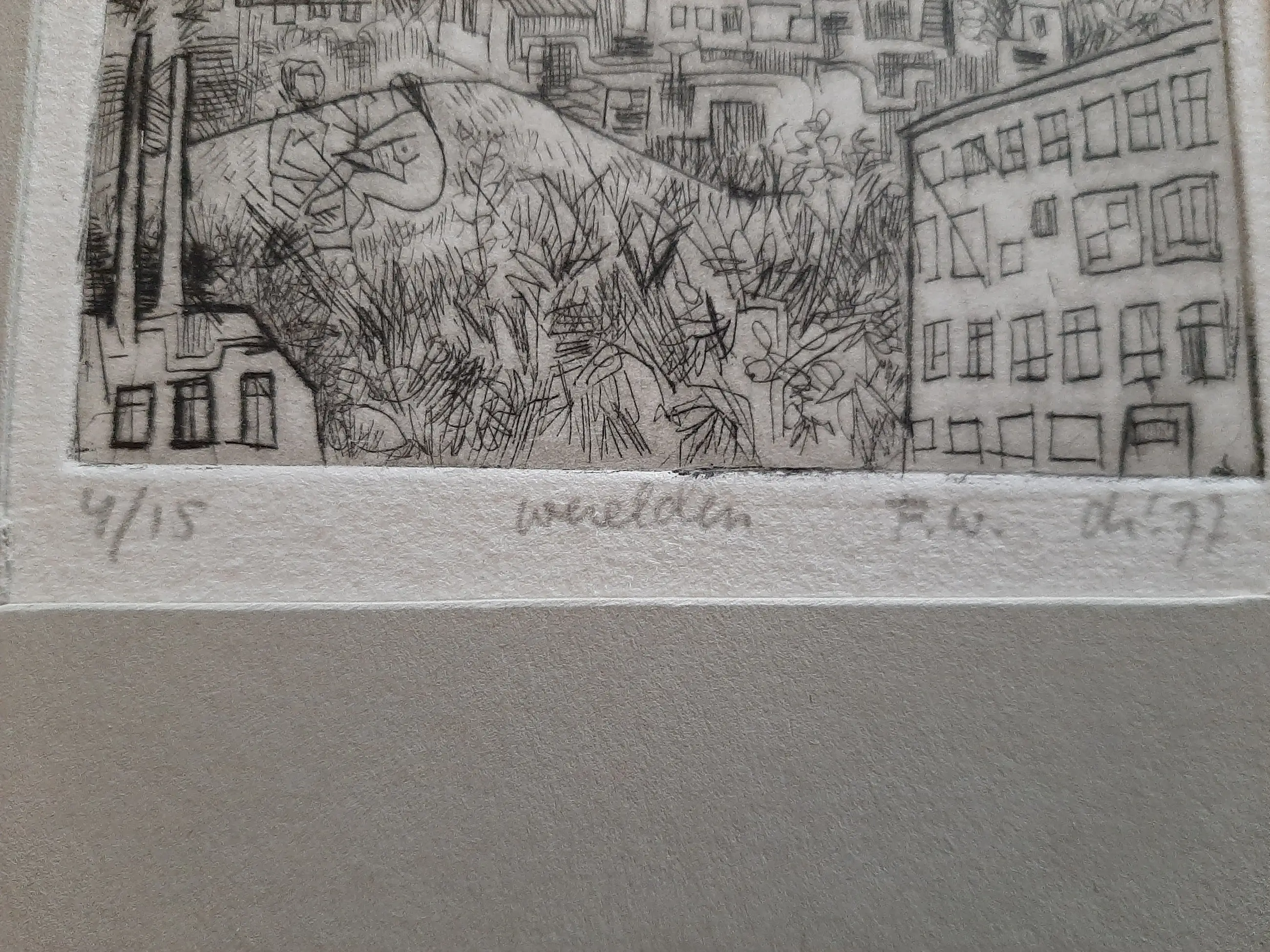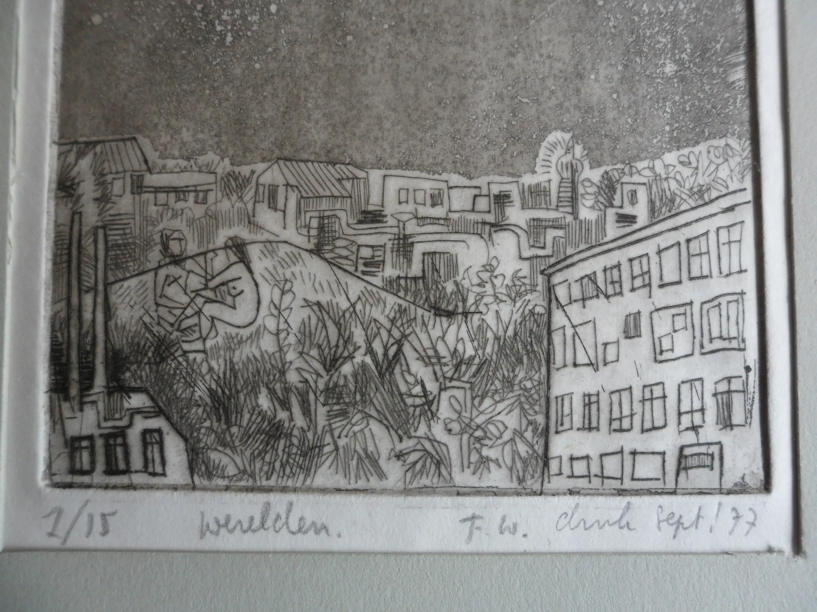 De ets is in potlood gemonogrammeerd 'FW': Frits Lindeman (1945)