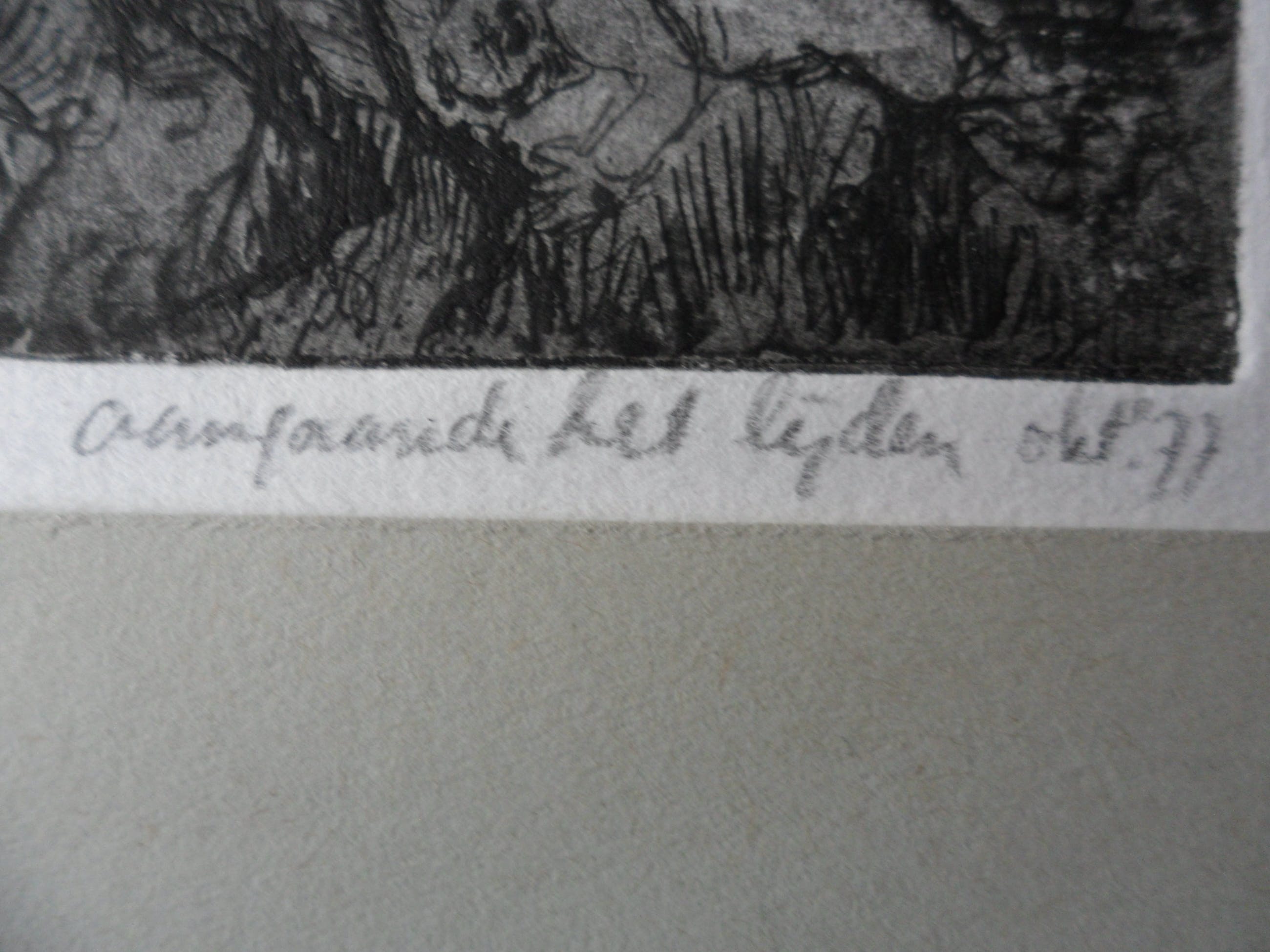 De ets is in potlood gemonogrammeerd 'FW': Frits Lindeman (1945)