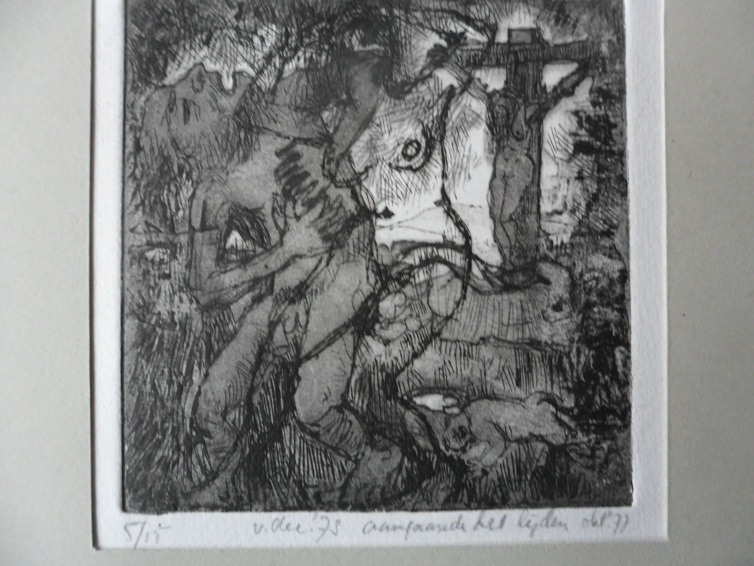 De ets is in potlood gemonogrammeerd 'FW': Frits Lindeman (1945)