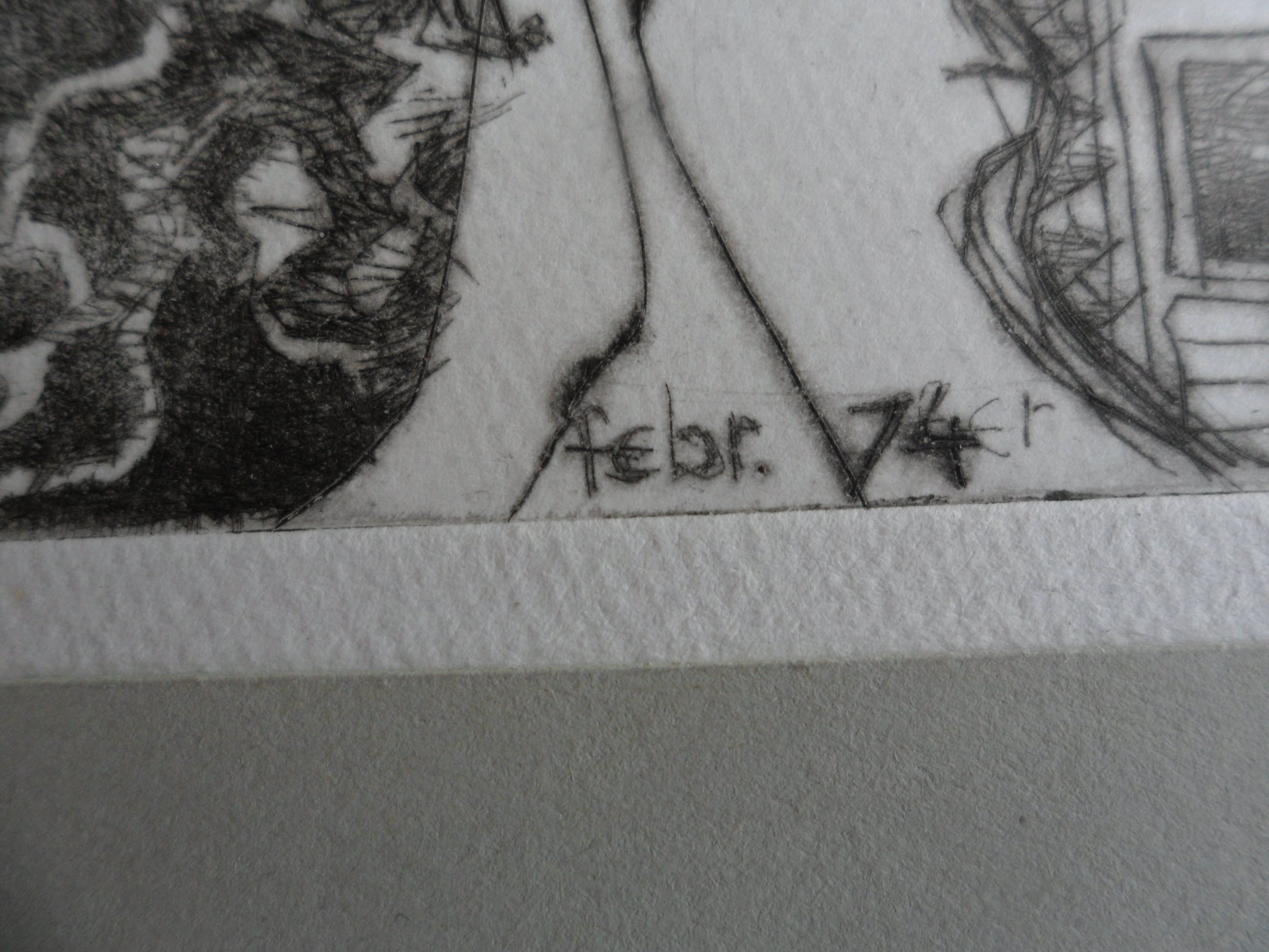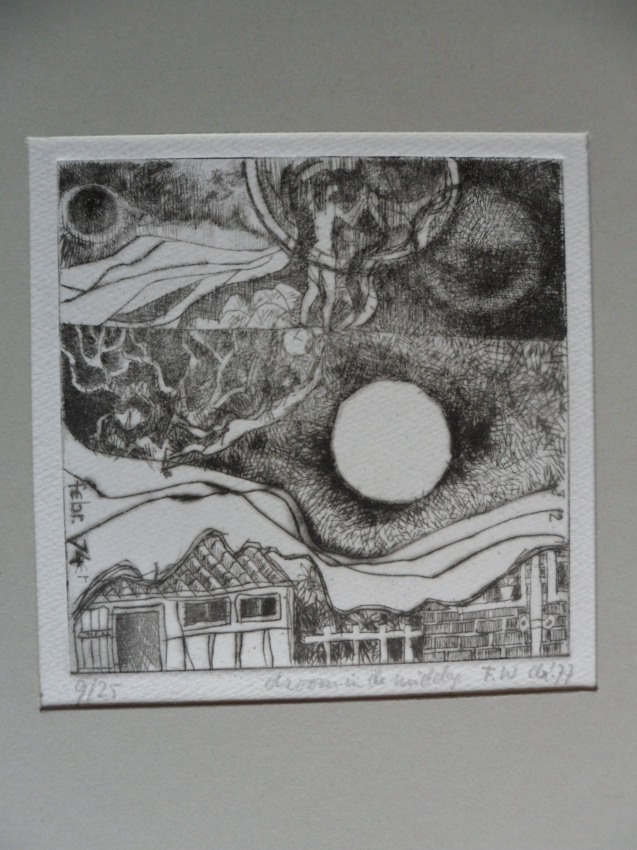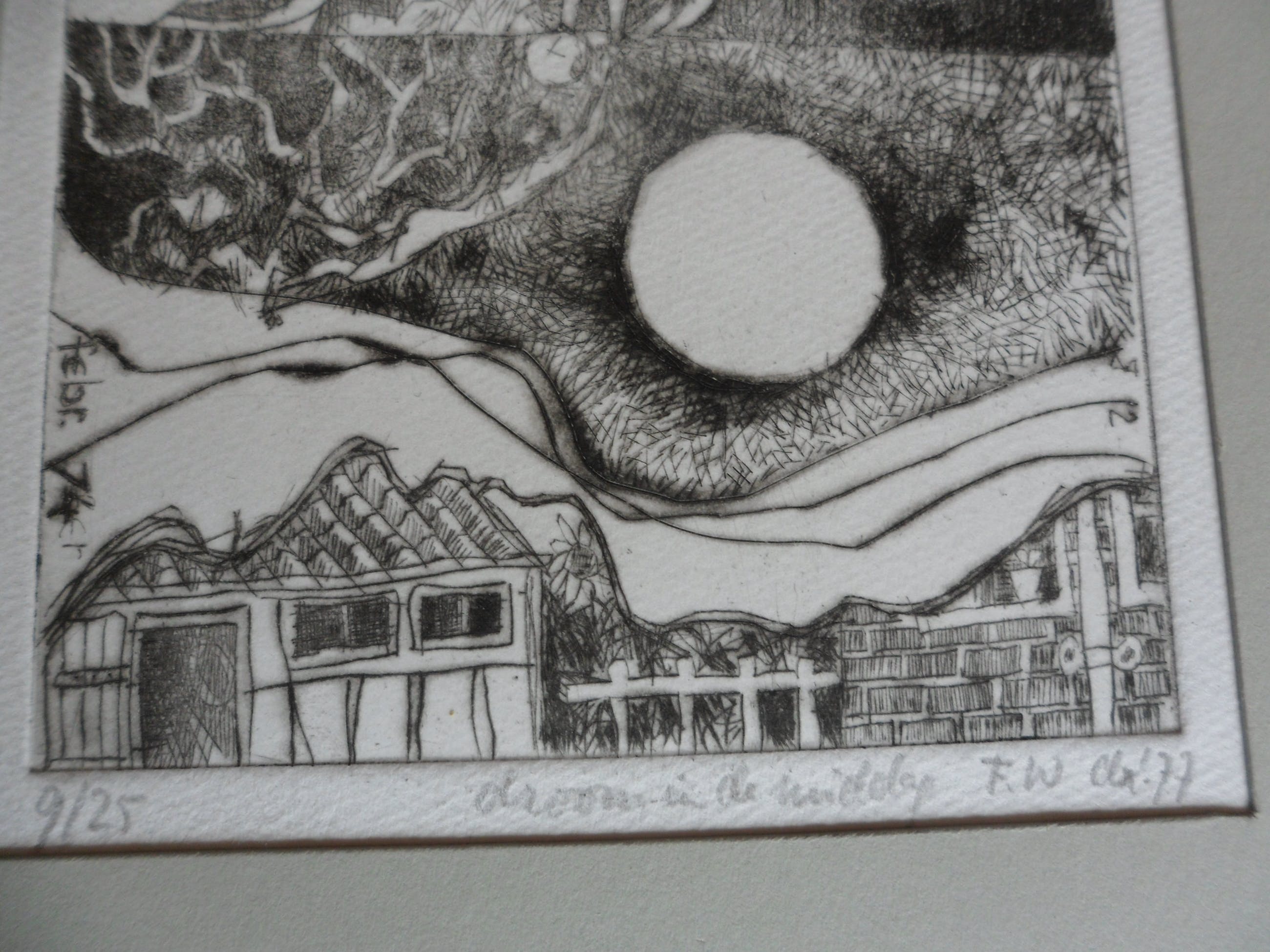 De ets is in potlood gemonogrammeerd 'FW': Frits Lindeman (1945)