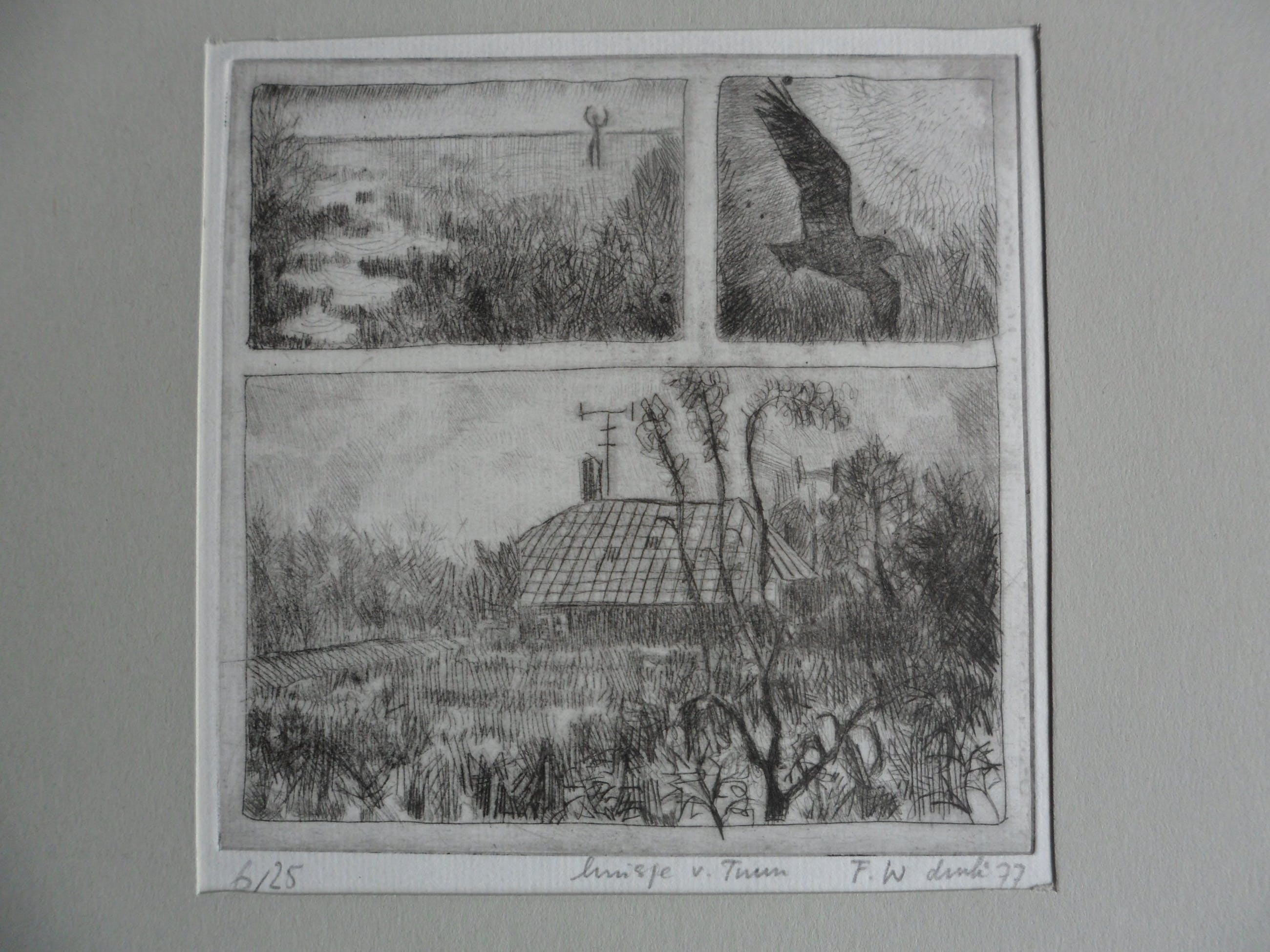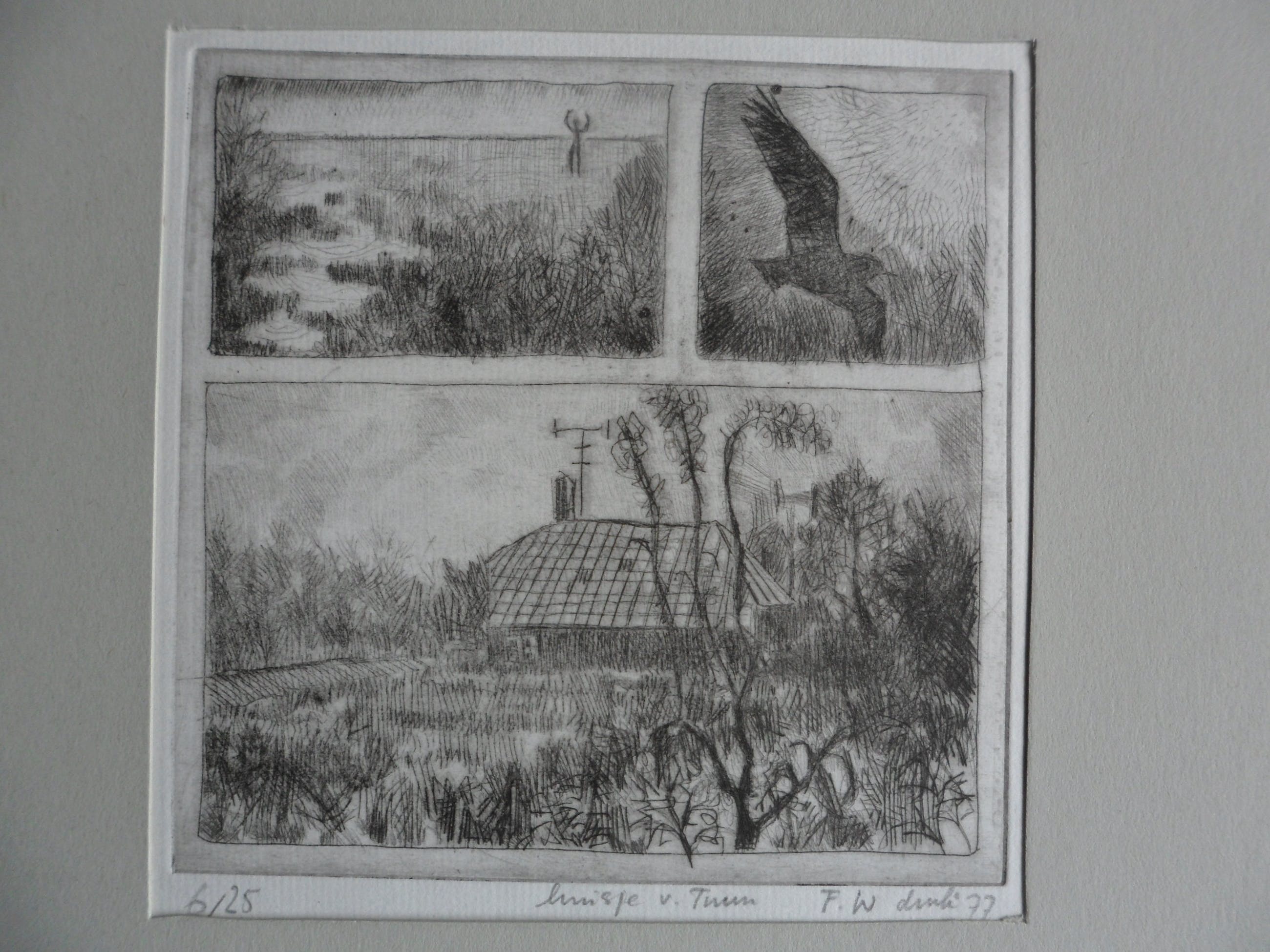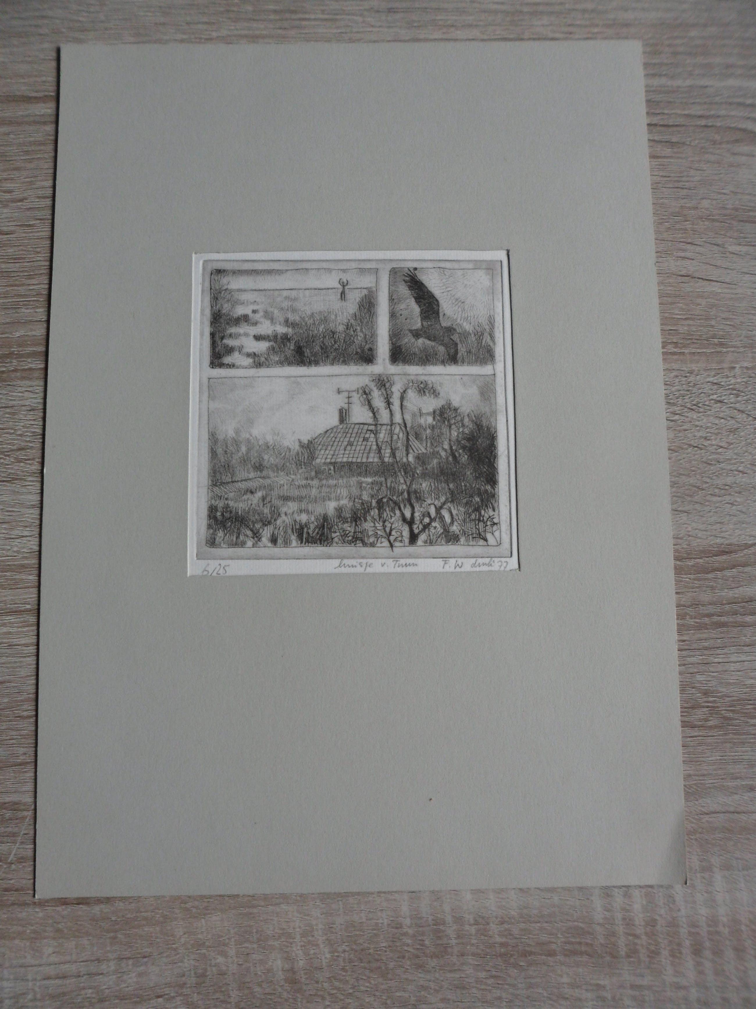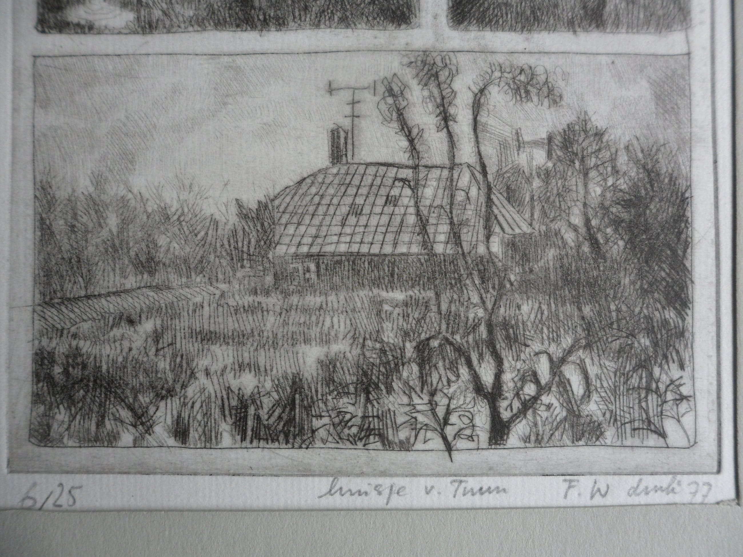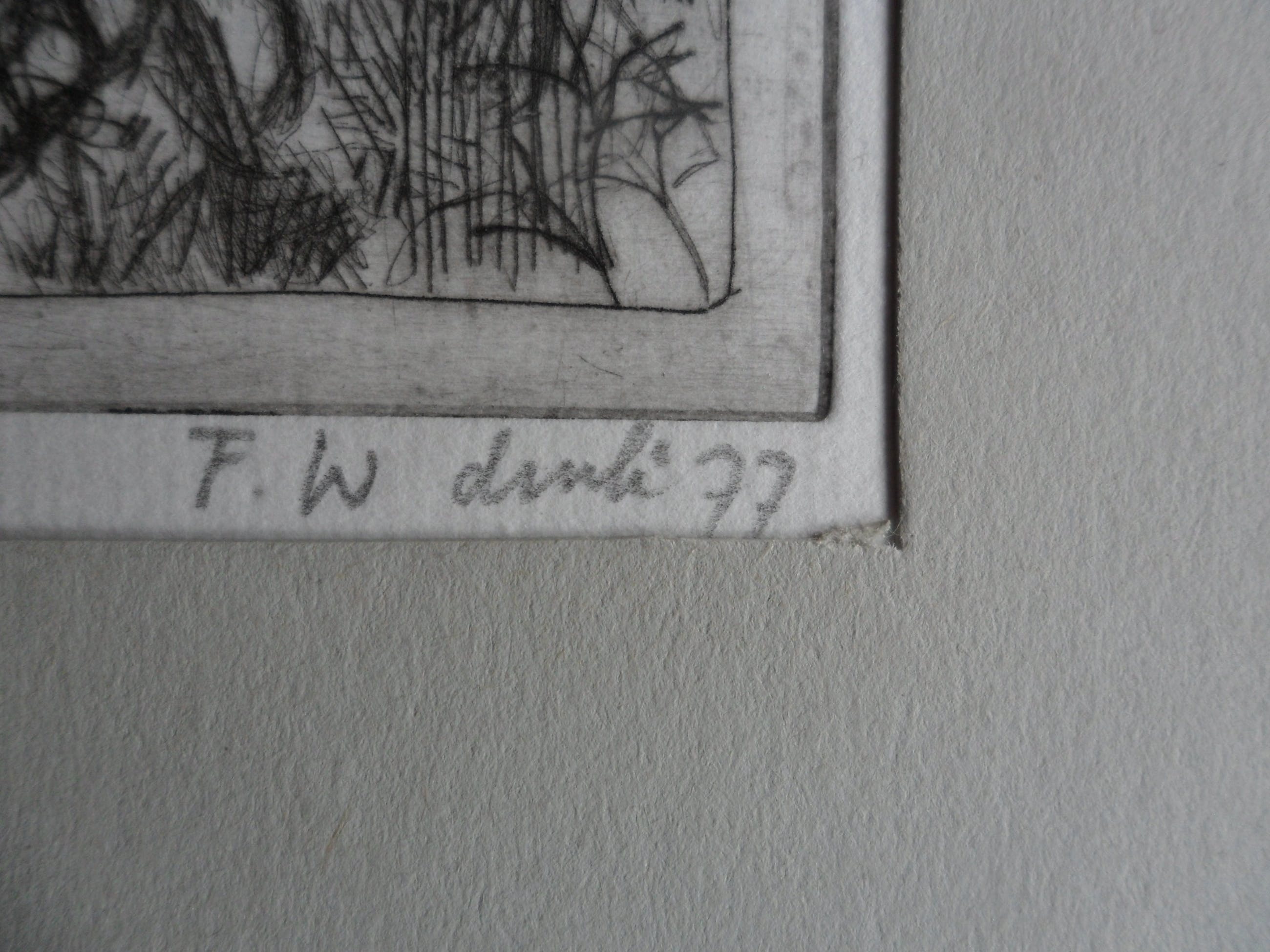 De ets is in potlood gemonogrammeerd 'FW': Frits Lindeman (1945)