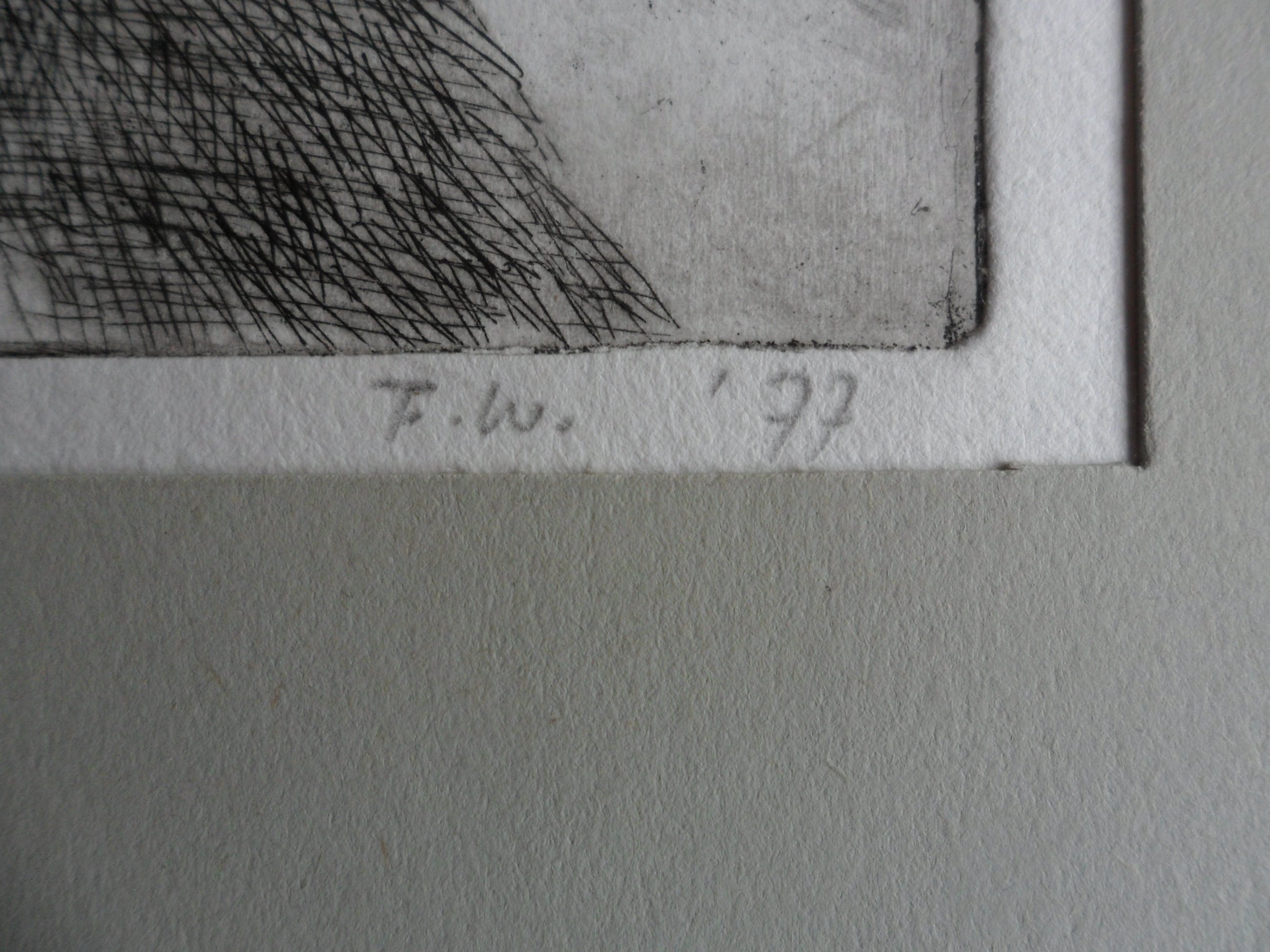 De ets is in potlood gemonogrammeerd 'FW': Frits Lindeman (1945)