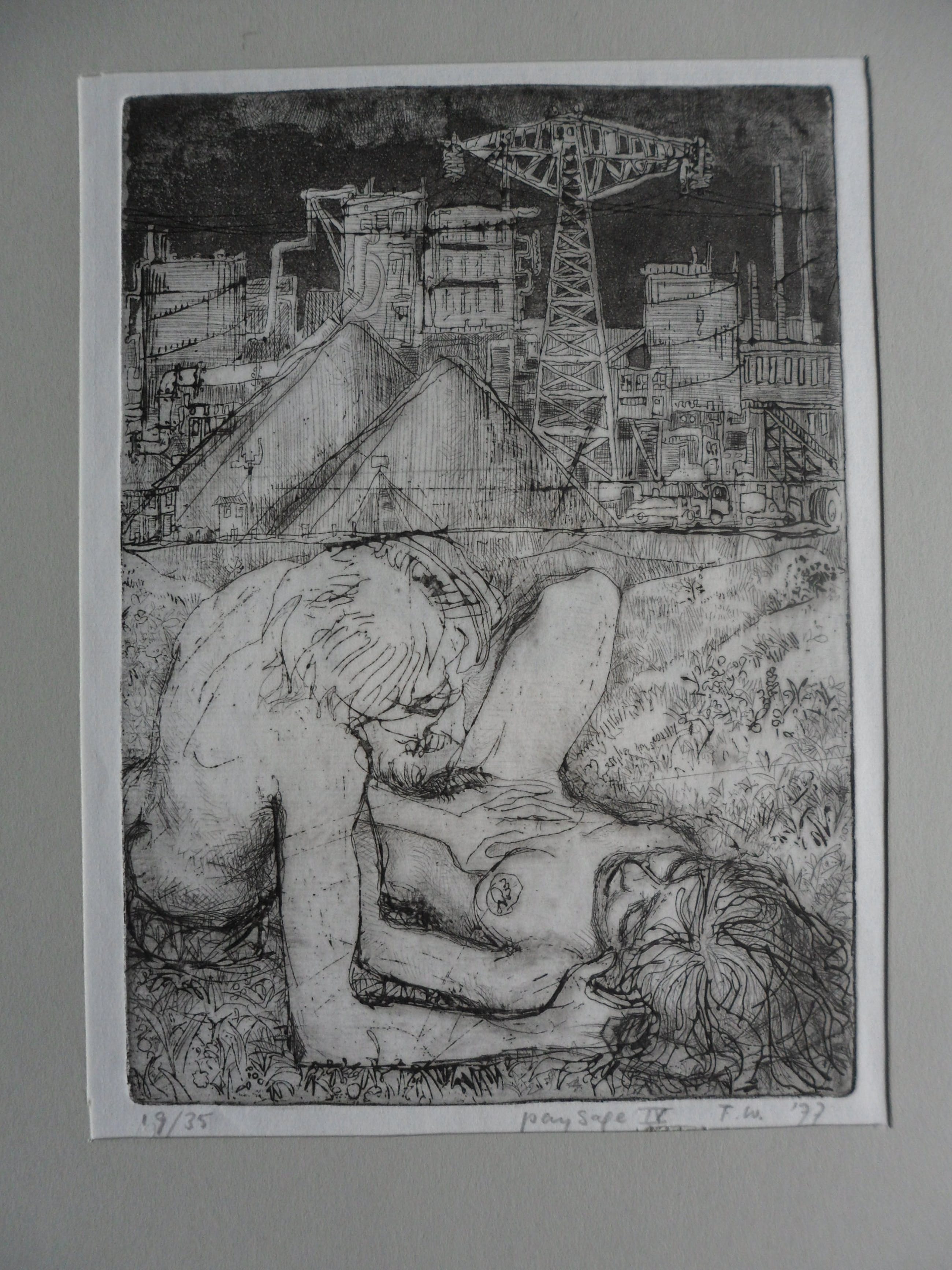 De ets is in potlood gemonogrammeerd 'FW': Frits Lindeman (1945)