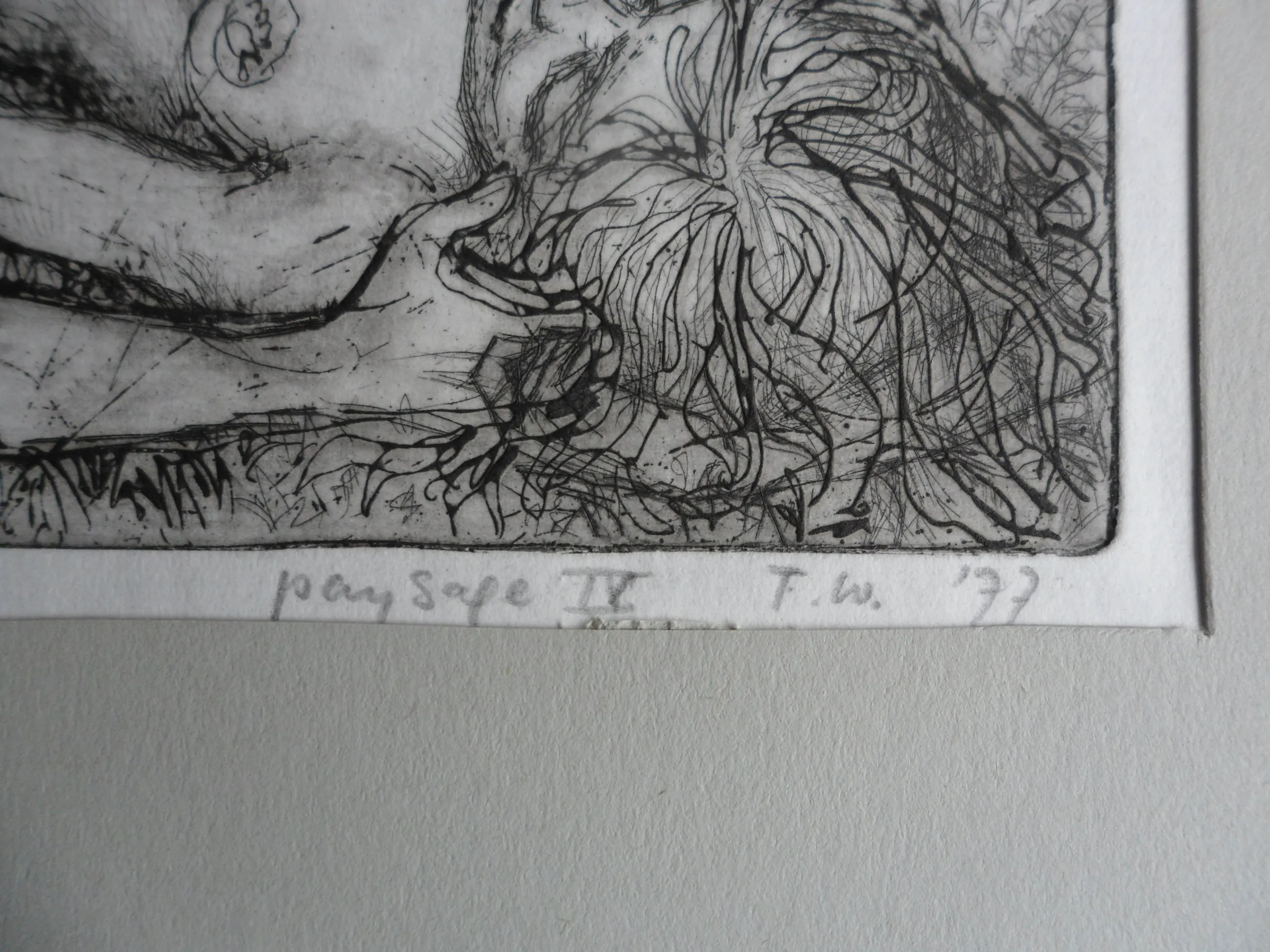 De ets is in potlood gemonogrammeerd 'FW': Frits Lindeman (1945)