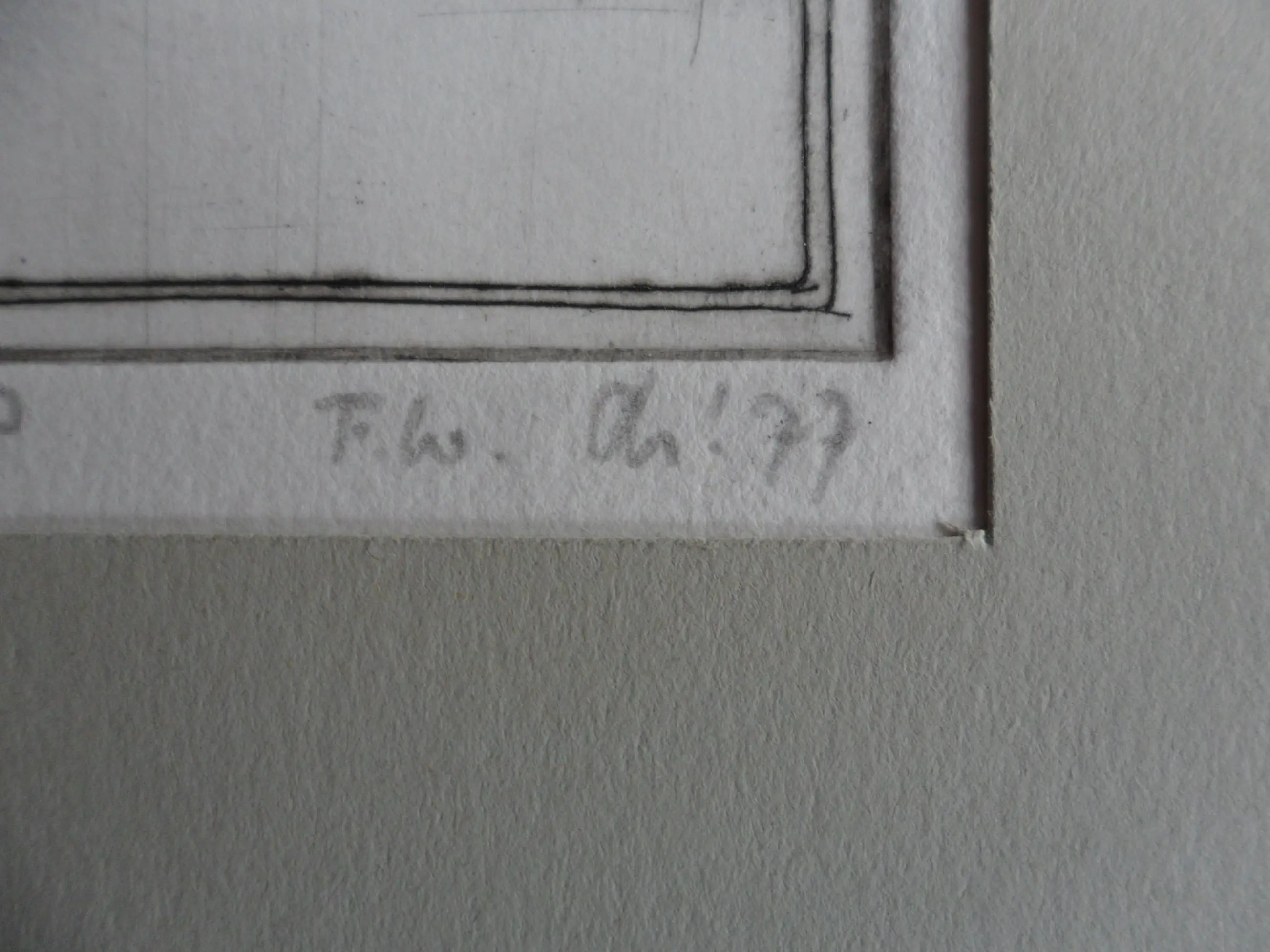 De ets is in potlood gemonogrammeerd 'FW': Frits Lindeman (1945)