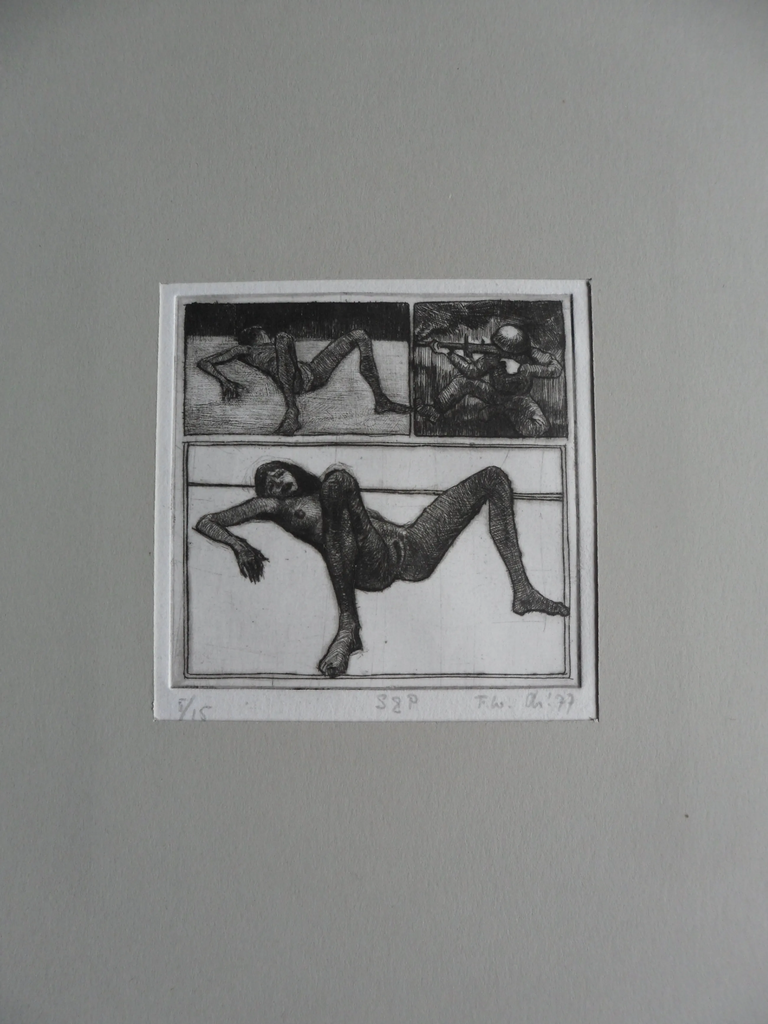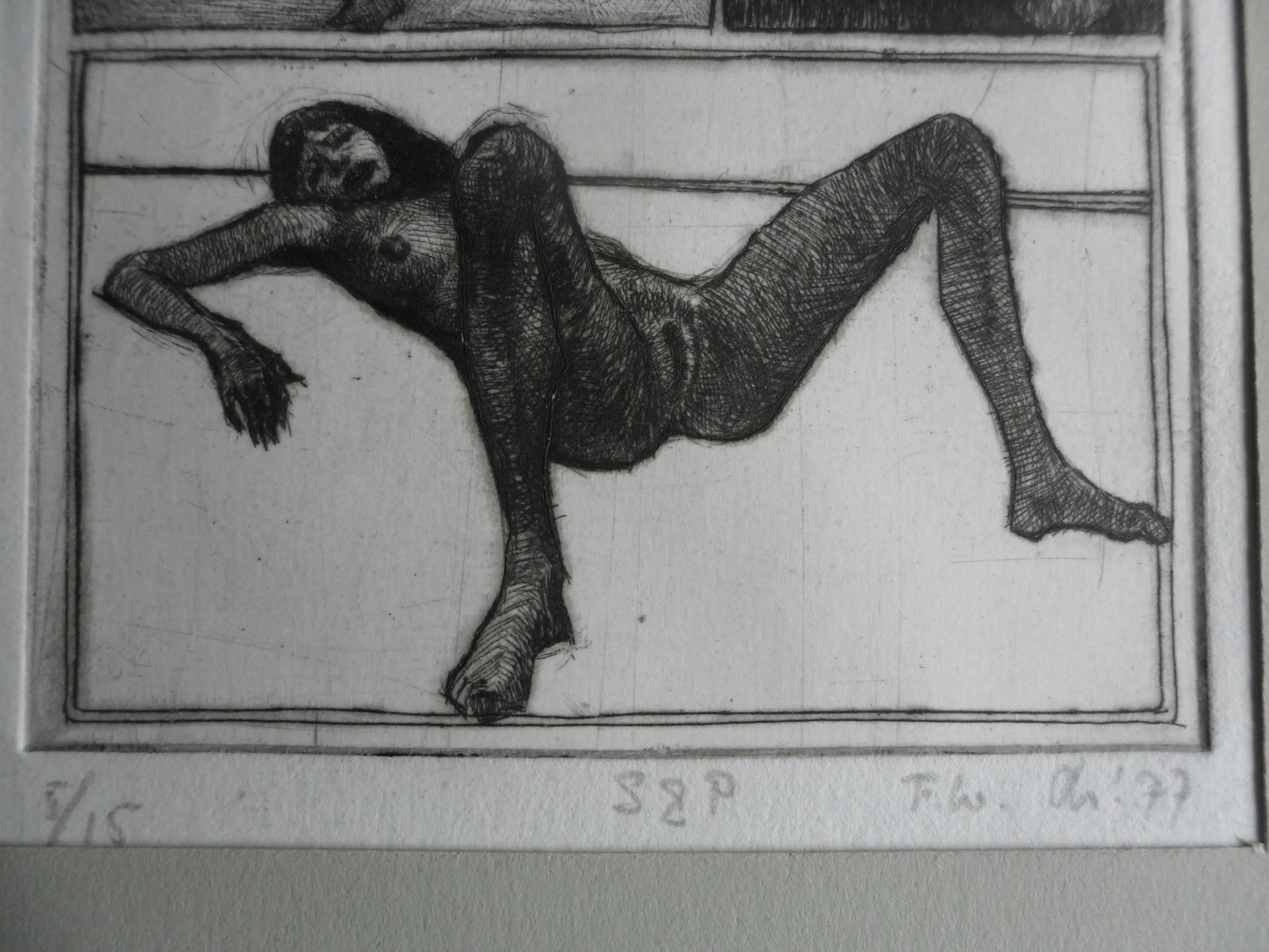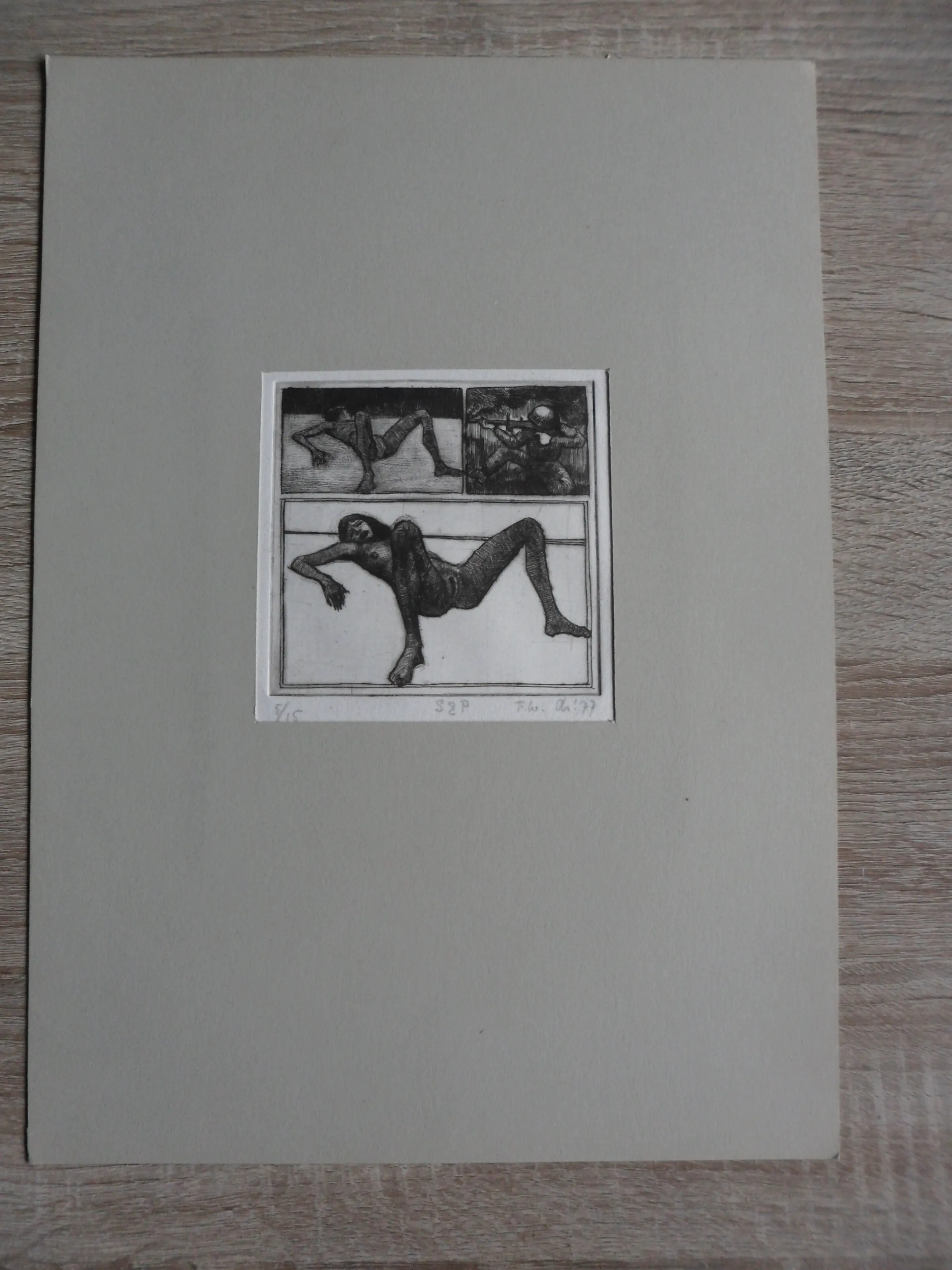 De ets is in potlood gemonogrammeerd 'FW': Frits Lindeman (1945)