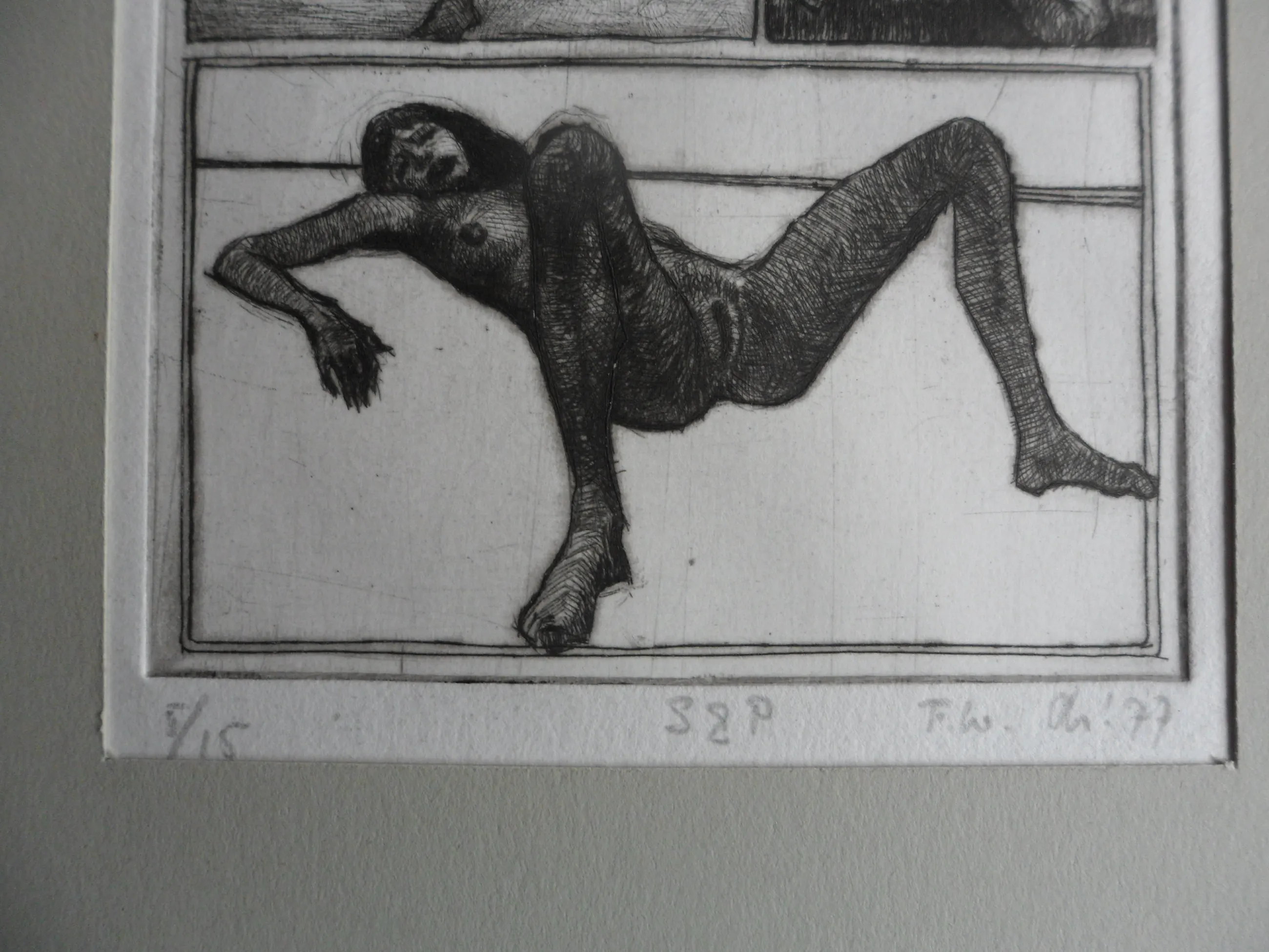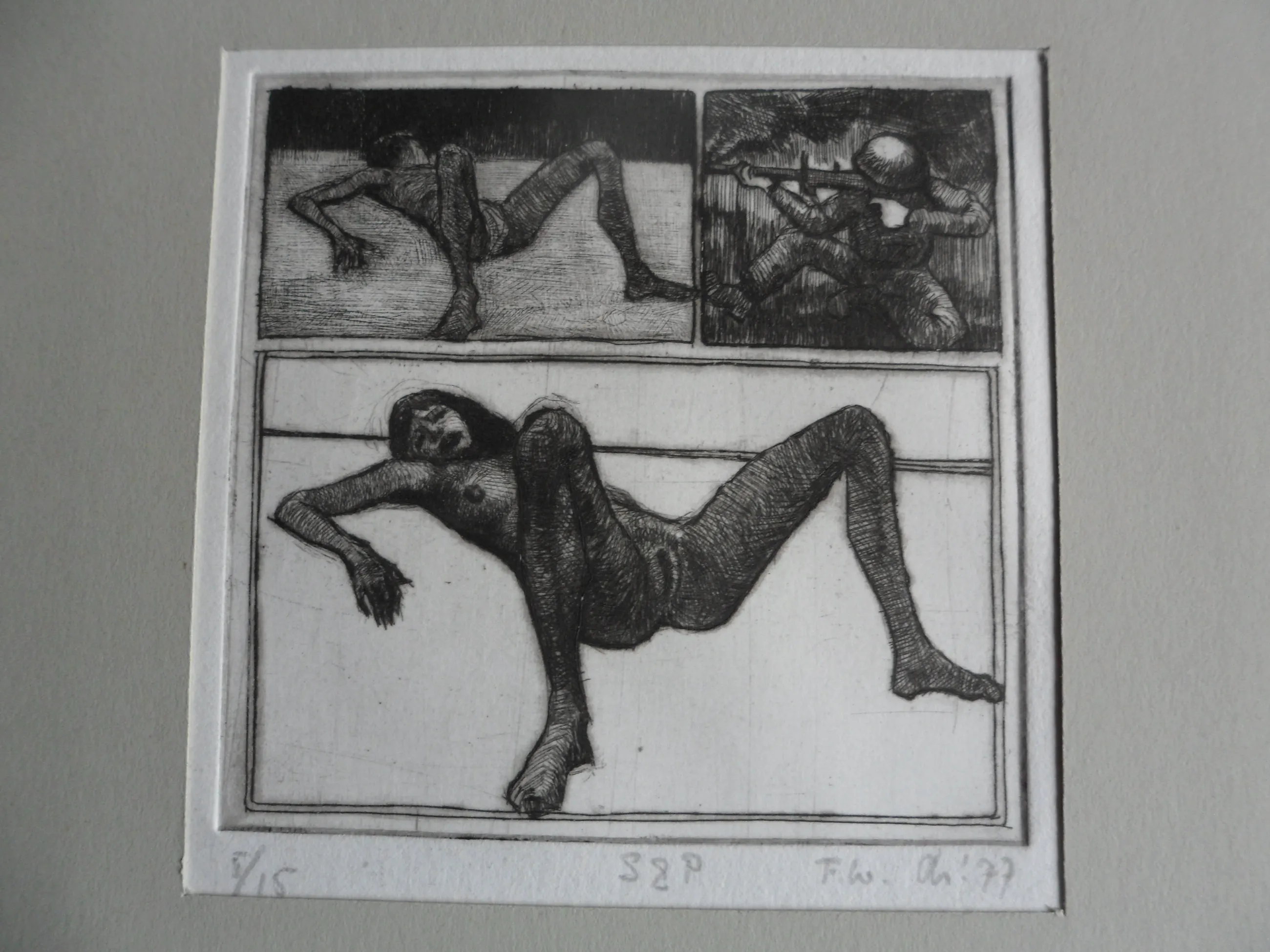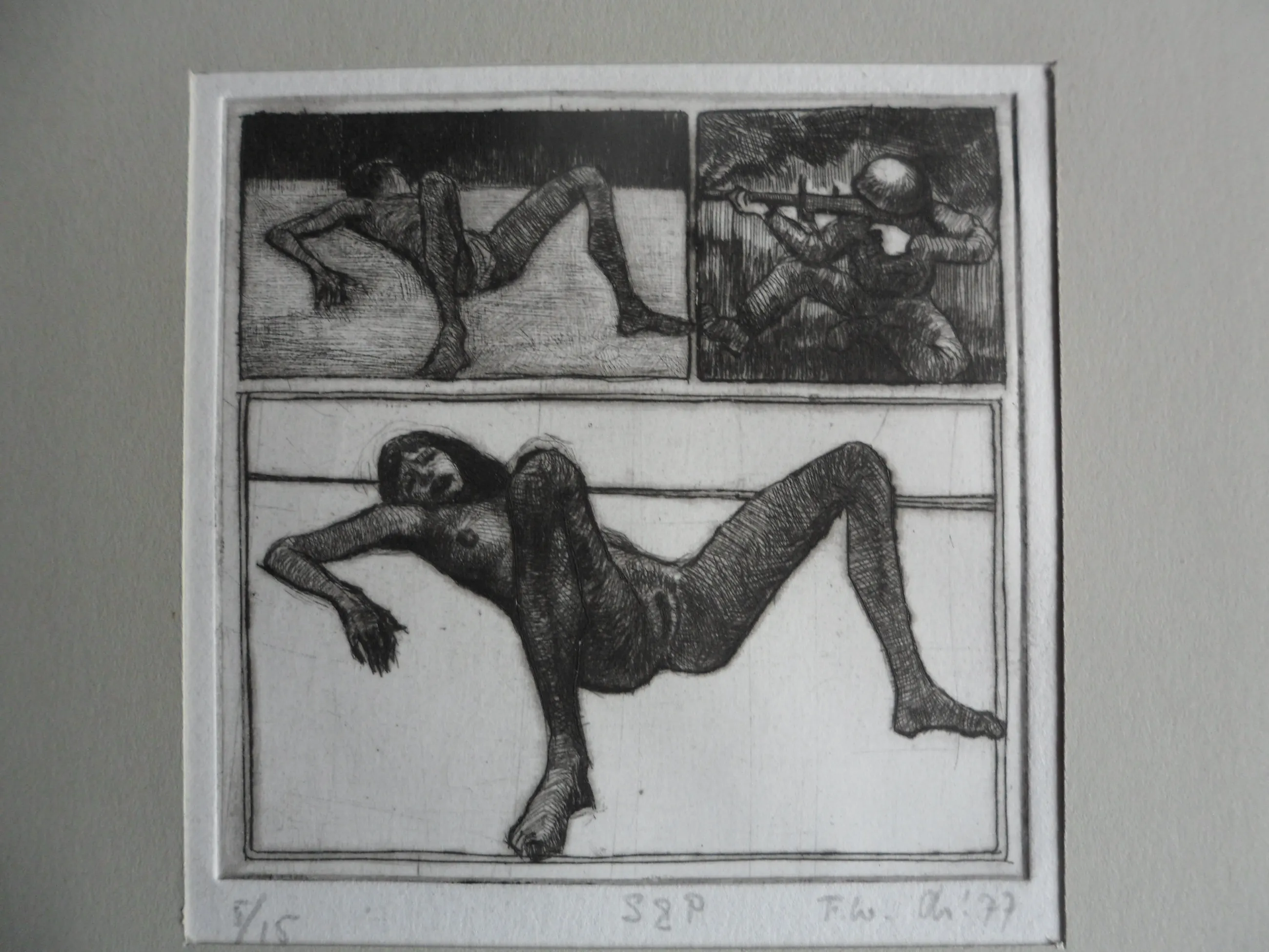 De ets is in potlood gemonogrammeerd 'FW': Frits Lindeman (1945)
